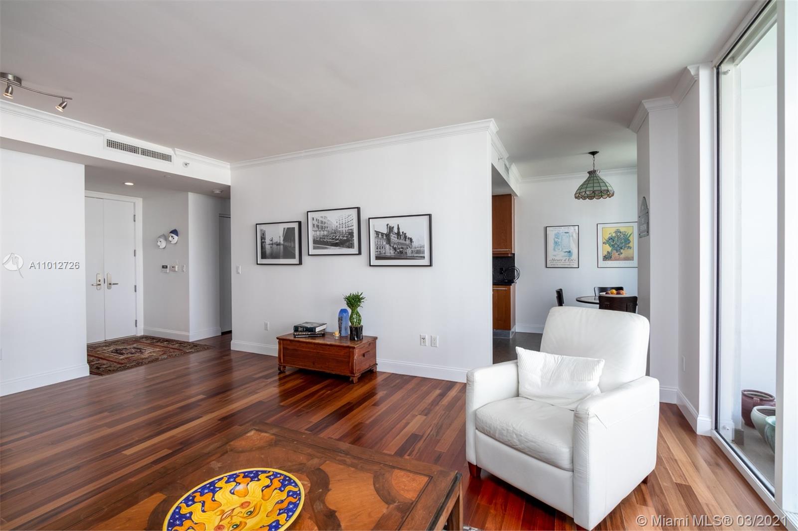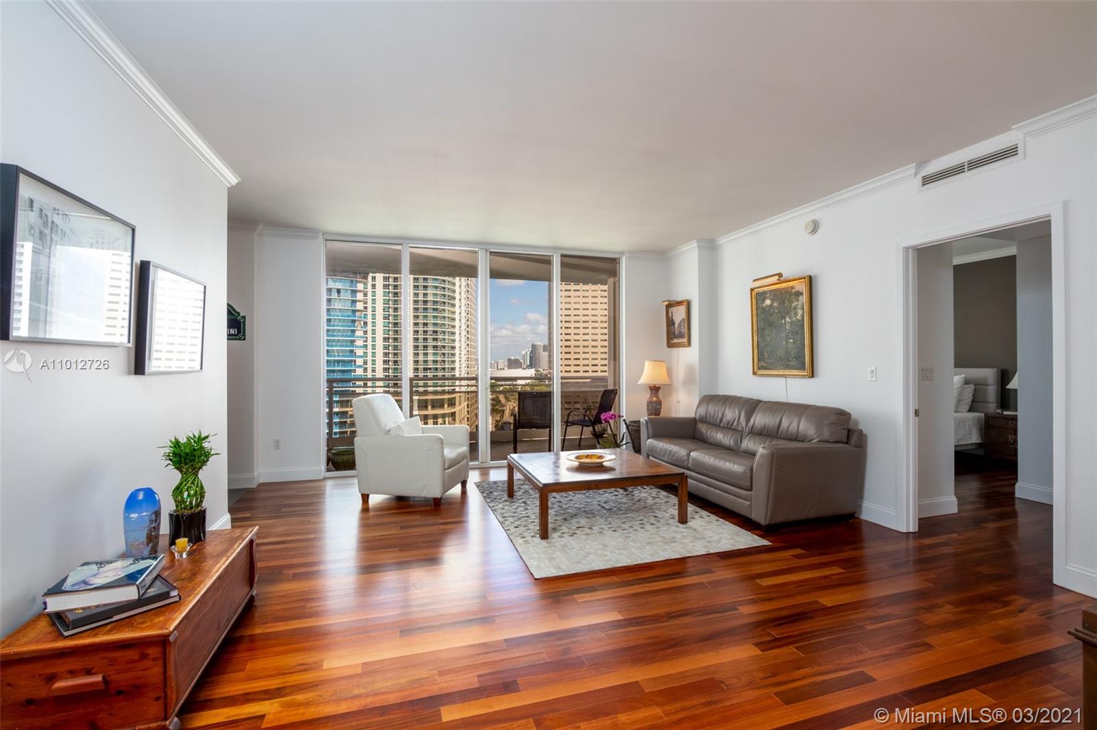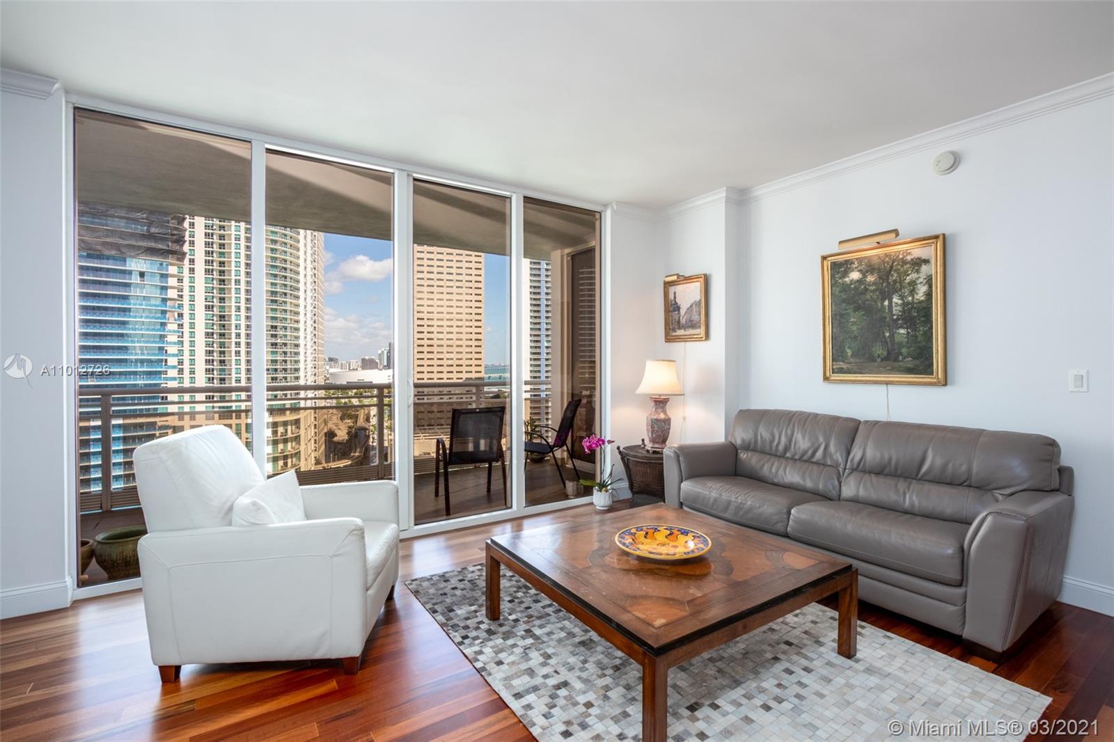 One of the most beautiful views from this unit at Carbonell Condominium in the very desired line 05. Marvelous views of Biscayne Bay, Port of Miami and the Miami Skyline. Spectacular hard wood floors throughout, and marble floors in the bathroom. Italian Kitchen Cabinetry with the most exquisite finishes. Tennis courts, racquetball courts, gym, 24 hour security and concierge service. Enjoy the style & privacy of the secluded & beautiful Brickell Key. 24 hour notice for showings.