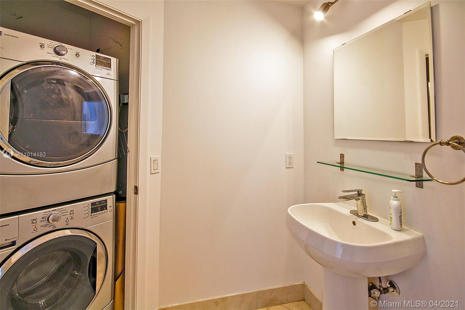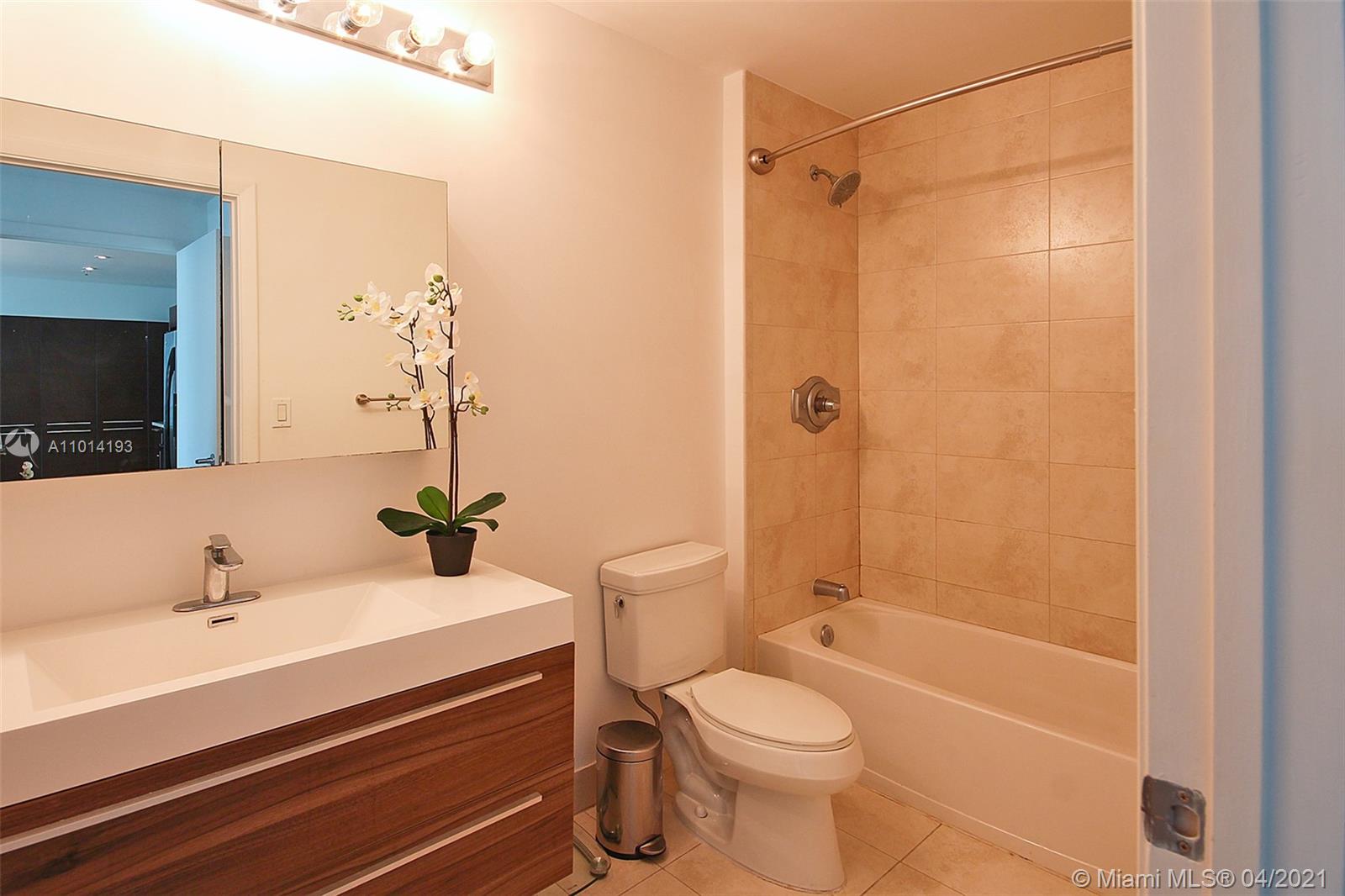 Best one bed at Quantum, ready for move-in! Upgraded 1 bed and 1 + half bath at Quantum on the Bay. Tile floors throughout living area and wood flooring in bedroom. Drop-down recessed lighting illuminates the living area, with views over Miami’s Arts & Entertainment District. Bedroom has recessed lighting with blackout shades. Master bath upgraded with new vanity for a more modern feel. New, full-sized washer and dryer in half bath. Balcony access from each room with floor-to-ceiling windows. One assigned parking space. Storage available for rent in building. Quantum features two pools, two-story fitness center, party room, convenience store, and on-site salon. Directly across from Margaret Pace Park. Walk to Publix, The Daily, Lulu’s Nitrogen Ice Cream, and more.