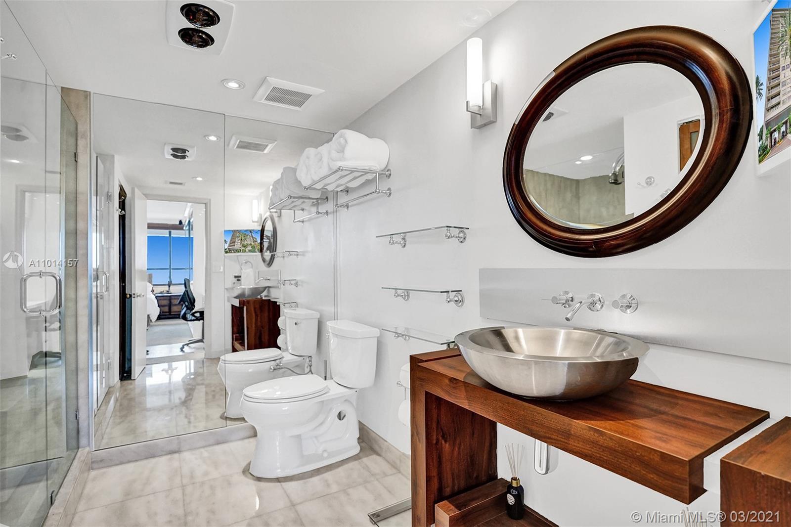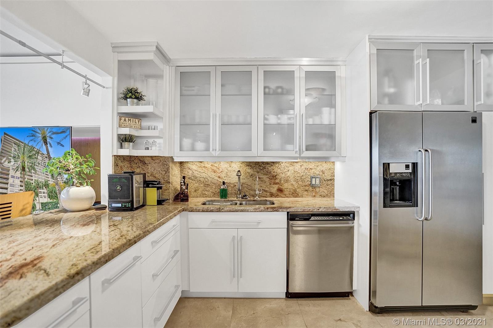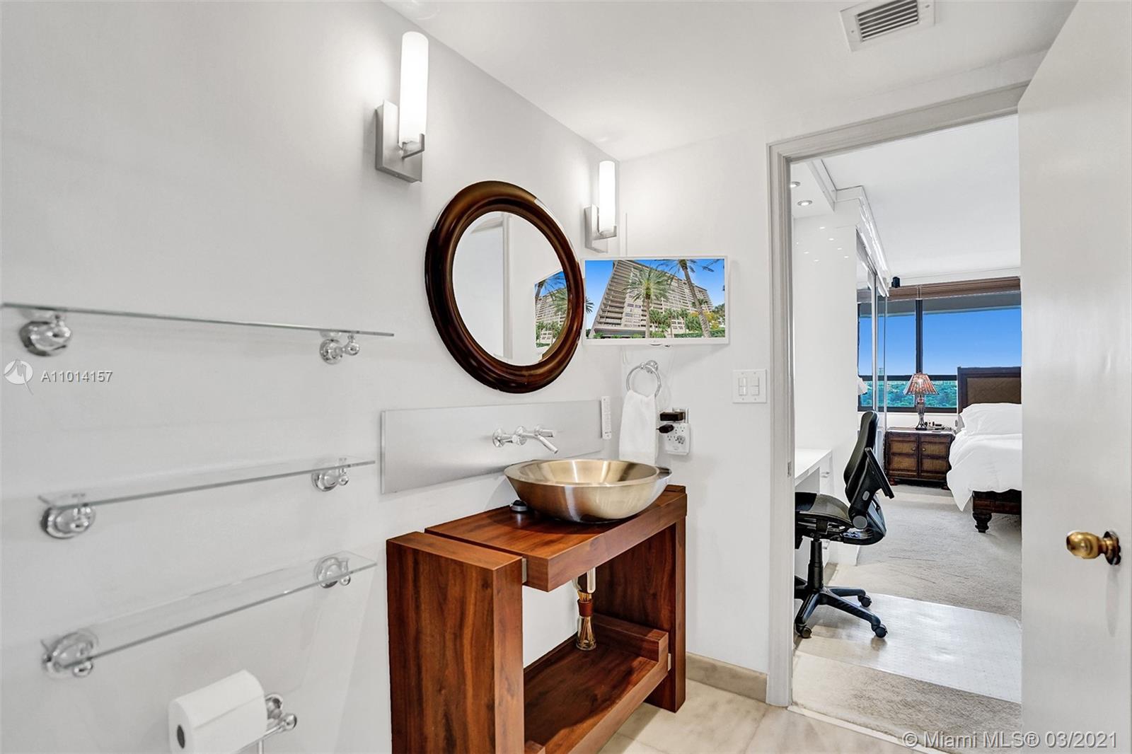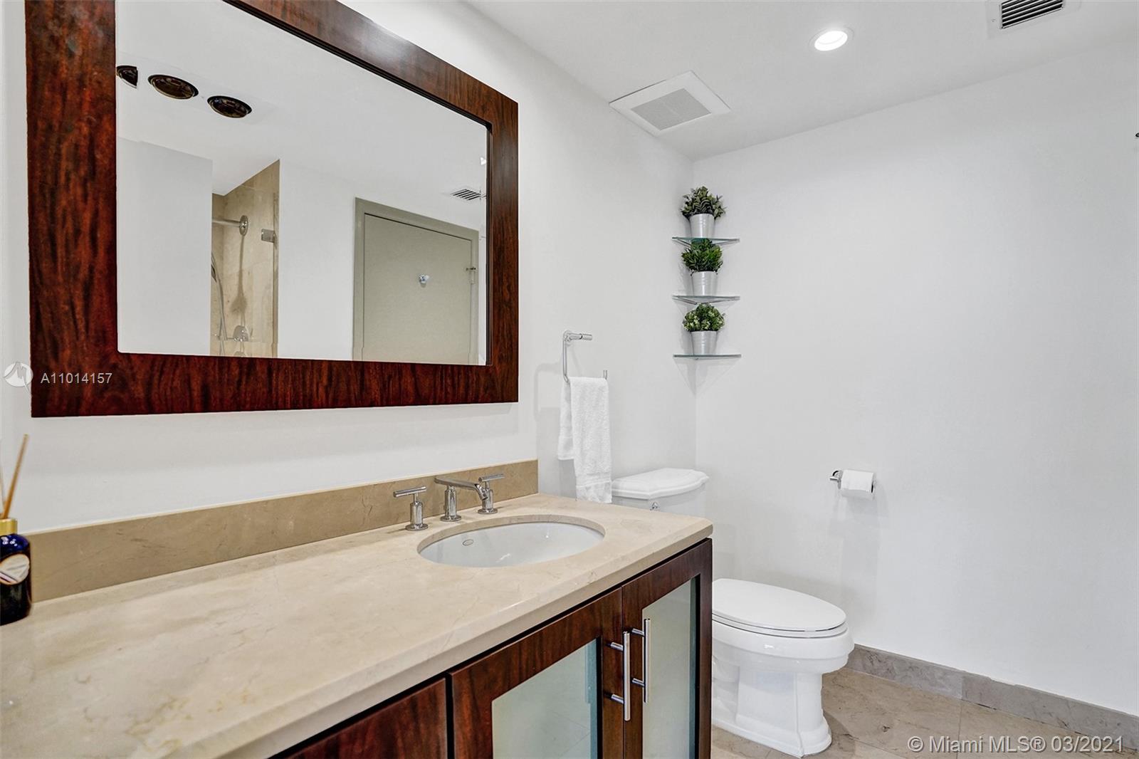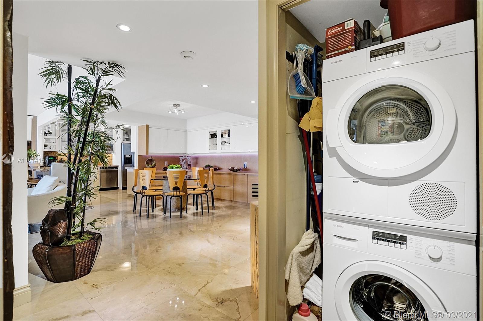 This spacious 2 bedroom, 2 bathroom offers incredible high floor views of the Bay, Grove Isle Marina, Dinner Key Marina, and all of Downtown Coconut Grove. Features include recently polished marble floors in the main living areas, a built-in bar with storage and glassware racks, recessed lighting, dining room with built-in credenza with top and bottom storage, open kitchen with granite countertops, white sleek cabinets and stainless-steel appliances. The living room has built-ins with plenty of storage space. The primary bedroom has a walk-in closet, built-in cabinets and workspace, and a beautifully updated bathroom. Watch the sailboats as you cook or enjoy sunsets from the beautifully decorated terrace. No matter what room you are in, the views will amaze you. Live at Grove Isle!