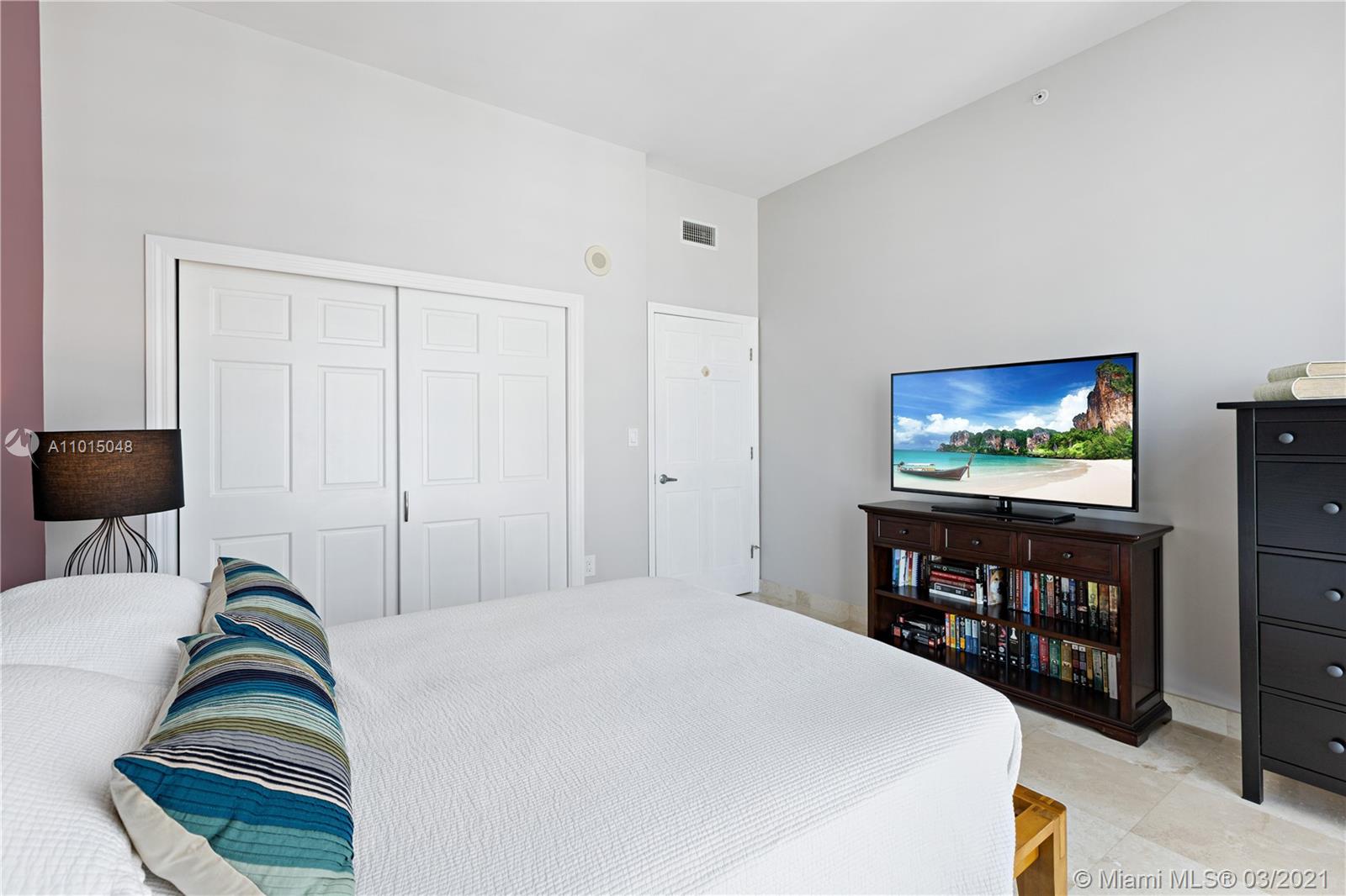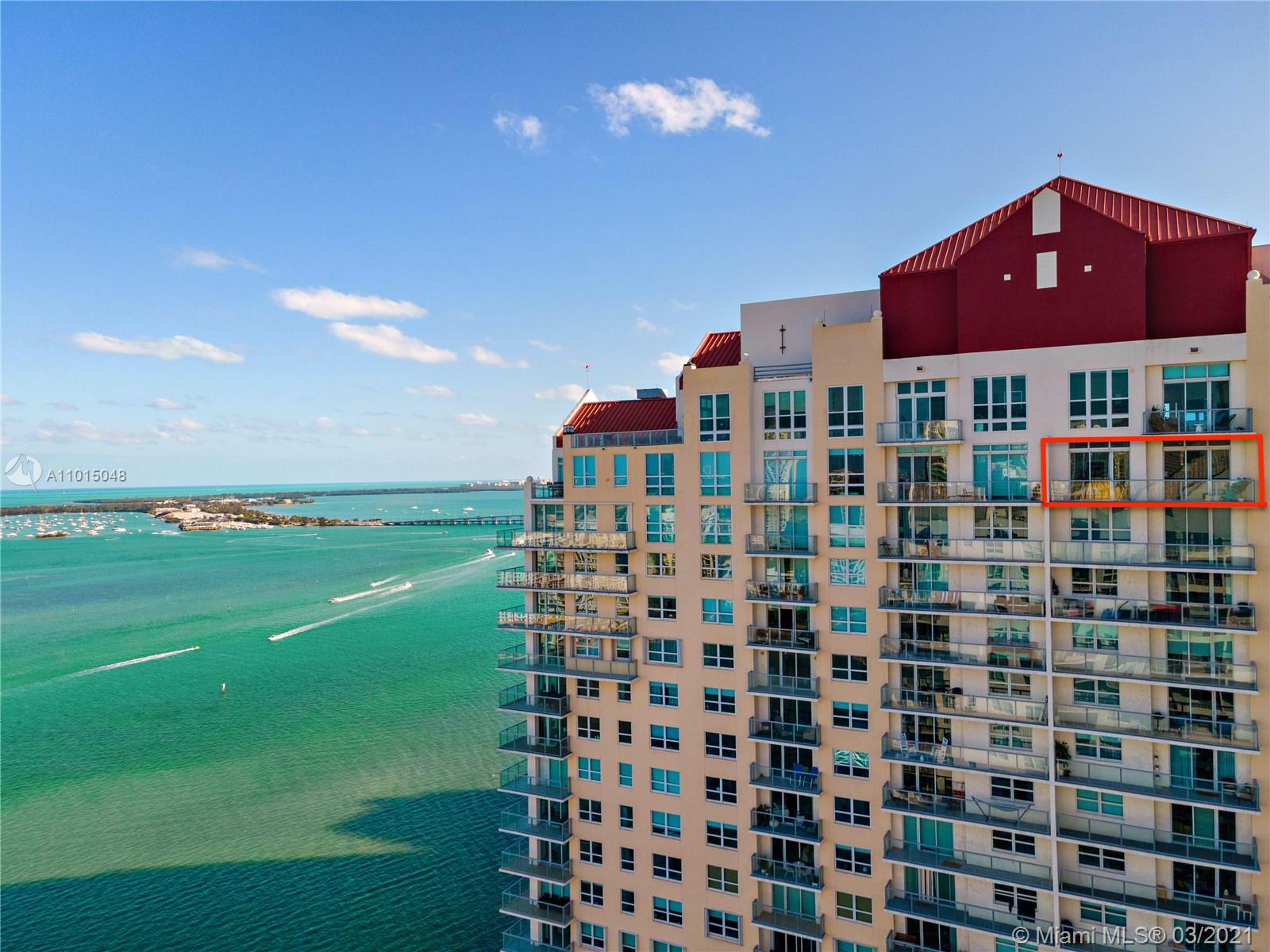 Gorgeous 1BR 1BTH penthouse level unit with 10ft high ceilings. Amazing water views of the ocean and Biscayne Bay. 730 living area sq ft. Full kitchen remodel (2017) including new cabinets, quartz countertops/backsplash, stainless steel Kenmore appliances (fridge, stove/oven, dishwasher, microwave) as well as GE stacked washer/dryer. 18” marble tiles throughout. Custom cabinetry in bedroom/front hall closet. Includes TWO (2) parking spaces (1 assigned, 2nd is valet at no charge). Excellent amenities including fitness center with water views, pool/Jacuzzi hot tub, tennis/racquetball courts, club room, on-site convenience store and restaurant. Additionally, valet/concierge services are offered. Recent building improvements include glass railings on the balconies, lobby and hallway updates.