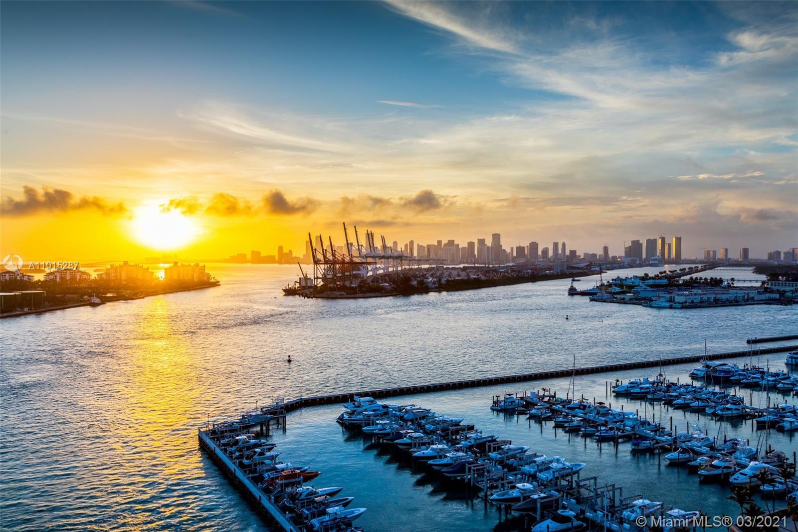 Hyper Exclusive Apogee! 2,744 sq ft of serene unobstructed views of the Atlantic Ocean, Port of Miami, Fisher Island, Miami Skyline & Art Deco SoBe. Private 1,200 sq feet of 11 ft wide balconies encompassing both Southeast and Northeast views featuring summer kitchen. Flow through design giving you both water & city views. All stainless steel chefs kitchen with full-height glass-fronted wine fridge. . 10-feet high Ceilings. Private elevator. A/C 2 car garage & storage unit. Luxurious amenities; an attended resort-style pool, poolside cabanas, full-service concierge service, 24-hour valet parking, spa, and state-of-the-art fitness center. The most exclusive luxury amenities' in all of South of fifth living.