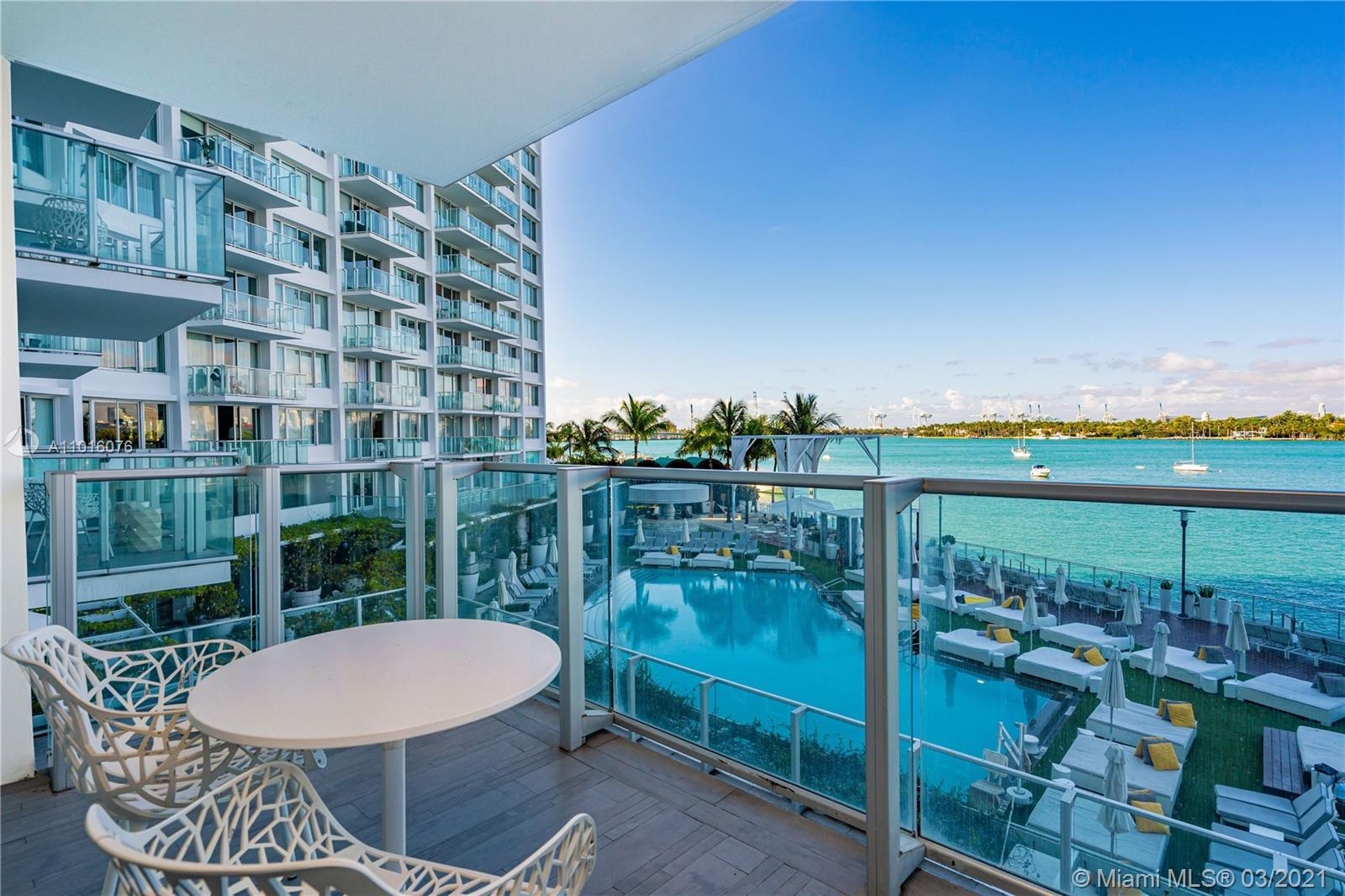Beautiful Miami Skyline, Bay and Sunset views from this low floor location at the re-known Mondrian Hotel. Fully furnished and equipped, currently in the hotel pool but buyer can opt out of agreement after purchase. Enjoy the pleasure of staying in Miami Beach, its pool parties & more. One of the hottest spots in South Beach, also offers rental income (daily, weekly, monthly, yearly)to cover your operating expenses. If left into Hotel Rental management, owner can use the condo at least 69 days per year. Best views side of the building on a low floor with open water views, pool area and more. Monthly maintenance fee amount, application fees and dock availability must be checked/verified by buyer/agents with condo association.