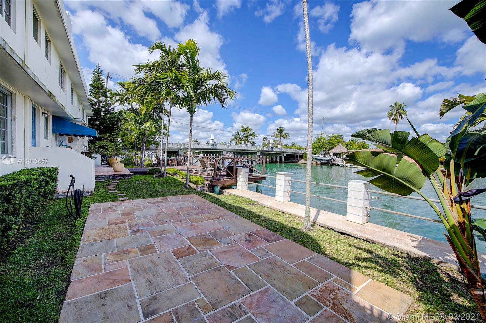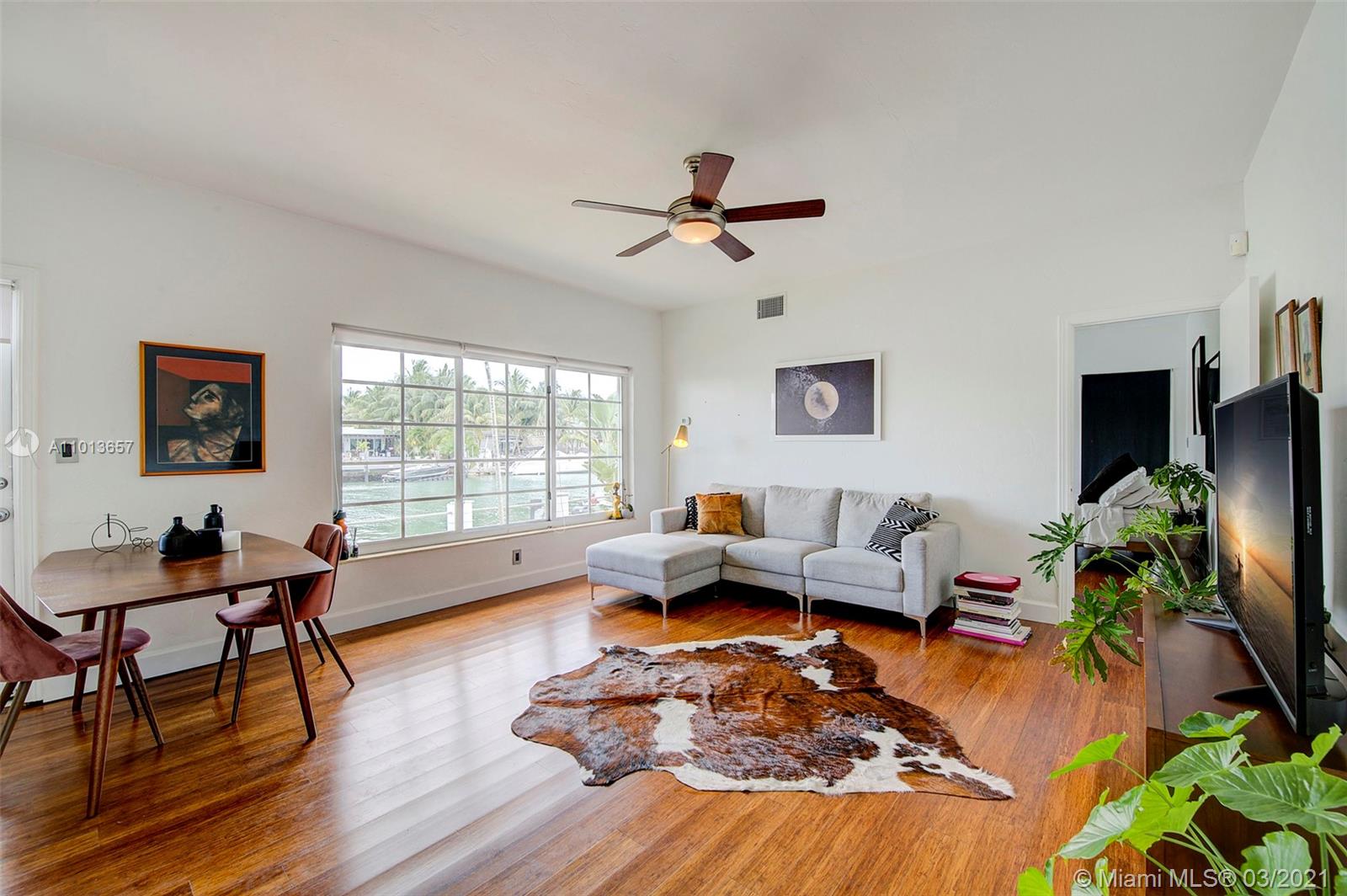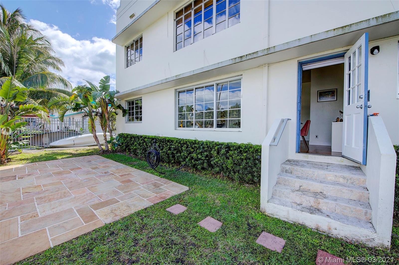 The BEST unit in a charming Art Deco building in Miami Beach's exclusive Normandy Isle. This waterfront garden apartment is a hidden gem. The boho lady has been tastefully renovated with a new kitchen and bathroom with stone mosaic walls and hurricane impact windows. Enjoy expansive water views in this peaceful and sunny home. Off the deck in front of your door, you can launch your kayak and the Bay is right around the corner. Normandy Golf is within a short walk where you can enjoy the clubhouse, outdoor gym and waterfront tennis courts. The home has attractive wood floors, wooden kitchen cabinets and modern gray quartz countertop. There are plenty of storage closets. The living room, dining area, kitchen and bedroom, all offer direct water views. I warn you, this is love at first sight!