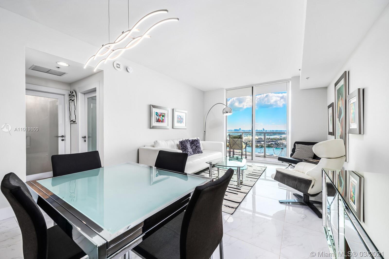 Fantastic 2 bedroom 2 bathroom corner unit with expansive water views! Impeccably enhanced and remodeled by the sellers. This is not only the nicest 2 bed facing the water BUT the best priced. Full Service building , 24 Hour Concierge , Business Office , Multiple Pools with a professional recently renovated Gym. Fantastic value in the middle of Downtown Miami's most progressive area. Steps to everything. Furniture not included , but negotiable. Easy to show!
