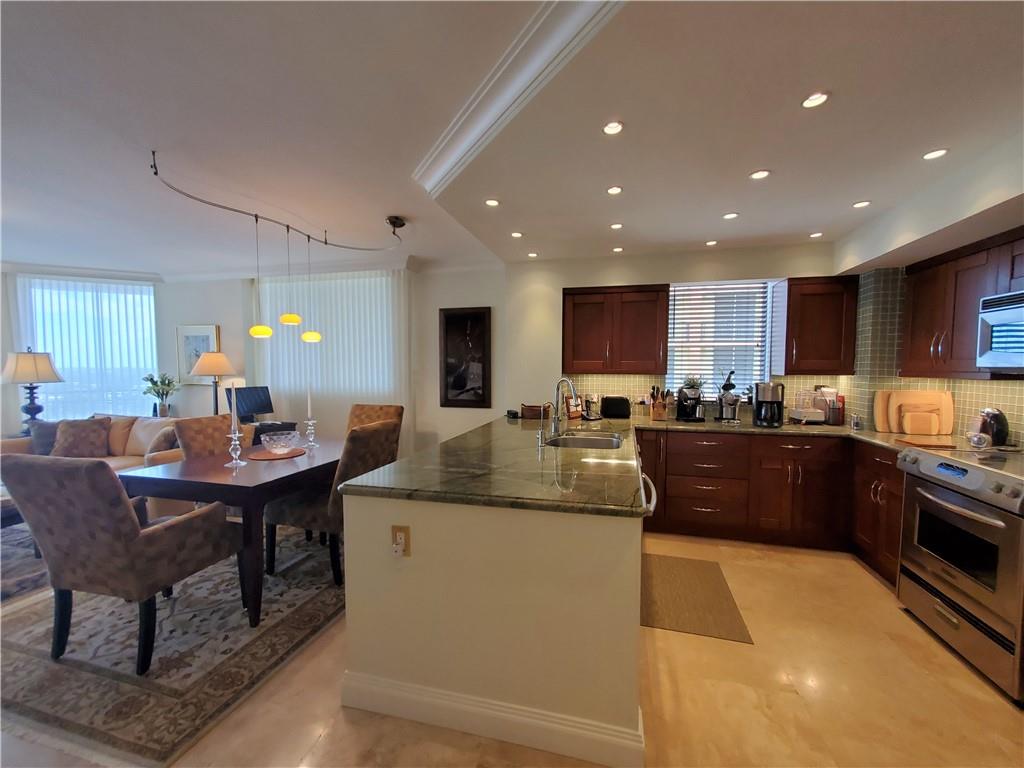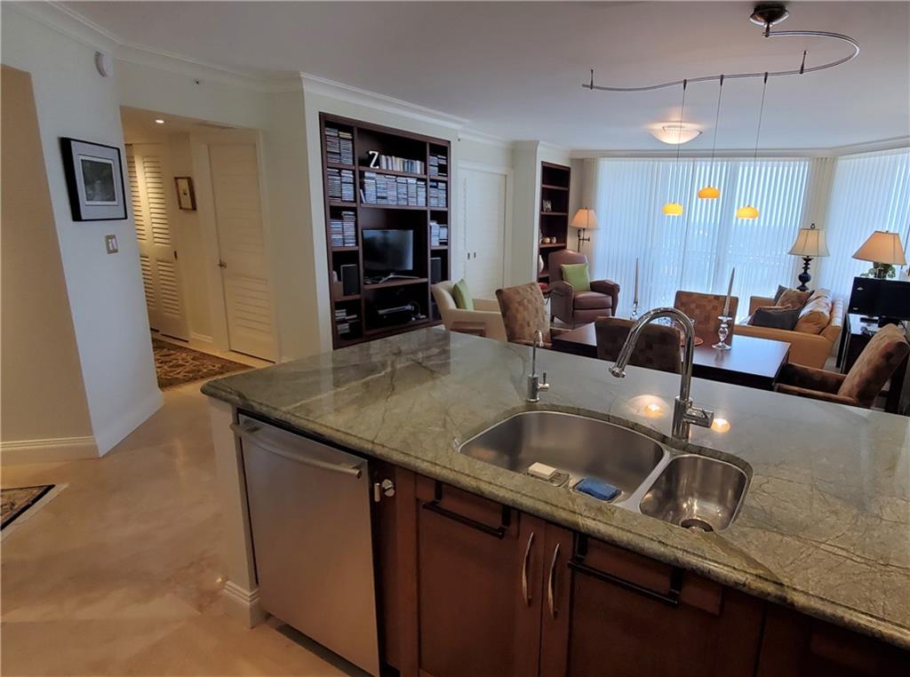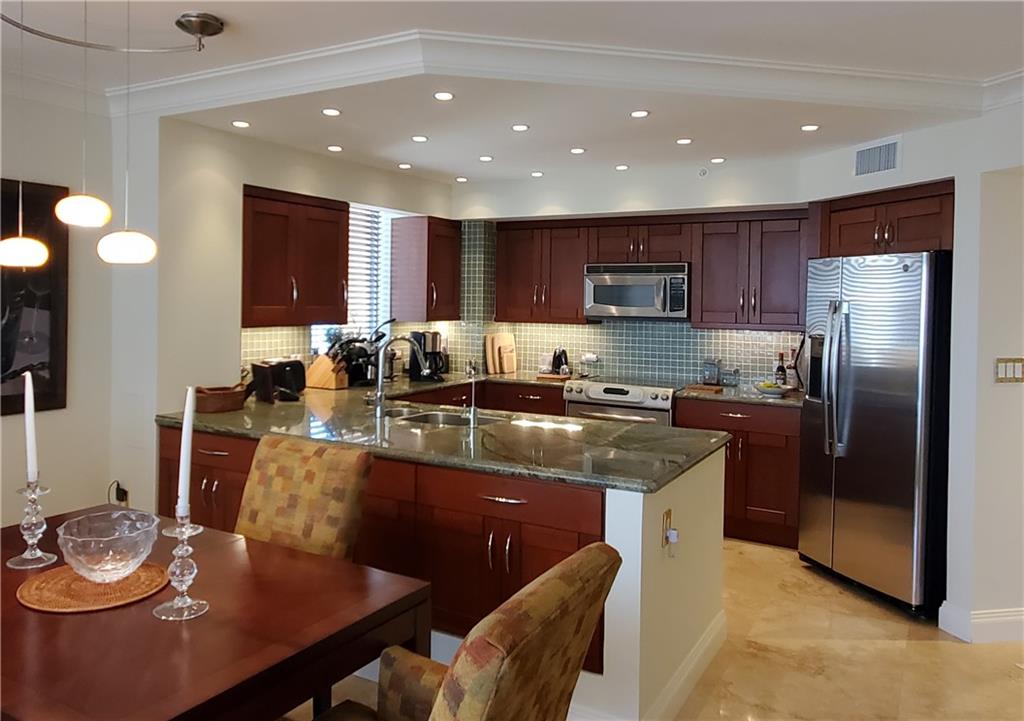 Vue Resident & Beach Club 2/2 Professional finishes. No detail was over looked. Corner wraparound balcony with Intercoastal and Ocean views. Marble floors throughout and Crown molding, open kitchen with Brazilian Rain Forest granite countertops, stainless steel appliances, washer/dryer. 2 pools - one WITH DIRECT ACCESS TO BEACH from the Vue's private beach club! Cable & Internet included, 2 parking spaces and 2 pet (up to 50lbs) Full service BLDG. 24hr Valet, front desk attendant.