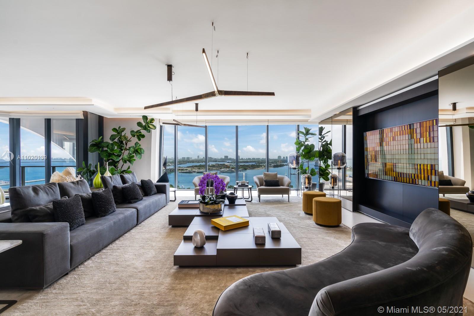One Thousand Museum by Zaha Hadid, Miami’s most prestigious address, presents this elegant true turn-key ½ floor N.E. corner flow-thru residence with 4 bedrooms, 5.5 baths, maid quarters and spacious balconies. Meticulously designed and executed to impress the most discerning client. Modern stylish furnishings, marble floors, Poliform, Gaggenau, SubZero, Dornbracht, lighting by Petzold and Creston. Unprecedent level of service and amenities such as helipad, beach club, Technogym, spa, movie theatre, Chef’s kitchen and dining room, Sky Lounge, private car service, concierge and deposit safe room.