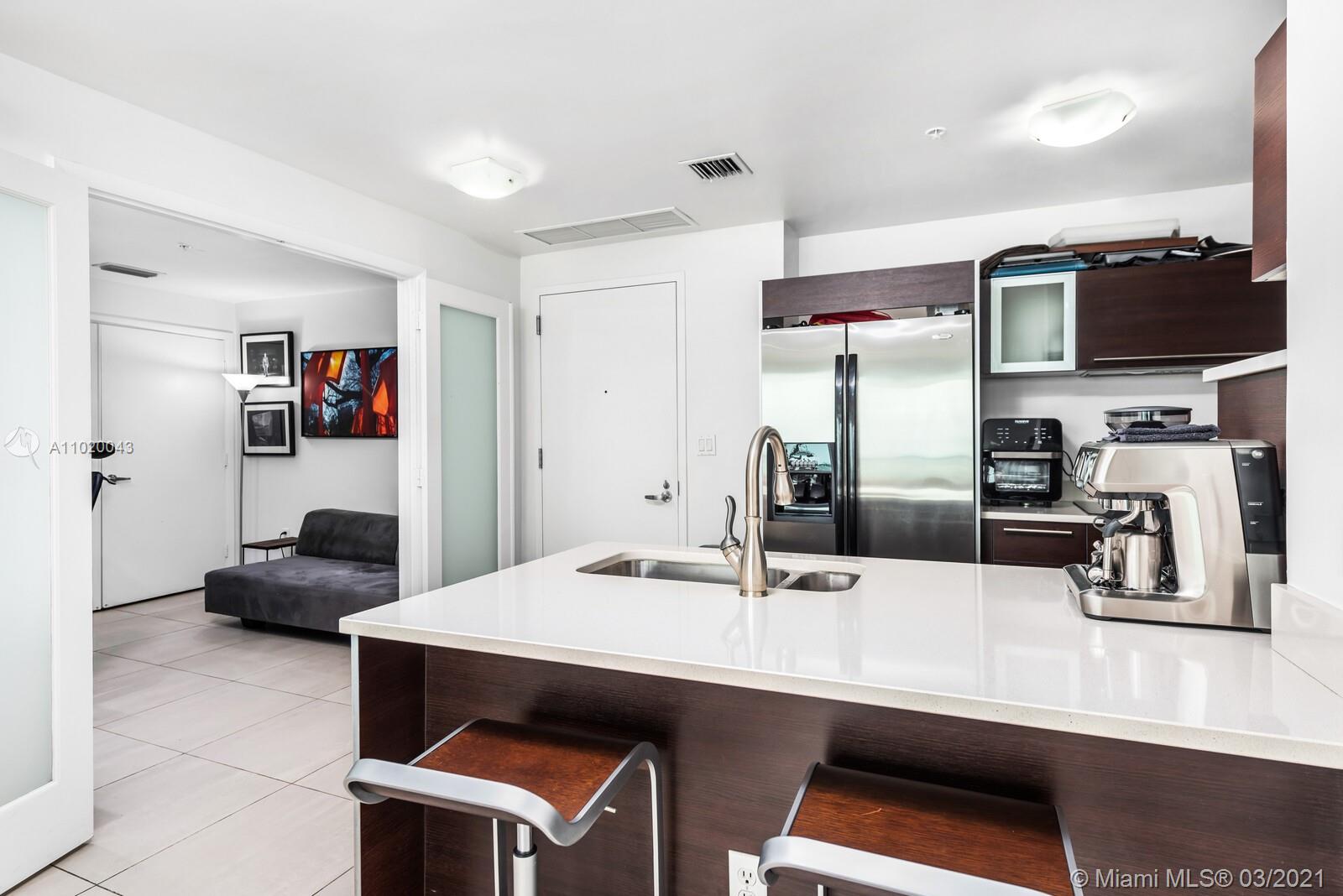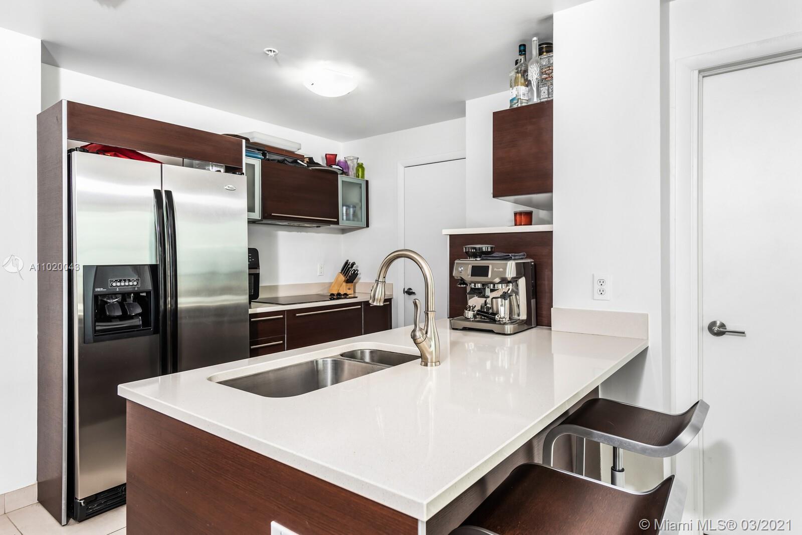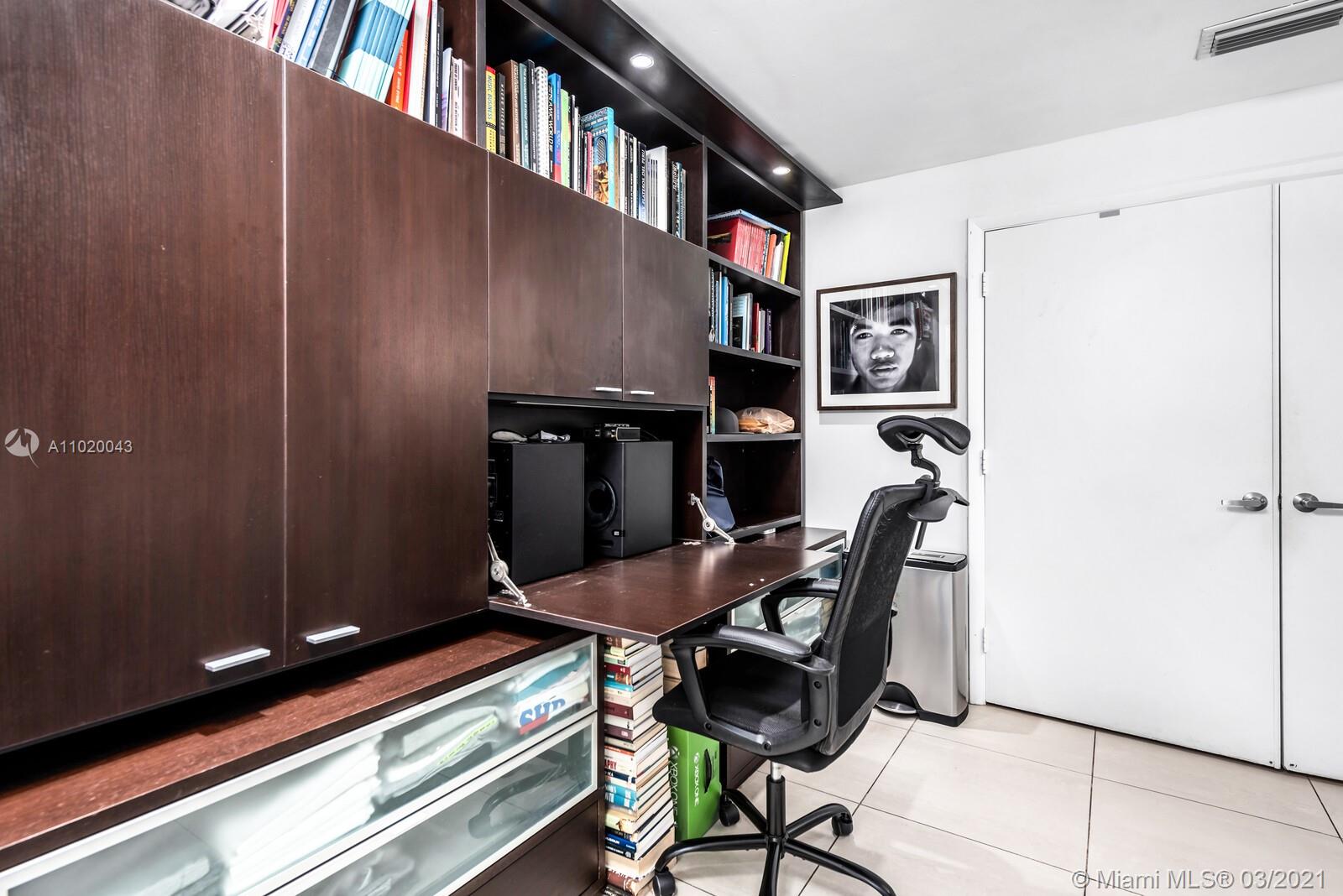 Rarely available 1 Bed + Den / 1.5 Bath at Quantum on the Bay in Edgewater. 2 parking spots side by side and 1 large storage unit included! Unit features a fully enclosed den w/ closet and custom doors and built-ins, tile flooring throughout, impact windows, fully-equipped kitchen with stainless-steel appliances, built out closets & newer washer/dryer. Building amenities include: 2 heated pools, 2 story gym, theater room, business center, party room, sauna, jacuzzi, valet, 24-hour doorman and on-site convenience store. Located directly across from Biscayne Bay and Margaret Pace Park which offers a variety of outdoor amenities including a dog park, basketball, tennis & playground. Blocks from Downtown, Wynwood and Design District, minutes to Brickell and South Beach, easy access to I-95.