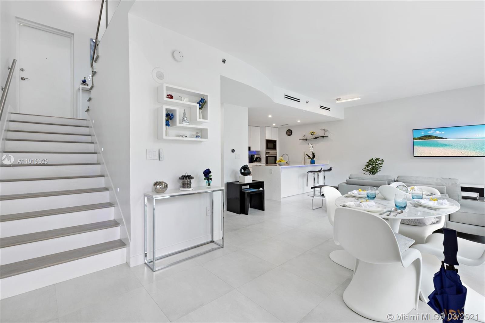 Exquisite attention to details in this fully renovated 2-story high ceiling Townhouse 1 bed plus Den, 1.5 baths located in one of Sobe’s most prestigious buildings. Contemporary open kitchen with cascade quartz countertop and equipped with Miele appliances. Wine Cooler and Extra storage space added.European tile throughout unit and Stain Oak wood stairs. Tempered laminated glass and Stainless steel railing. Motorized shades and blackouts. Huge bedroom suite and separate den / office space. Custom closets and doors. New Condenser and AC unit w/ UV light. New washer and Dryer. Lighting fixtures: Artemide, H. Miller. etc. Bath with free standing tub, Grohe fittings and TV on wall. 300 SQ ft. aprox. private Patio.