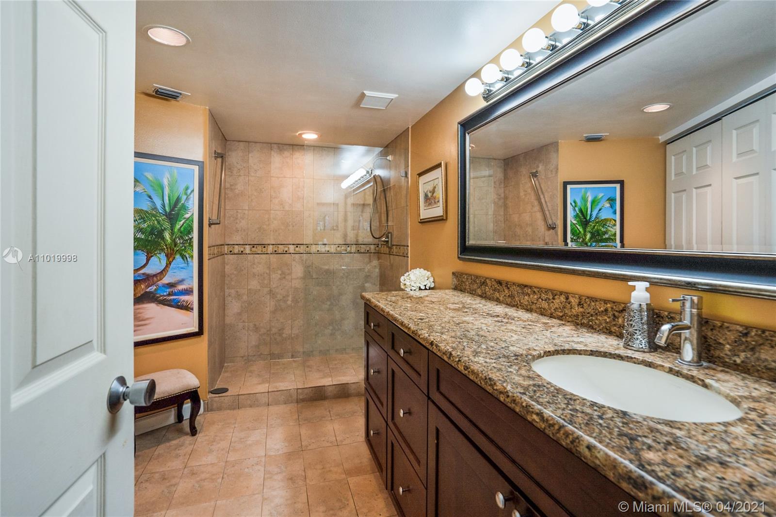 DECORATOR DESIGNED AND UPDATED ELEGANT CONDO. BEAUTIFUL DECOR INCLUDES OPEN KITCHEN WITH BREAKFAST BAR, MASTER BATH TOTALLY RENOVATED WITH JACUZZI TUB, SHOWER, NEW DUAL SINK VANITY AND BUILT-IN CLOSET SPACE. 2ND BATHROOM HAS BEEN UPDATED AND HAS FULL SIZE WASHER AND DRYER. OVERSIZED SECOND BEDROOM HAS 3 CLOSETS FOR MAXIMUM STORAGE, THERE IS A STORAGE ROOM ON THE FLOOR, PLUS AN EXTRA STORAGE ROOM ON THE 12TH FLOOR. HURRICANE SHUTTERS AND MORE. PRICED TO SELL!!!