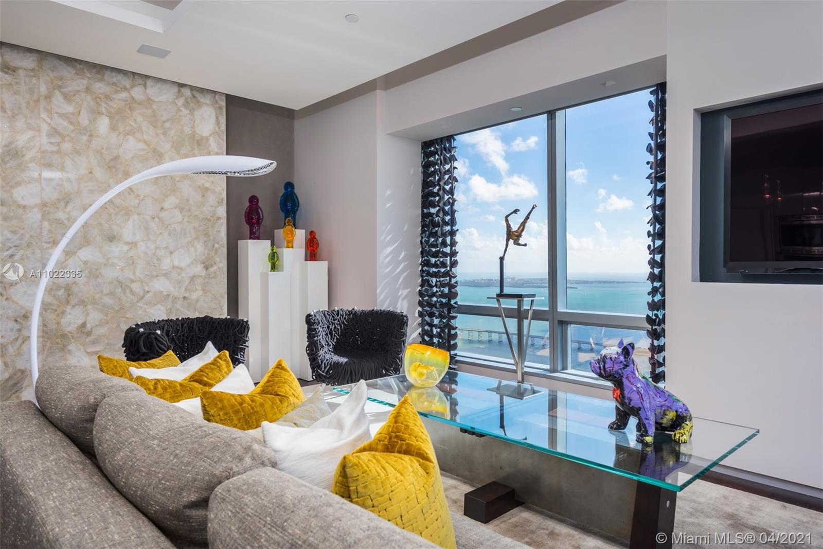 Enjoy living a life of ultimate luxury in this award winning one of a kind 65th floor Four Seasons Brickell residence. Completely transformed by renowned ODP Architects. Every detail of this complete renovation is crafted w/precision. This Oasis in the sky offers unobstructed Biscayne Bay views & sweeping tree top canopy/city views. This 2BR/2.5BA corner unit has spacious living areas w/views from all spaces. Open gourmet kitchen w/ top-of-the-line appliances. Master bath feels like a day at the spa, beautiful wood & marble floors, custom powder room sink, master bedroom mirrors, expansive master suite & 2 balconies. 5 star amenities: concierge, 24-hr valet, restaurants, 3 pools w/ cabanas, spa & Equinox gym.