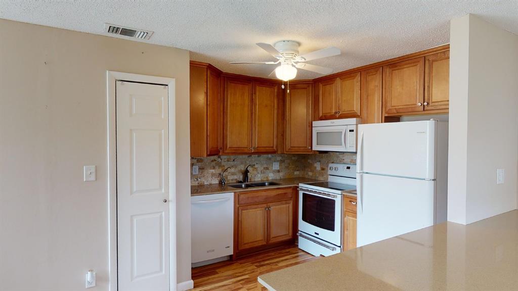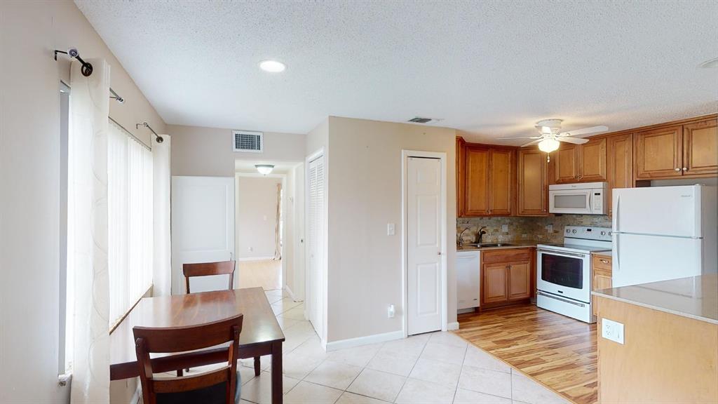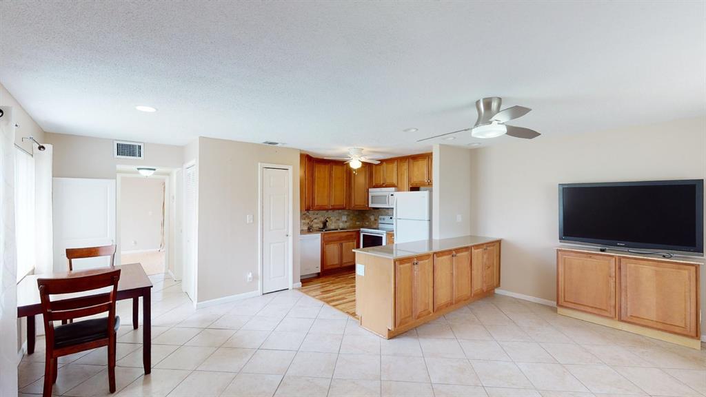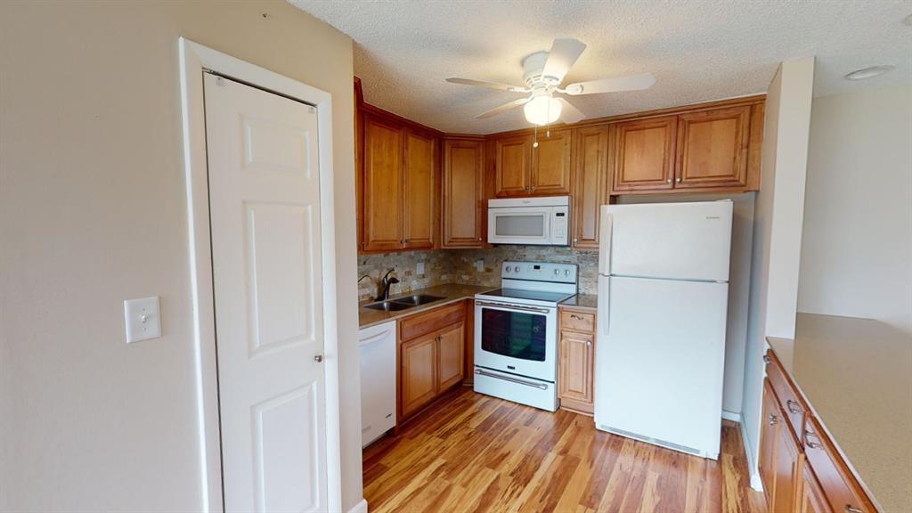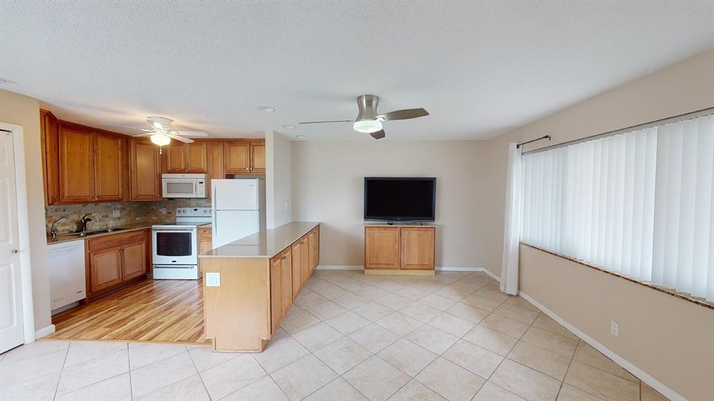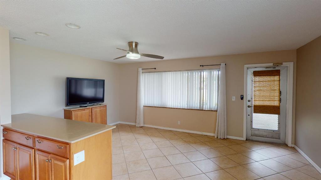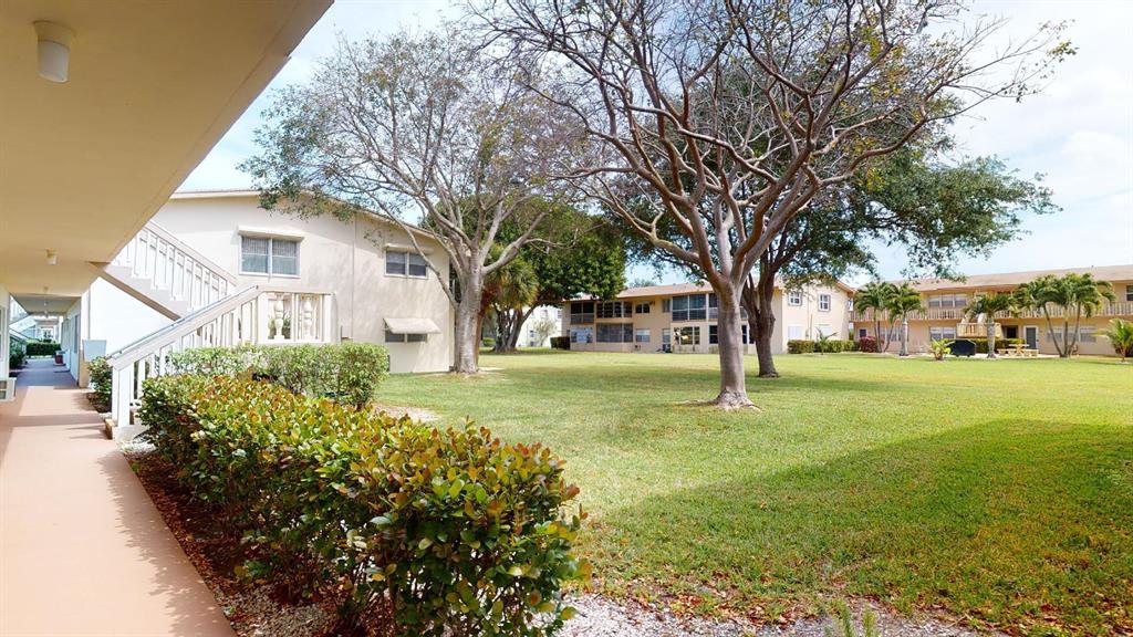 You must see this beautiful condo on the ground floor. This one bedroom, one and one half bath corner unit has been updated with impact windows, has a washer/dryer and is partially furnished. Tile floors in living area, bathrooms and lanai, laminate in kitchen and bedroom. Plenty of extra storage. Kitchen has 42 inch wood cabinets, quartz countertops and matching refrigerator, range, dishwasher and microwave and a double sink. Master on suite bathroom features a walk-in shower and both bathrooms have newer toilets and vanities.