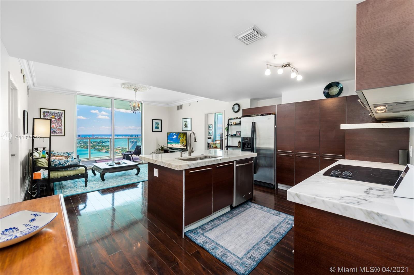You just found the impossible to find DIRECT OCEAN & BAY views from this gorgeous 43rd-floor residence in Quantum on the Bay! Unit features a European kitchen with a cooking island, quartz countertops, and stainless steel appliances. Building amenities include 2 heated pools, 2-story gym w/ classes available, theatre room, business center, 2 lounges/party room, sauna, jacuzzi, billiard, concierge, 24-hour security, and valet. Minutes from Downtown, Brickell, South Beach, and the Design District. Within walking distance of highly rated charter schools, Publix, Margaret Pace Park, many cafes and restaurants. Your chance to live in the most desirable waterfront property in Edgewater. Don’t miss out!