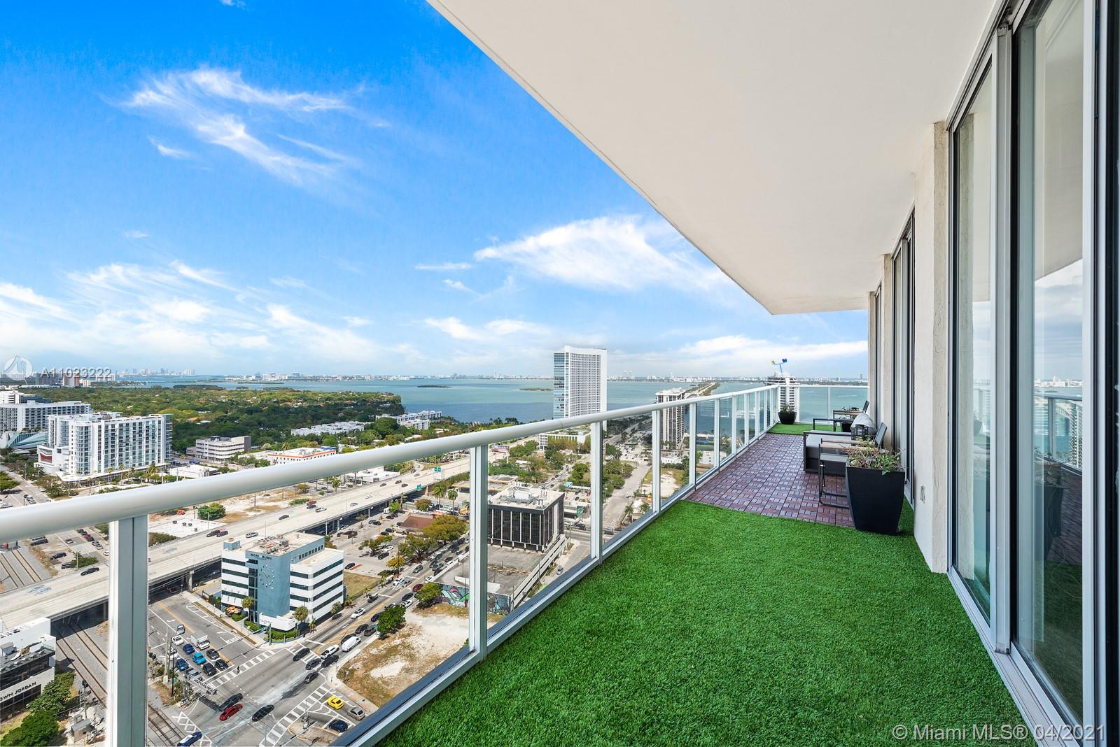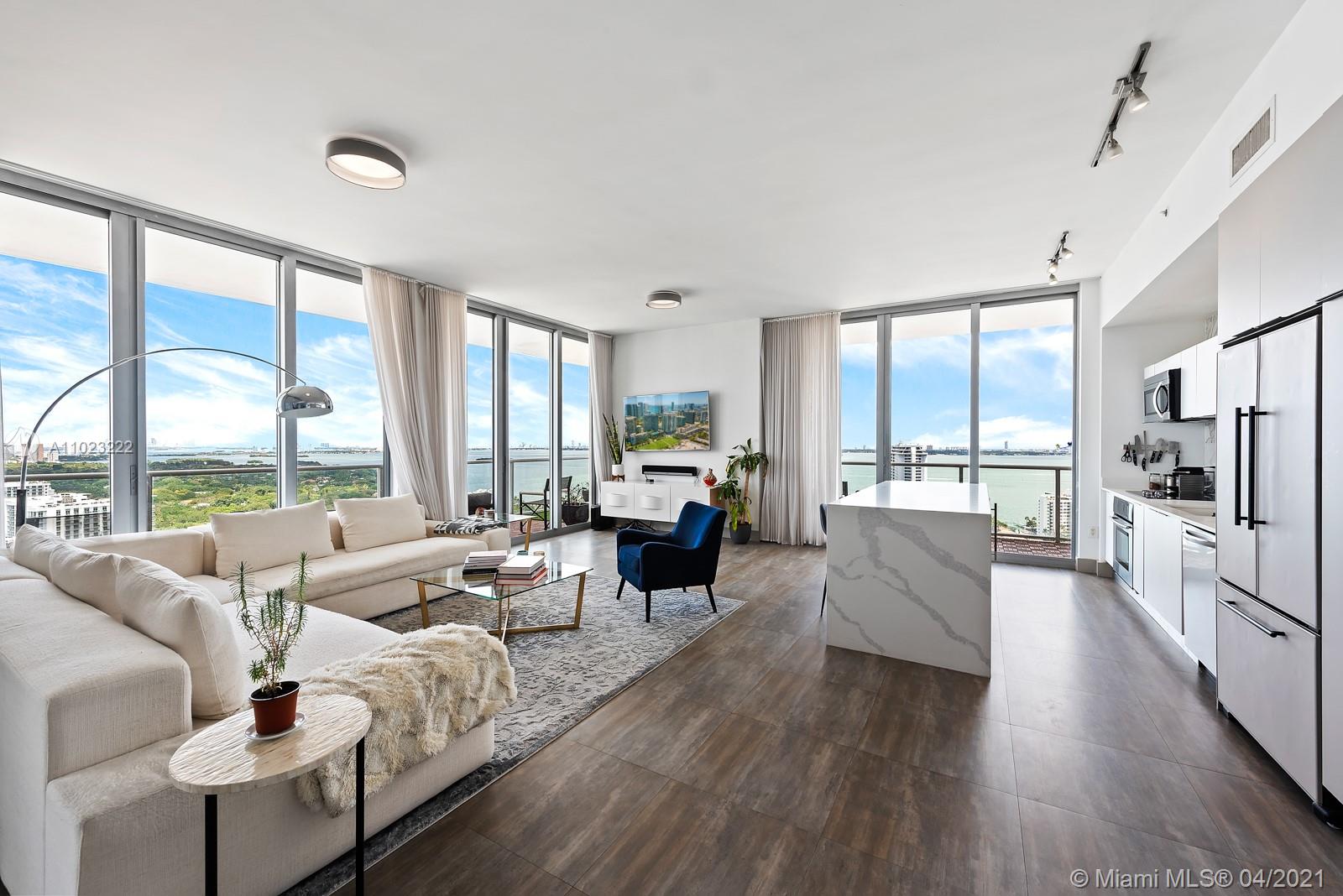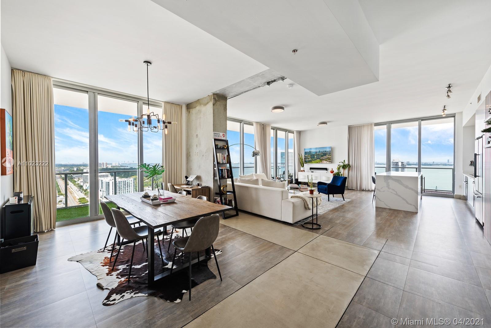 Perched on the 26th floor with wide open views of Biscayne Bay, live the Design District lifestyle in the best line at coveted 2Midtown! Renovated & reconfigured with style, this former three bedroom 01-line has been transformed into a spacious 2 bed + 2.5 bath residence with a massive living area built for entertaining wrapped around by a huge terrace with views from Downtown to Sunny Isles. Renovation included new designer kitchen w/ waterfall island, wine cooler + pantry, powder room, master bed and bath with fully updated double vanity and walk-through closet with built-in storage. The neighborhood is attracting Michelin rated restaurants including Pastis and Cote along with Tom Ford, Givenchy and everyday necessities like Barry's Bootcamp and Target. Welcome to the new Miami.