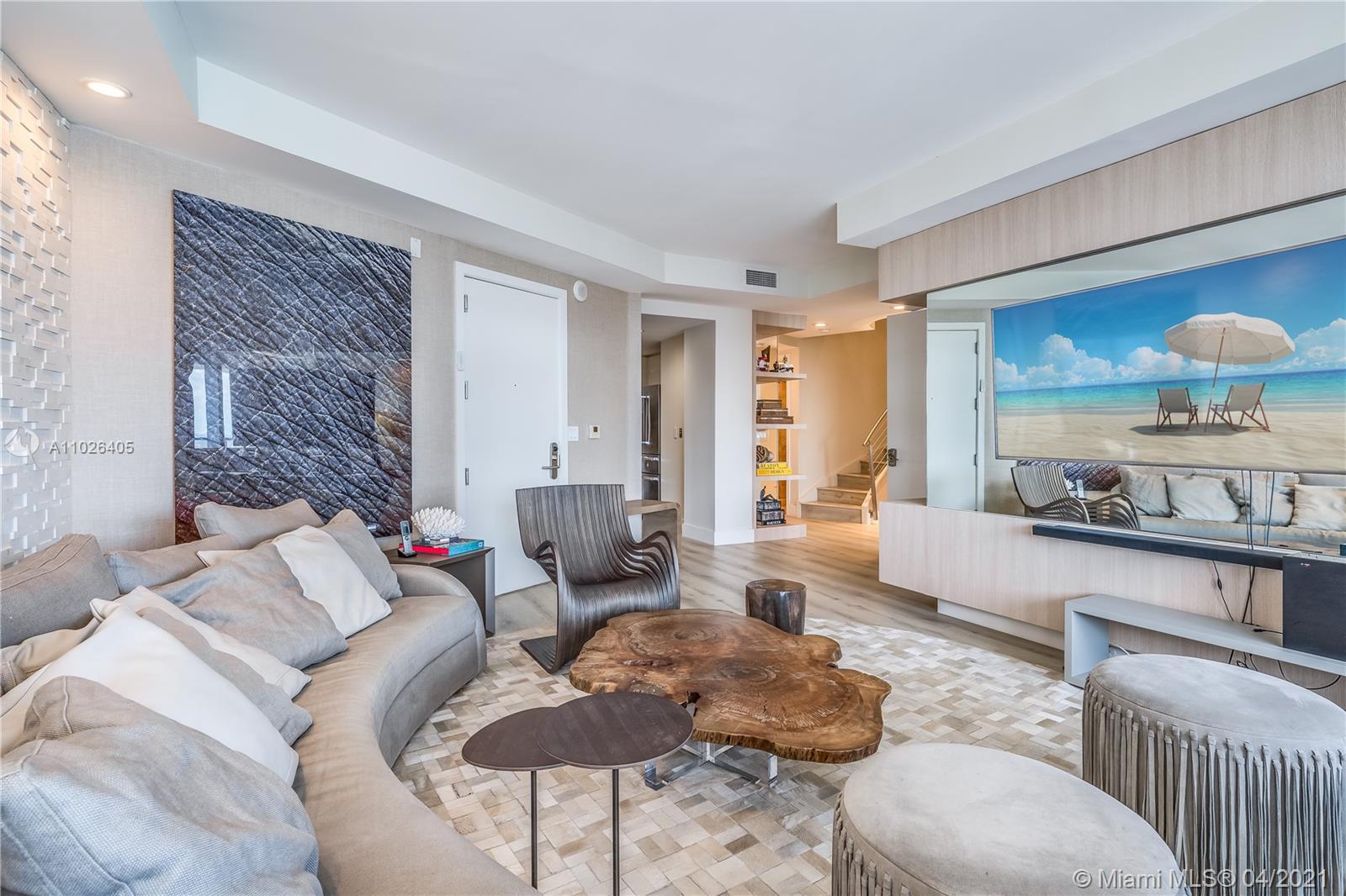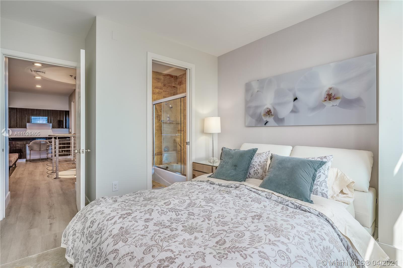 Rare two-story Penthouse in the Sky approved for Airbnb. Interior by Artefacto. First floor main living area features one bedroom and bath, kitchen, living-dining area and balcony. Spiral staircase leads to level landing "Zoom" room, and laundry room. Expansive Principal bedroom with breathtaking views of the Bay and spectacular city views. Unique 3 bedroom 3 bathroom residence one of the few penthouses in Brickell that is legally approved for short-term rentals.
