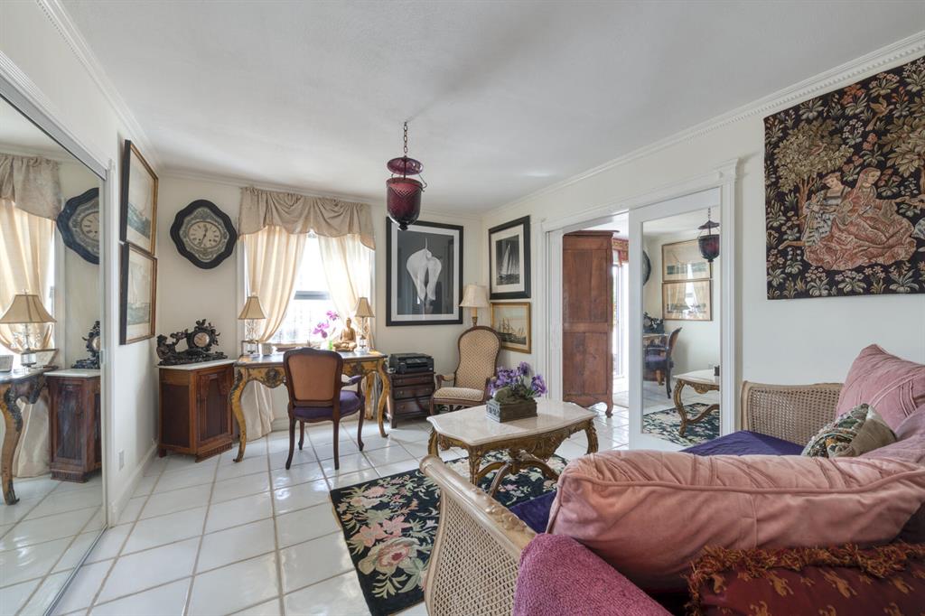 Across the street from the intracoastal. Apartment has been beautifully renovated with tile floors. Remodeled kitchen and baths. Mirrored on both sides of doors into the den. All impact glass, lovely pool, assigned parking space.
