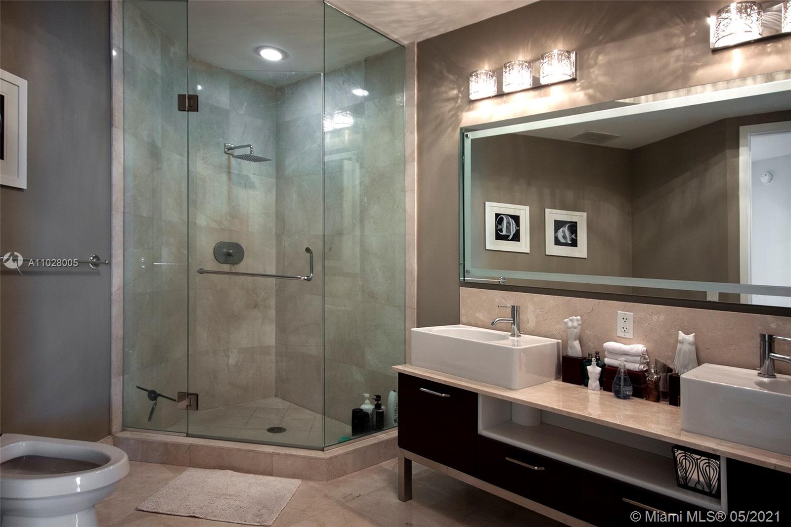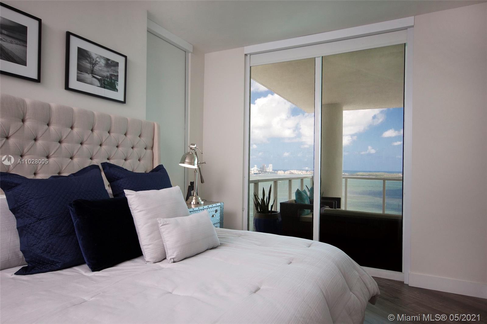 This Tower Suite at Emerald features a unique curve-of-the-earth panoramic views of Biscayne Bay and city skyline. The 10 ft high impact floor-to-ceiling glass windows connect the modern interior space with the private 447 sq ft wrap-around balcony that serves as a fabulous city and ocean lookout for a total area of 2,041 sq ft. The unit features stainless steel Sub-zero appliances, European kitchen cabinets, marble & laminate wood floors and private balcony on 2nd bedroom. Upscale resort-style amenities with 24 hrs. security, valet parking, concierge, rooftop infinity edge pool & spa overlooking the city and bay, state-of-the-art fitness center. Located in the heart of Brickell financial district, just minutes from AAArena, Brickell City Centre, Bayside Marketplace, Miami Airport.