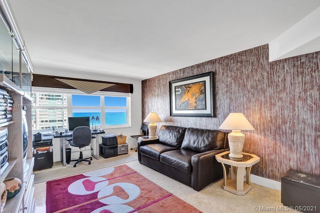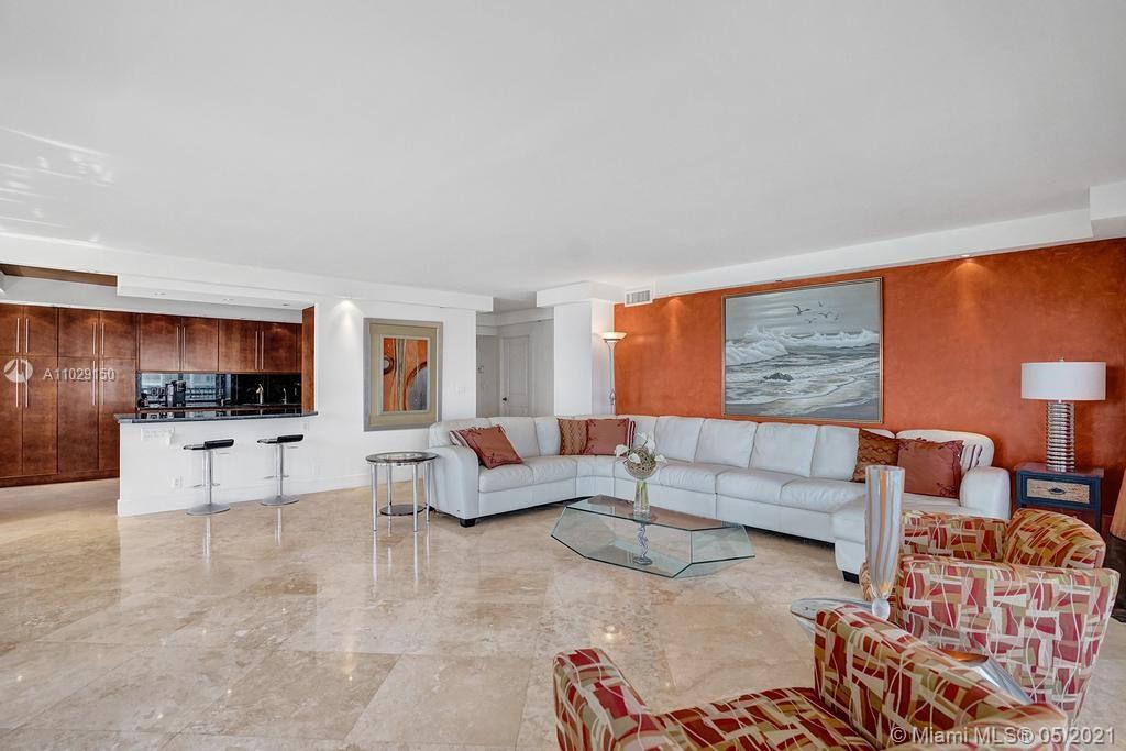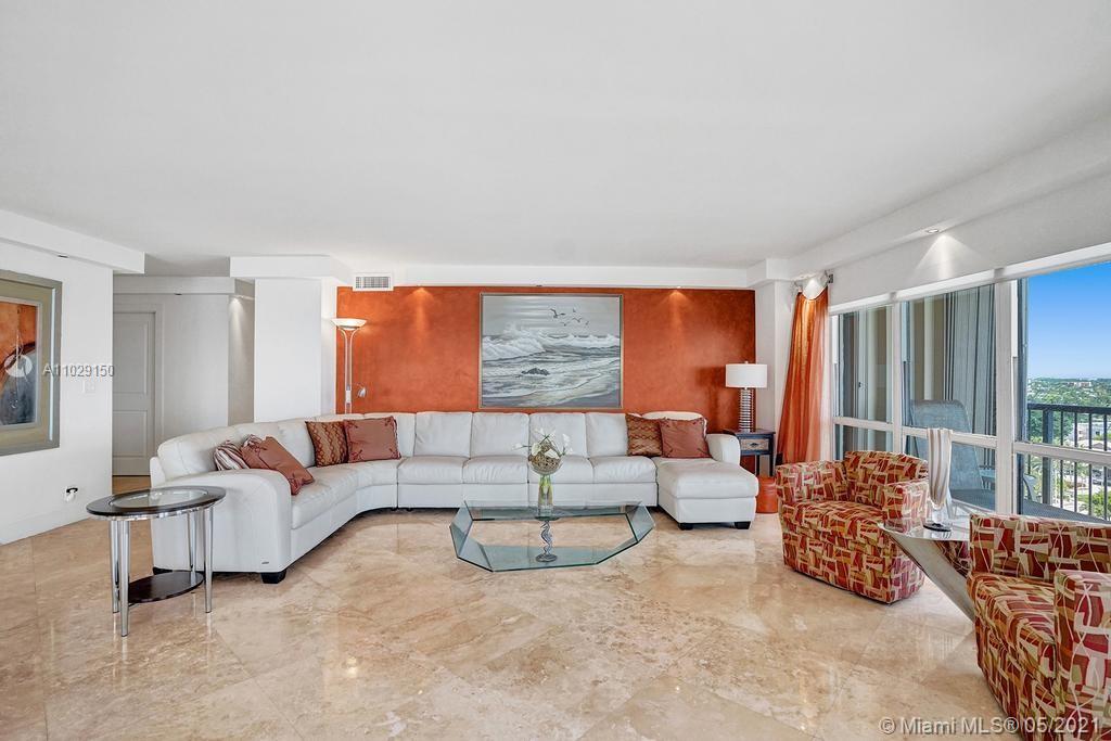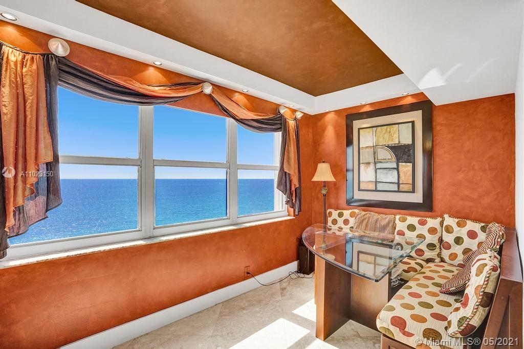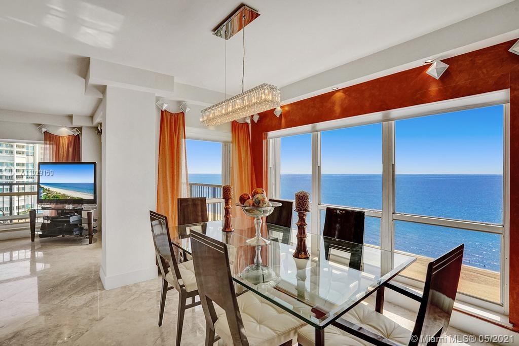 Beautiful NE corner with amazing Direct Oceanfront view.... including the Intracoastal, Skyline and stunning Sunsets. Every room has a view of the ocean! Large wrap balcony from living room. Marble floors throughout, open kitchen offering wood cabinetry, granite countertops, Jenn Aire appliances, wine cooler and breakfast nook. Foyer entry and separate laundry room. Spacious master bedroom with private balcony. Large master bath offering shower, jacuzzi tub, double sinks with onyx countertop. Second and third bedrooms are spacious. Second bath offers shower and additional cabinets for storage. Half bath with onyx countertop. Amenities include oceanfront heated pool, grill area, gym, saunas, pickle ball & bocce courts, tennis, billiards room, vehicle car wash. 24/7 security. Small pet okay.