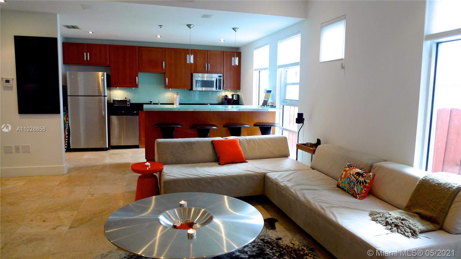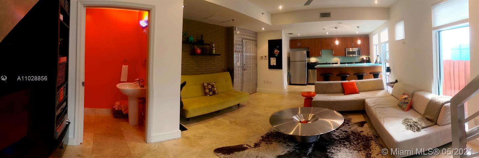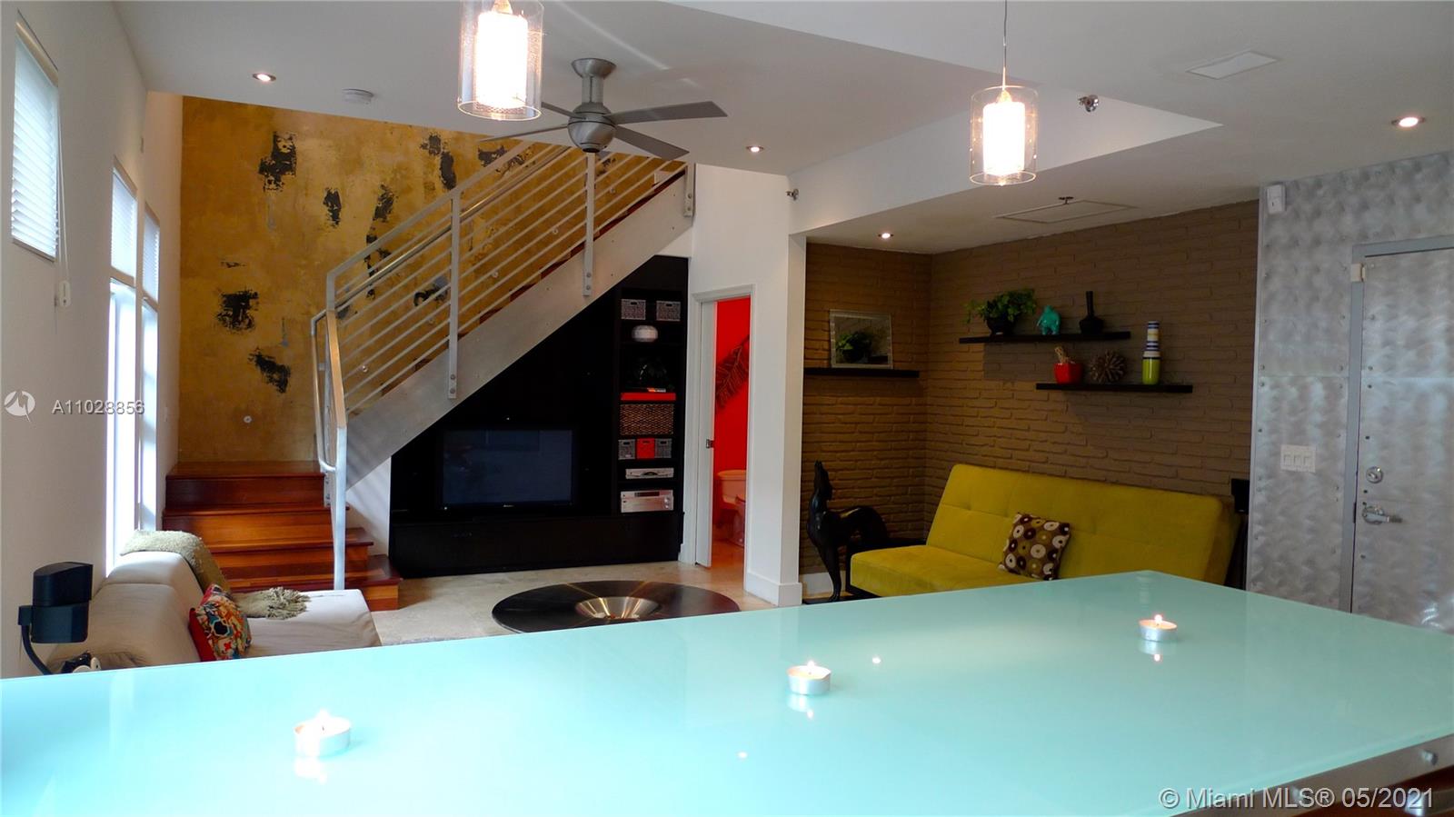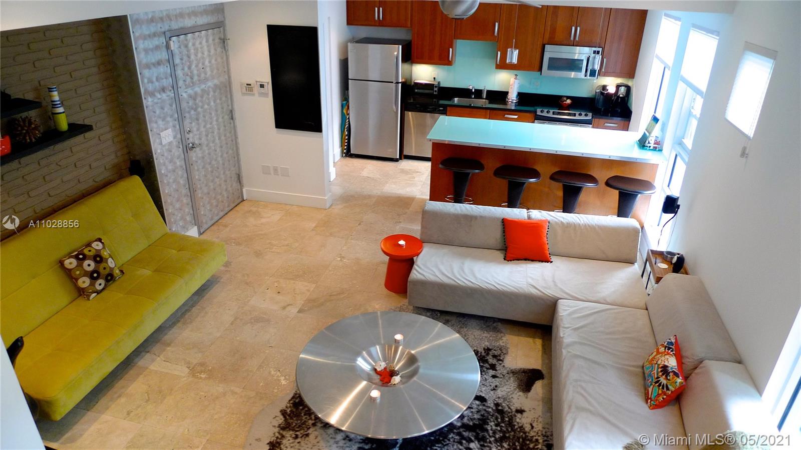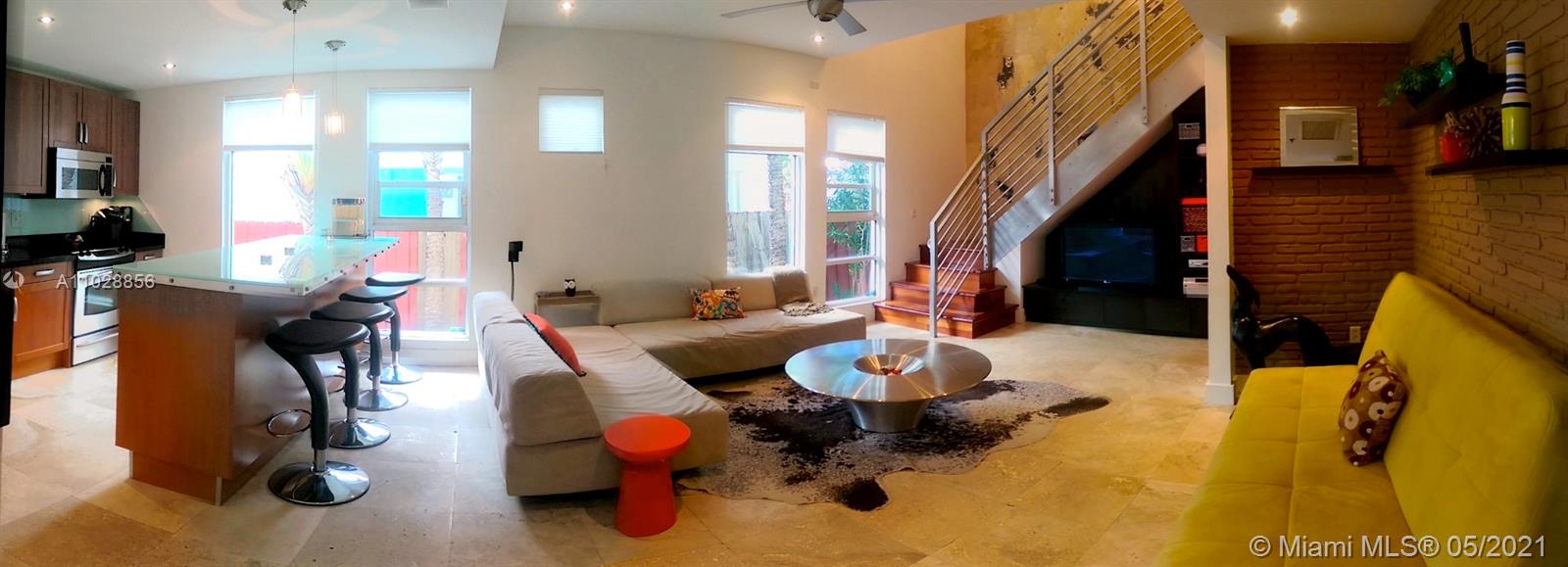 Unique Building in South Beach, originally a Jewish Temple, this modern and sexy 2 story 2 bed/2.5 bath, townhouse, loft offers many extras, including venetian plaster double-height loft wall, metal galvanized door, faux brick accent wall, double height chandelier, built ins, eat-in kitchen, all just steps to Lincoln Road, Española Way, Flamingo Park and the Beach. The Master bedroom is completely enclosed and private with ensuite bath, while 2nd bedroom offers airy open loft concept with 2.5 walls and privacy curtains. 2nd bath located directly across bedroom. 1/2 bath downstairs. Washer and dryer in unit. Located in the heart of Art Deco District. EASY TO SHOW! Secured and gated.