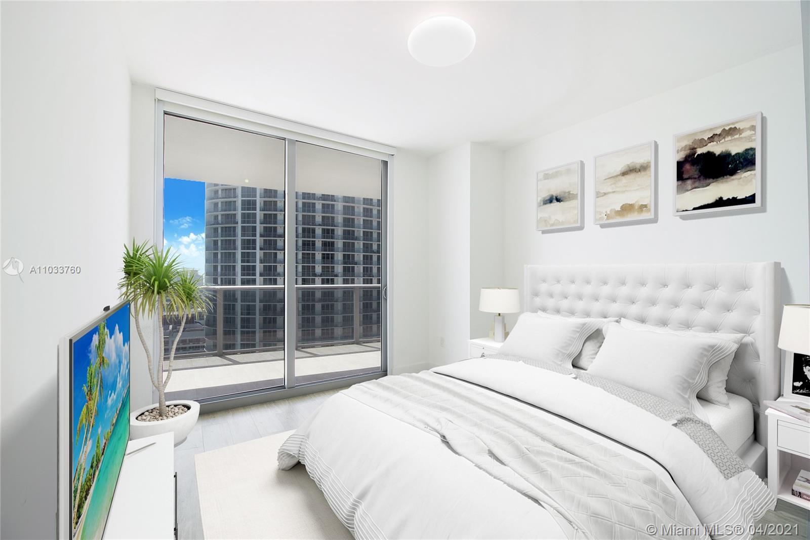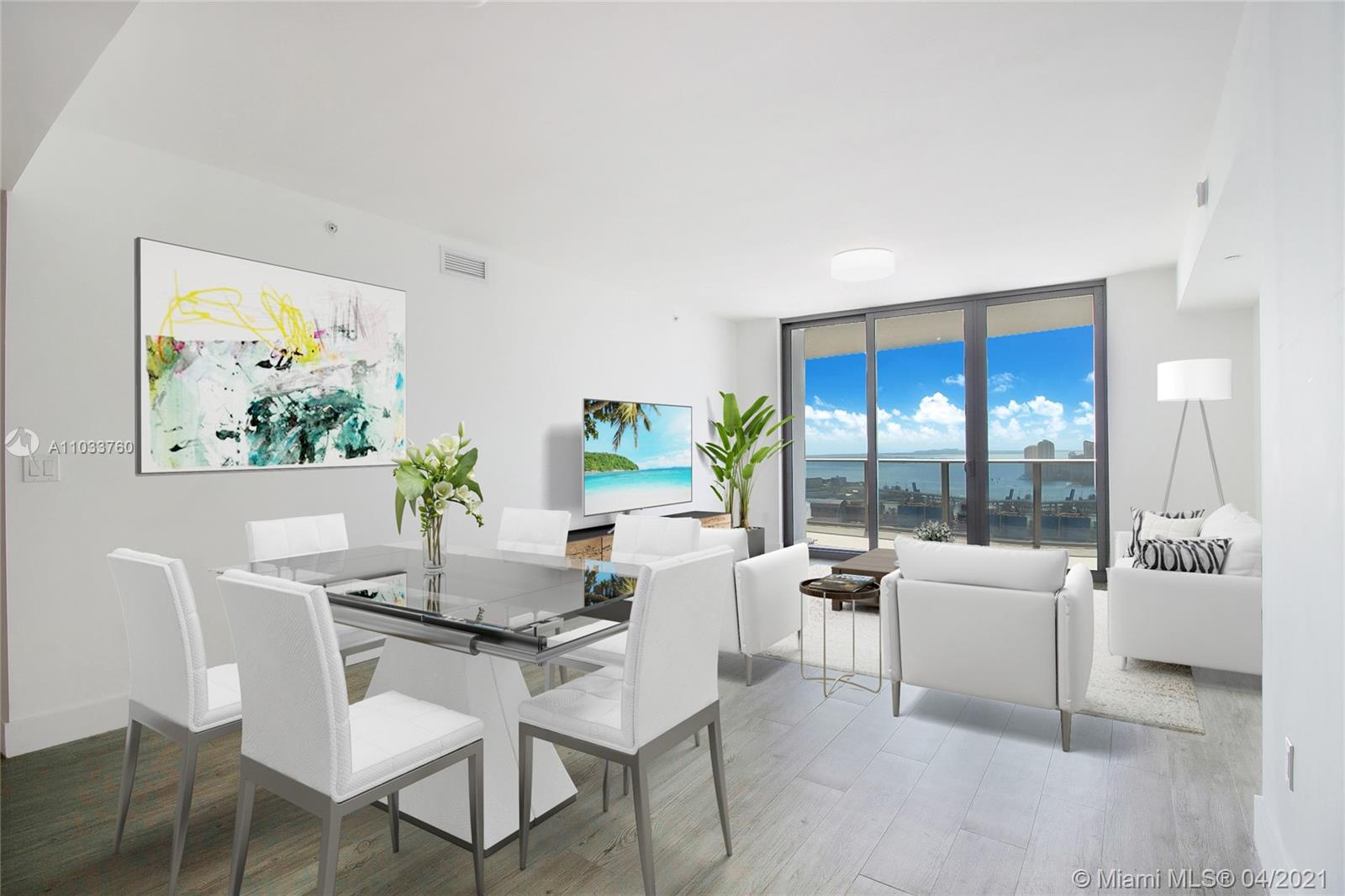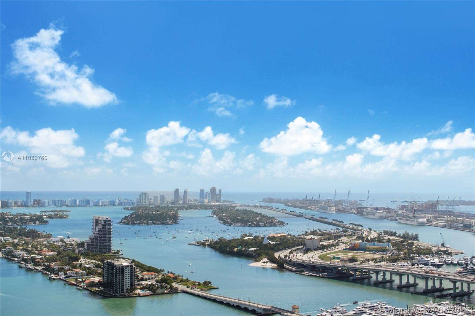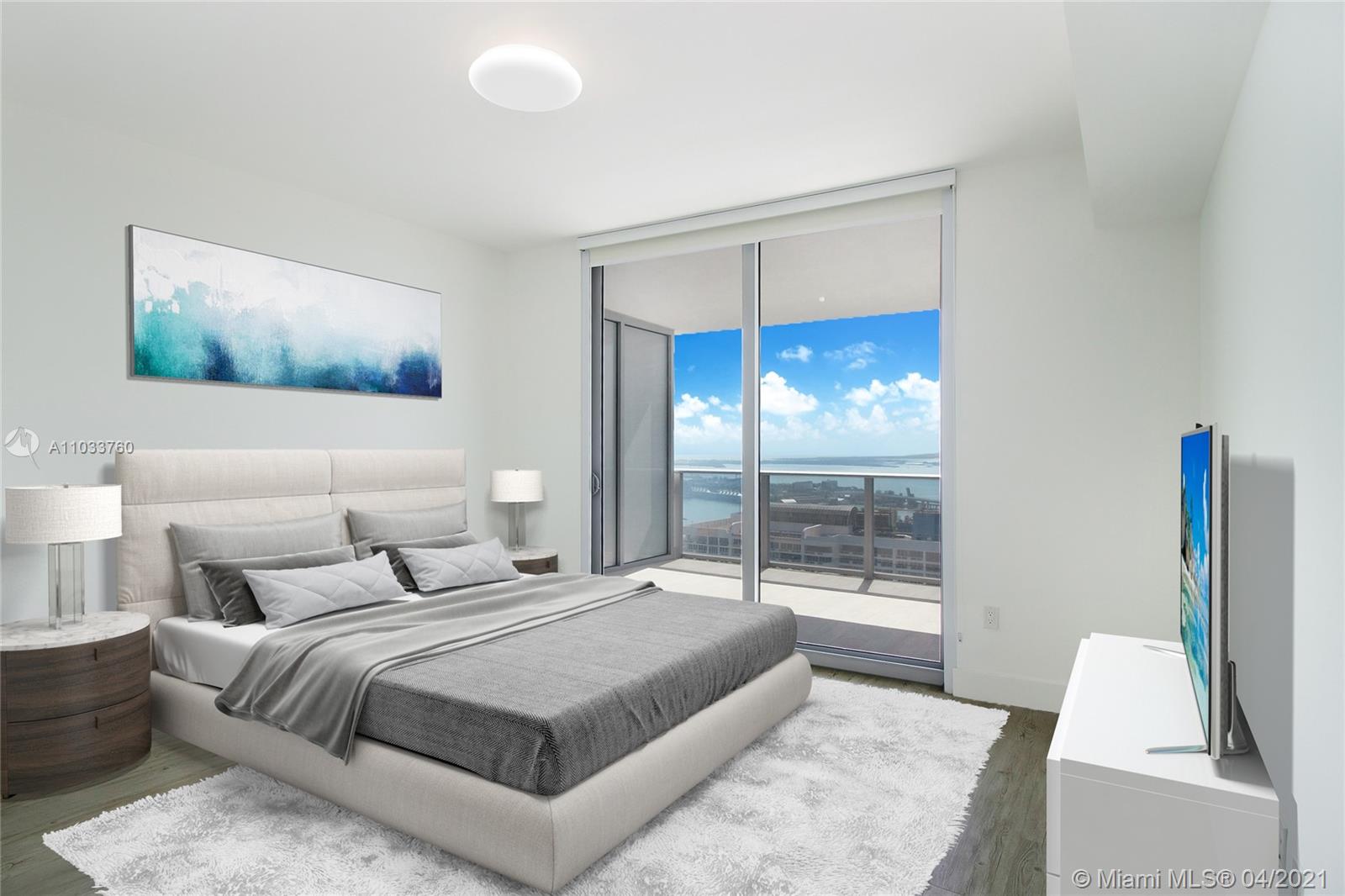 Large 3 bedroom residence on the 45th floor with unobstructed views of Biscayne Bay, Downtown/Brickell skyline and Miami Beach. Private elevator, private foyer, wood-like porcelain tile, top-of-the-line appliances, Quartz counters, European cabinets, shades/blackouts, custom closets. Brand new building with 5-star resort style amenities: 2 pools sunrise & sunset infinity pools, fitness center, BBQ, lounge/party room, business center, spa, sauna steam room, hot tub, etc.