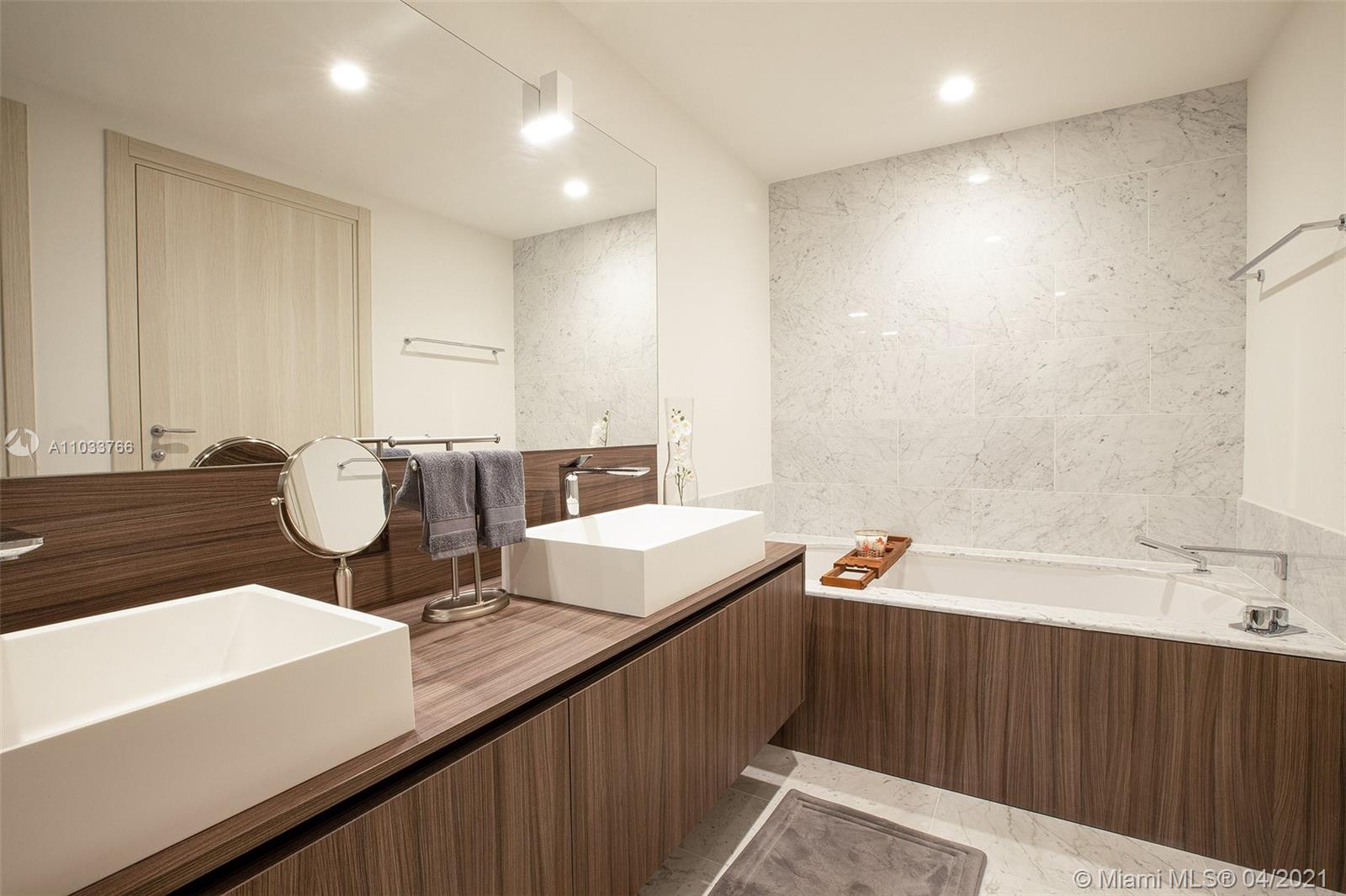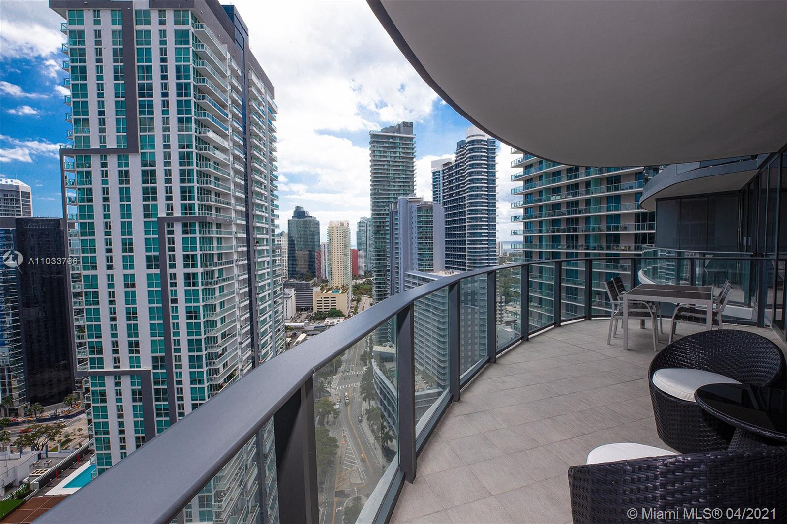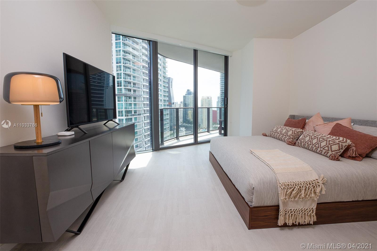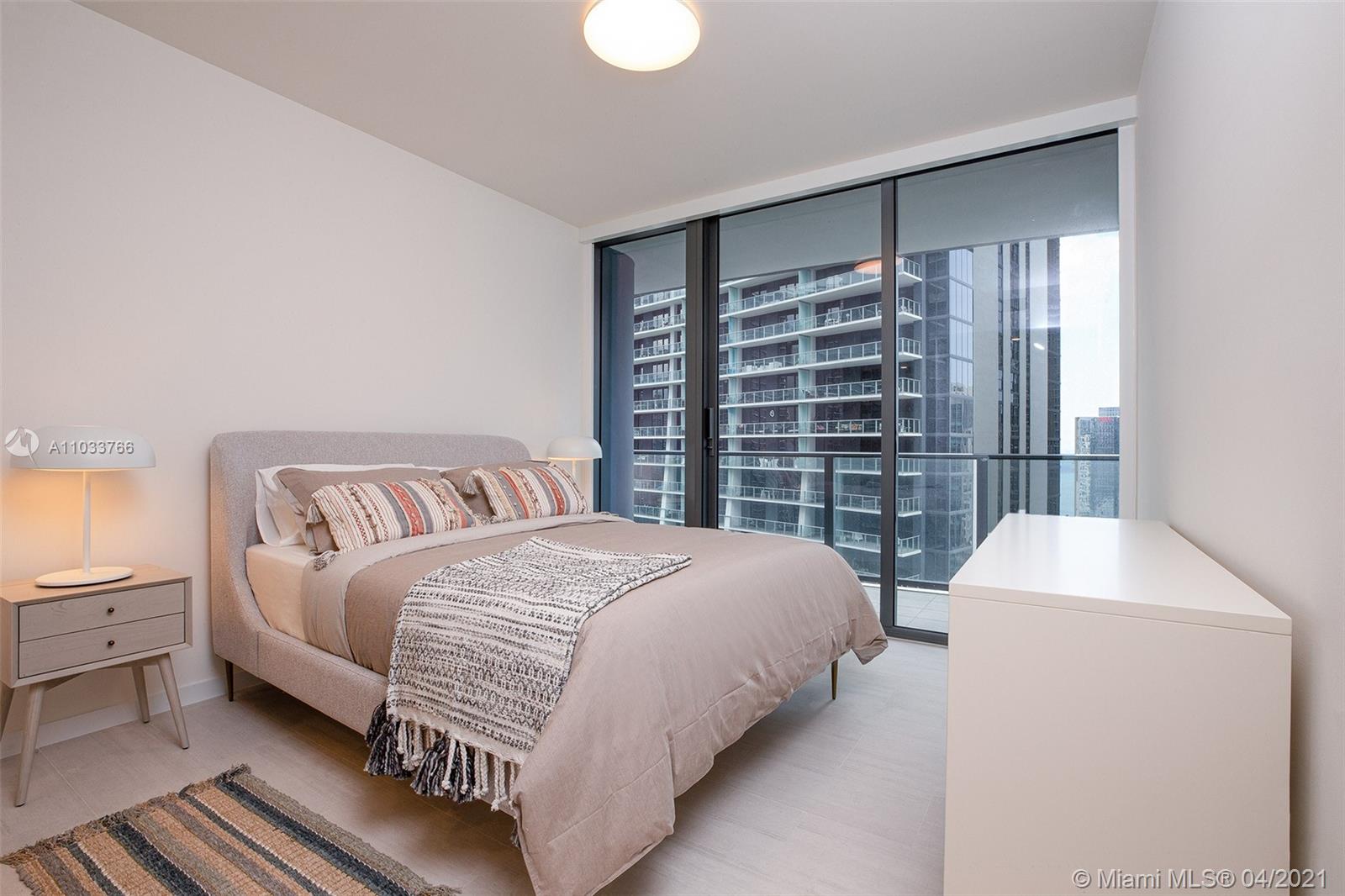 A beautiful 2 bed / 2.5 bath unit, located in the heart of Brickell. This unit is fully furnished by a professional interior designer, and entirely equipped with high-end finishes, Miele appliances, moderns tile floors (balconies included), built-out closets, solar shades in common areas, blackouts in the bedrooms, wraparound balcony (and an additional private balcony just for the master bedroom). This unit comes with one assigned parking space and complimentary valet for another vehicle. Brickell Flatiron is the newest and most exclusive building in the area. Designed by Ugo Colombo, Flatiron offers 5-star amenities, such as a 24h attended lobby, state-of-the-art gym, theater room, rooftop pool and jacuzzi, and massage rooms. The unit is rented for $5,600. for month until Feb 20th, 2022