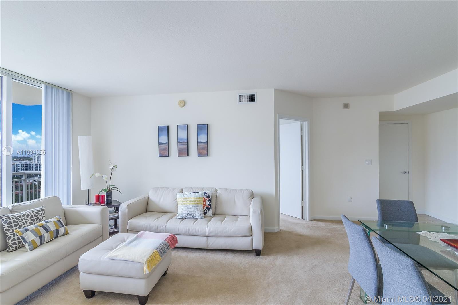 Aventura lifestyle converges around the private Golf and Country Club, the famous Aventura Mall and the city signature restaurants and parks. This well appointed 2-Bedrooms flat features city, park and Intracoastal views with plenty of natural light, granite counter tops, walking closet, laundry room and open balcony. The building offers services like valet, 24/7 attended lobby personnel, heated pool with Jacuzzi, recreational deck, landscaped walks areas, BBQ gazebo, playground, business center, meeting-social room, billiard room, fitness center with Yoga studio, massage and steam rooms. Walking distance to all conveniences, short ride or bike to the Beach, 3-miles exercise path,Tennis courts and Soccer and Baseball fields. Live, Work and Play!