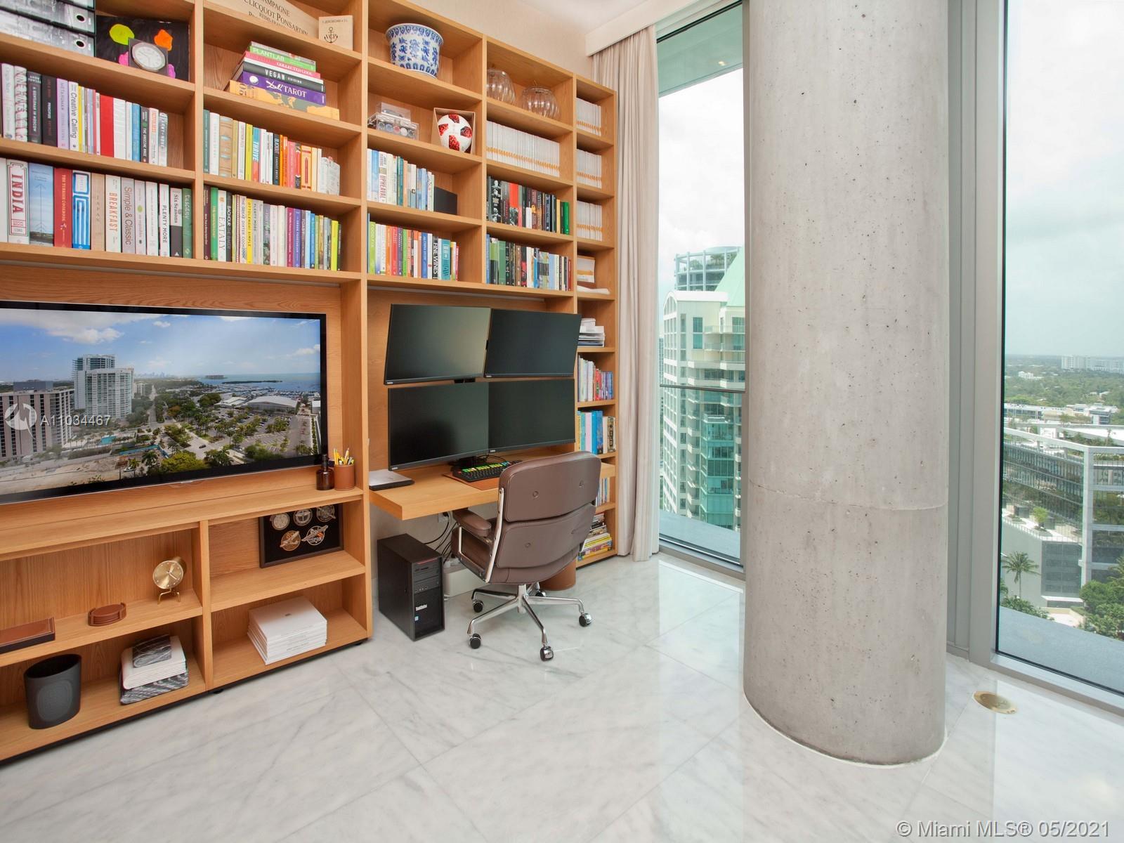 Spectacular Modern luxury condo at the Grove at Grand Bay South Tower in Historic Coconut Grove. An iconic residence that evokes luxury. Distinctive contemporary design includes 12 foot floor to ceiling glass doors and unobstructed panoramic views of beautiful Biscayne Bay. This 6 bedroom and 6 1/2 bathrooms unit is one of a kind, including natural light in every room and and open spacious floor plan. Original finishes from the developer were entirely upgraded to the finest materials and craftsmanship. Upgraded finishes includes Poggenpohl Kitchen, Sub-Zero Fridge, Freezer and Wine Cooler, Marble Bathroom floor to ceiling, Italian Cabinetry in Bathrooms, Custom Italian Library, Custom Cabinetry in Laundry, Two and half car garage with custom cabinetry and commercial resin flooring.