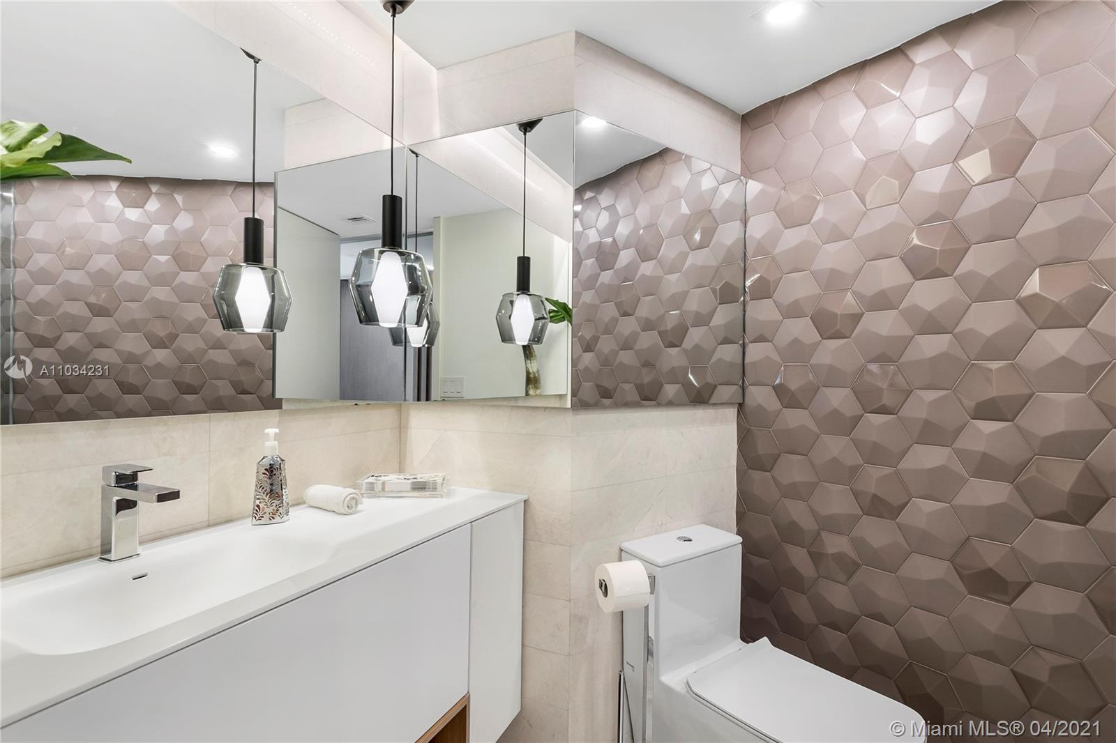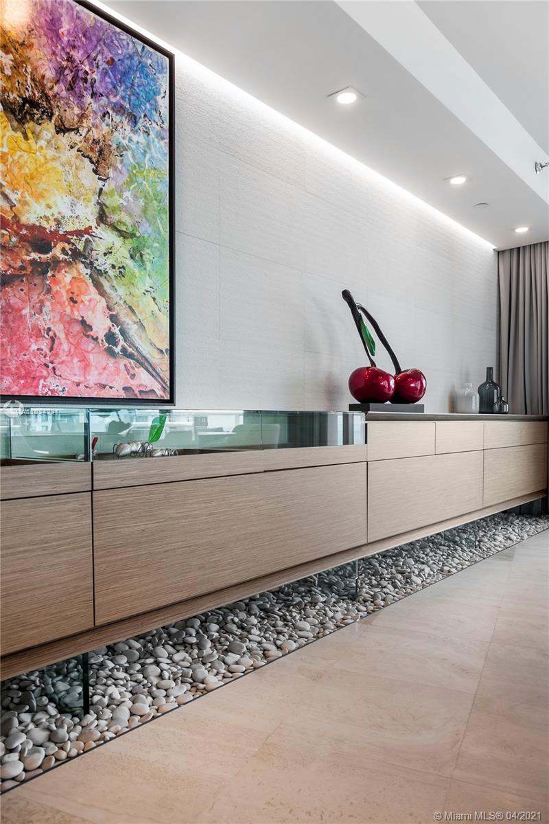 STUNNING and FULLY RENOVATED unit in the luxurious Bristol Tower. This unit is truly one-of-a-kind with exquisite finishes. Everything in the apartment was custom-made. Featuring: imported Italian woodwork for closets, built-ins, and cabinetry, marble counters, Thermador appliances, floor-to-ceiling windows, spectacular views from every room, gorgeous accent walls made of natural stone and wood, and a private elevator & foyer. Enjoy alfresco dining and gorgeous sunrise and sunset views from this unique wrap-around balcony, one of the largest in the building. Amenities: swimming pool, clubroom, fitness center, sauna & steam room, children's playground, complimentary valet, concierge, 24-hour security, cafe, & tennis court. 2 parking spaces + 1 storage - Light fixtures not included!