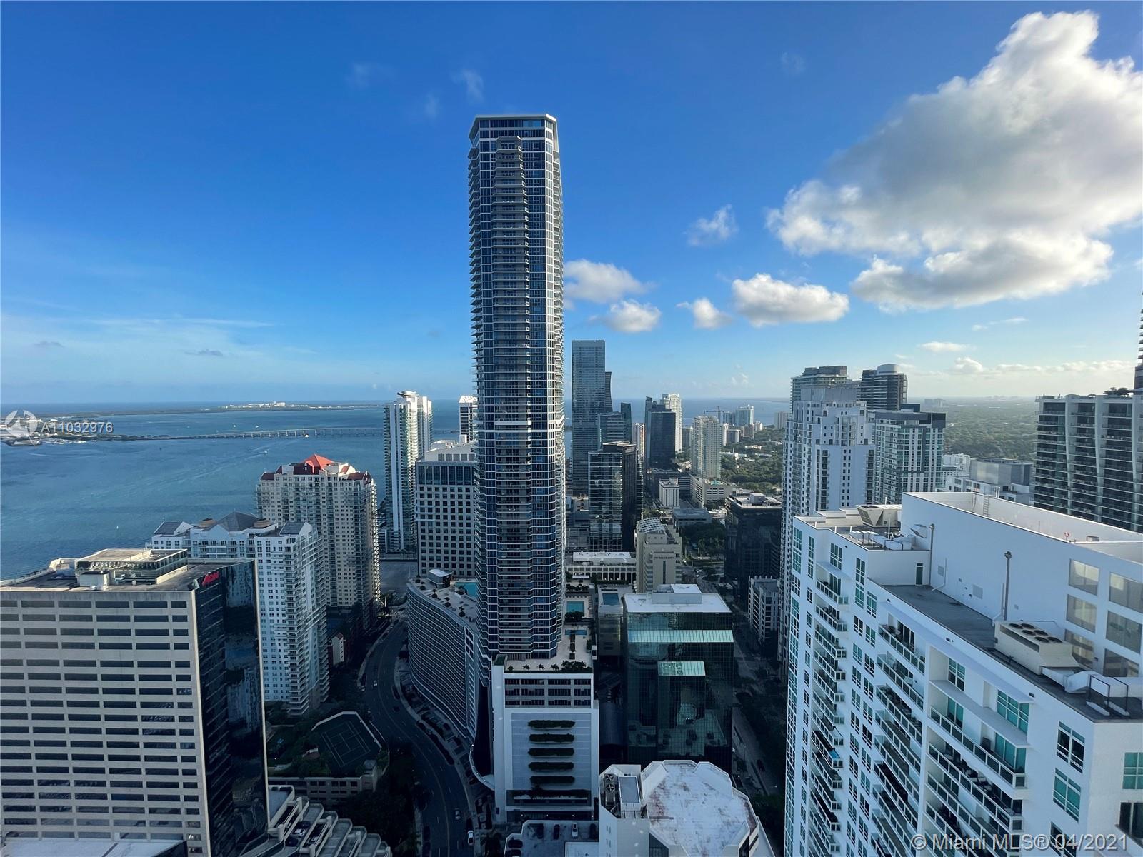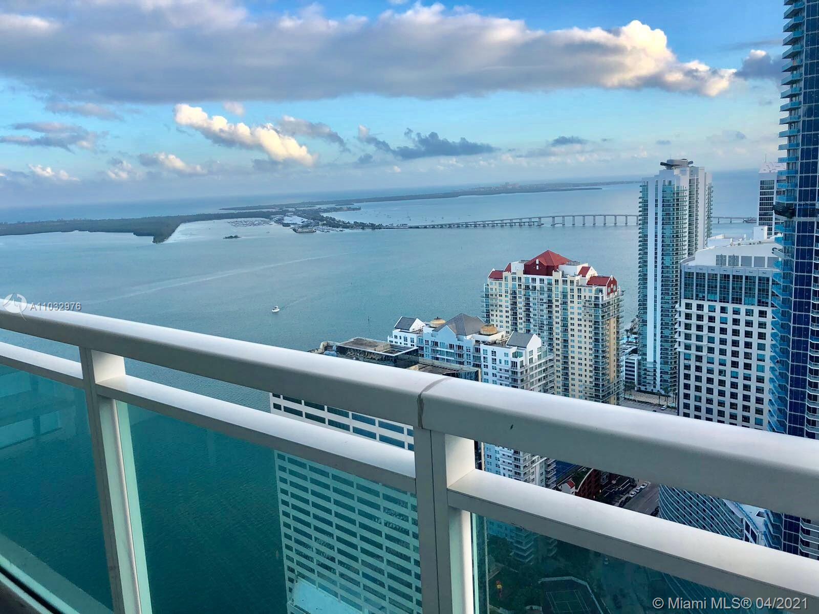 Spectacular 2/2 on the 51st floors with amazing bay views. Residence features modern high ceilings, stainless steel appliances ,imported italian cabinetry Amenities:24 hr security and concierge, 24 hour valet parking, State of the art Fitness Center in each tower, 2 Infinity-edge heated pools, Steam room,Theater room, Business center, party room, pool table & lounge. Walk to Mary Brickell Village and Brickell City Center mall. Water, basic cable & internet included.