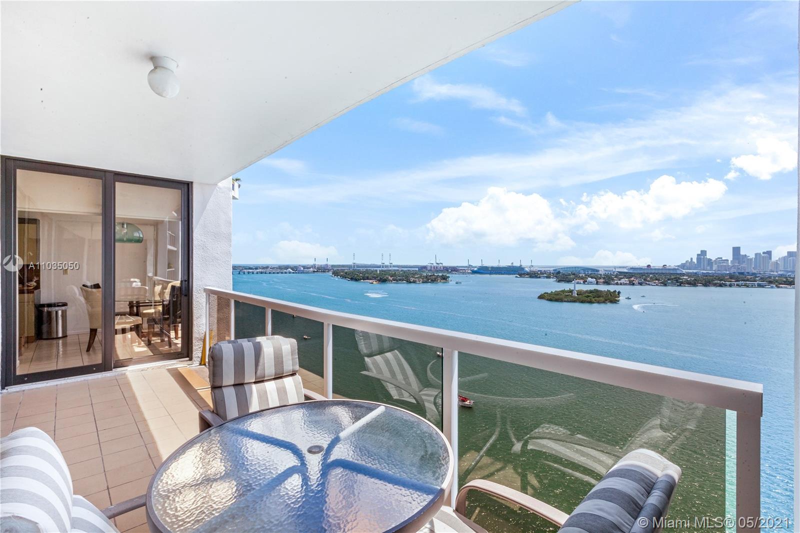 VIEW, VIEW , VIEW... OPEN BAY , DOWNTOWN , STAR ISLAND ... Night or Day , the best view from the oversized Balcony and from every window! . Best Location in Miami , BELLE ISLE on The Venetian . Walking distance from the very trendy area @Sunset Harbour . PRIVATE DOCK INCLUDED . This 2 bed / 2 bath 1,440 SF is a Miami Lifestyle and Boat dreamer ... Unit comes with one garage space and extra storage unit.