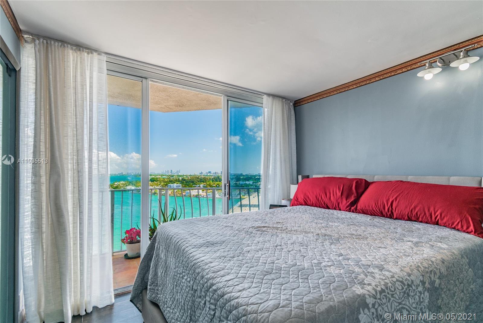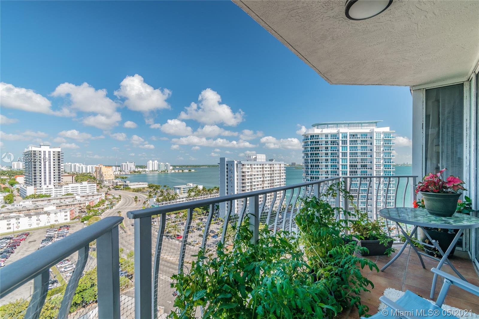 COME FALL IN LOVE WITH THIS ONE OF A KIND 2 BED/2 BATH, CORNER UNIT IN THE HEART OF NORTH BAY VILLAGE! THIS STUNNING CONDO OFFERS SOME OF THE MOST AMAZING VIEWS YOU CAN ONLY DREAM OF. ENJOY SUNRISE AND SUNSET VIEWS FROM YOUR 2 BALCONIES. FLOOR TO CEILING WINDOWS THRU OUT THE UNIT TO ENJOY THE SPECTACULAR VIEWS FROM EVERY ROOM OF BISCAYNE BAY, MIAMI BEACH & DOWNTOWN SKYLINE. UNIT FEATURES ITS OWN WASHER/DRYER, OPEN KITCHEN WITH PLENTY OF CABINETS AND COUNTER SPACE INLCUDING BAR STYLE SITTING & AUTOMATIC BLACKOUT SHADES IN LIVING AREA. ENJOY RESORT STYLE POOL, ON-SITE CONVENIENCE STORE, CAFETERIA, BEAUTY SALON, GYM. CONVENIENTLY LOCATED JUST MINUTES FROM MIAMI BEACH & OTHER MIAMI GO TO DESTINATIONS. UNIT COMES WITH 2 ASSIGNED PARKING SPACE!!! COME FALL IN LOVE AND MAKE THIS CONDO YOUR HOME!