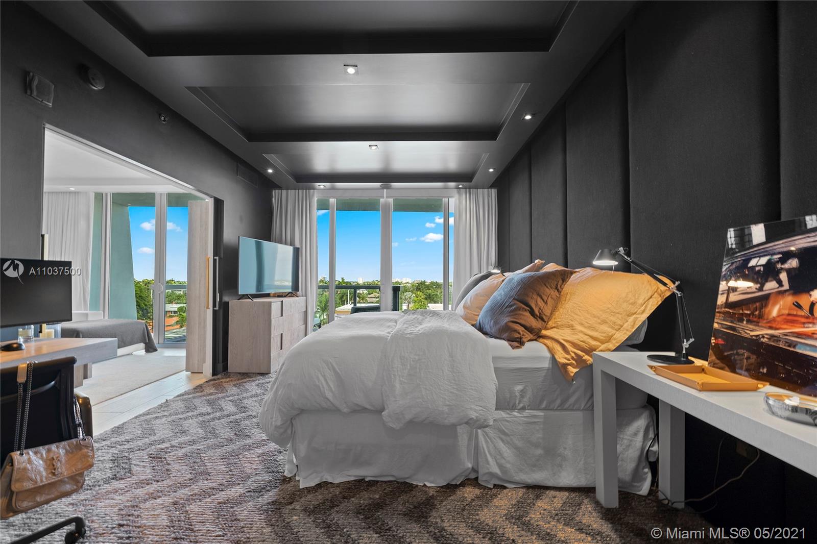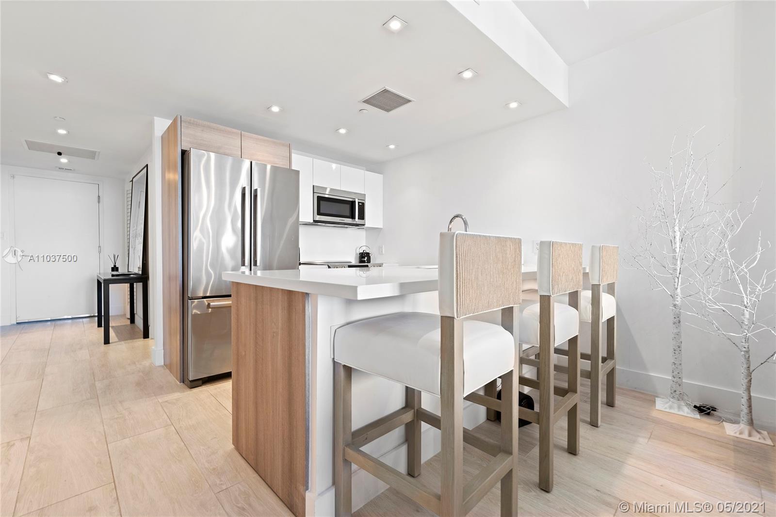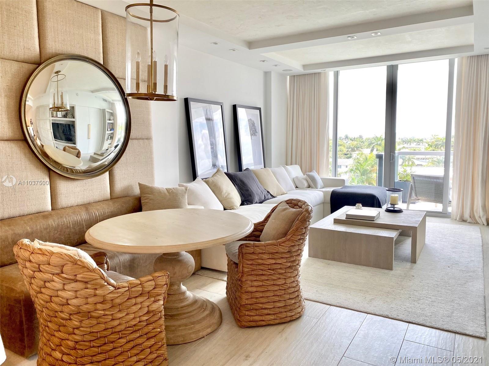 Waterfront living & enjoy westerly water & sunset views from modern 1 Bed + Den & 2 Bath residence at KAI Condos in Bay Harbor Islands, FL. Boat slips possible for purchase or lease. Use as a 2/2. Unit features 9' ceilings framing unobstructed views from wall-to-wall, floor-to-ceiling glass walls and balconies. Building amenities include rooftop infinity-edge heated pool, Jacuzzi, fireplace, BBQ area, gym & party room. KAI is a boutique waterfront 57 unit building walking distance to Haute Shopping at the Bal Harbour Shops, fine dining, local cafes, & beaches, as well as Houses of Worship. Quality Public Schools include: Ruth K. Elementary, Nautilus Middle, & Miami Beach Senior High. Offered unfurnished, but furniture negotiable. Pet friendly (1 pet < 40 lbs). 1 assigned parking.