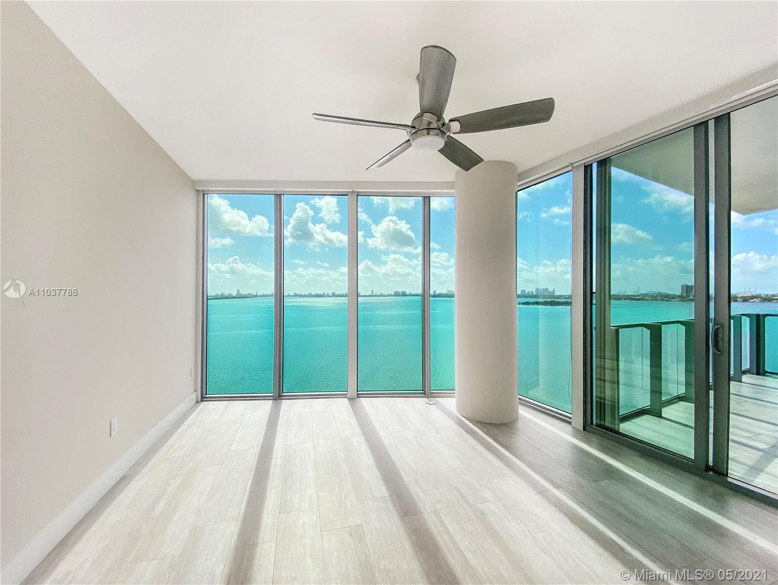 ***COVETED SE CORNER** Hear the bay breezes passing over palm leaves, bask in the sun, and take in the beauty of Biscayne Bay with unobstructed views through floor-to-ceiling windows and doors. This fabulous 3 bedroom + den w/4 bathrooms includes 1 parking spot, private elevator and foyer, 2 balconies, and, storage, Miele appliances. Building amenities are among the best in Edgewater with concierge; security; valet; 2 tennis courts; basketball; dog park; 2 pool decks w/cabanas, day beds, chaise lounges, and summer kitchens; spa w/ treatment rooms, locker rooms, sauna & steam room; fitness center; library; theatre; pool tables; business center, and bay-walk!