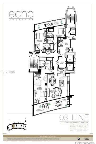 Beautiful fully furnished & professionally decorated 3 bed/4,5 bathrooms + maids quarters residence in one of the most prestigious buildings in South Florida**ECHO AVENTURA**designed by world renowned Carlos Ott w/interiors by Yabu Pushelburg. 2,360sf interior + 370sf & 180sf balcnies. Private elevator into your residence w/breathtaking views of the Bay & city. Wolf-Subzero Appls, high ceilings, oversized terraces with Summer Kitchen. Echo's 5 star Amenities are a step above the rest w/its 4000 sqft state-of-the-art fitness center featuring an infinity pool w/unobstructed views of the Bay, a Yoga Room, Café, Concierge, Dog Walker & so much more