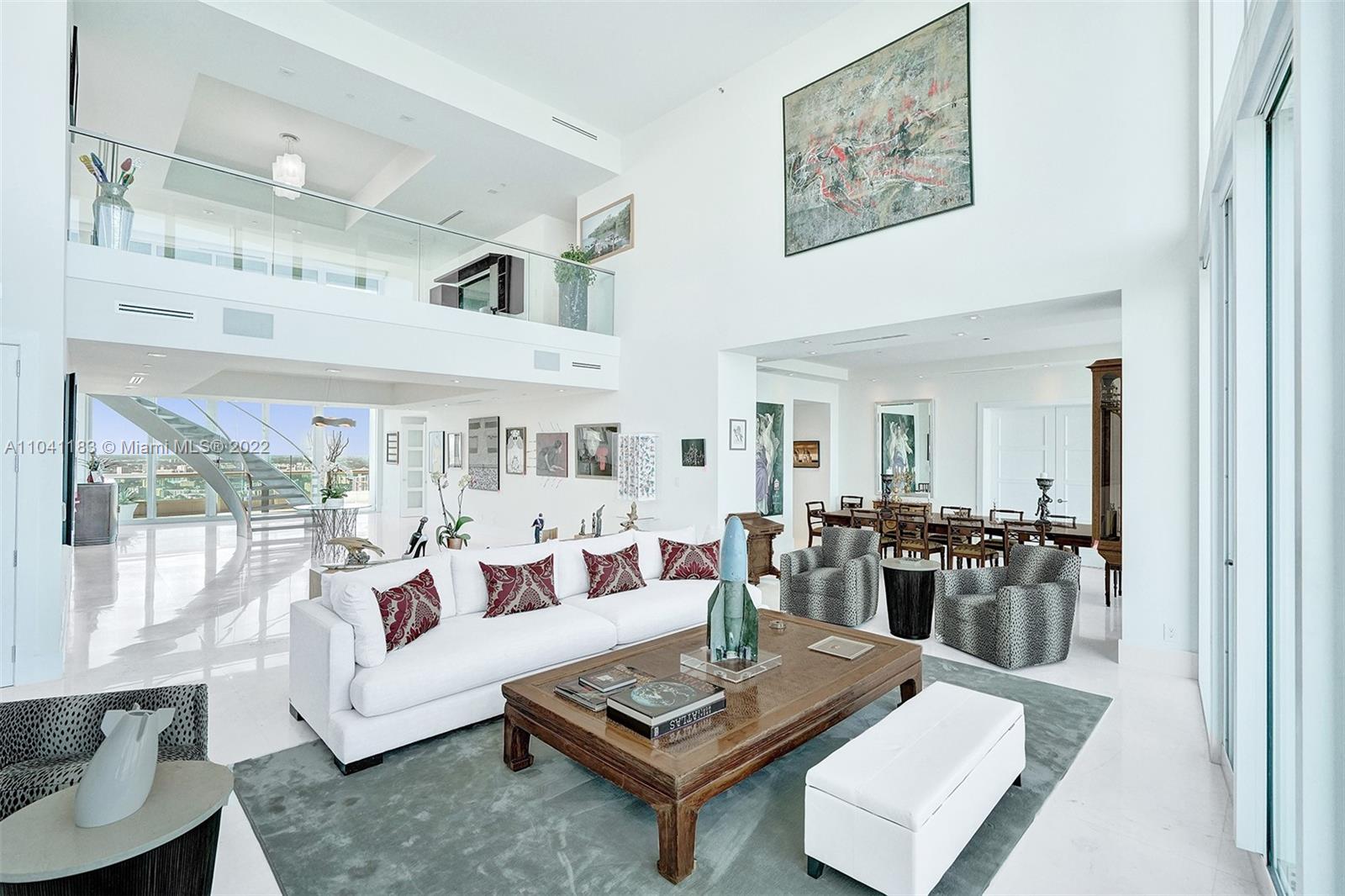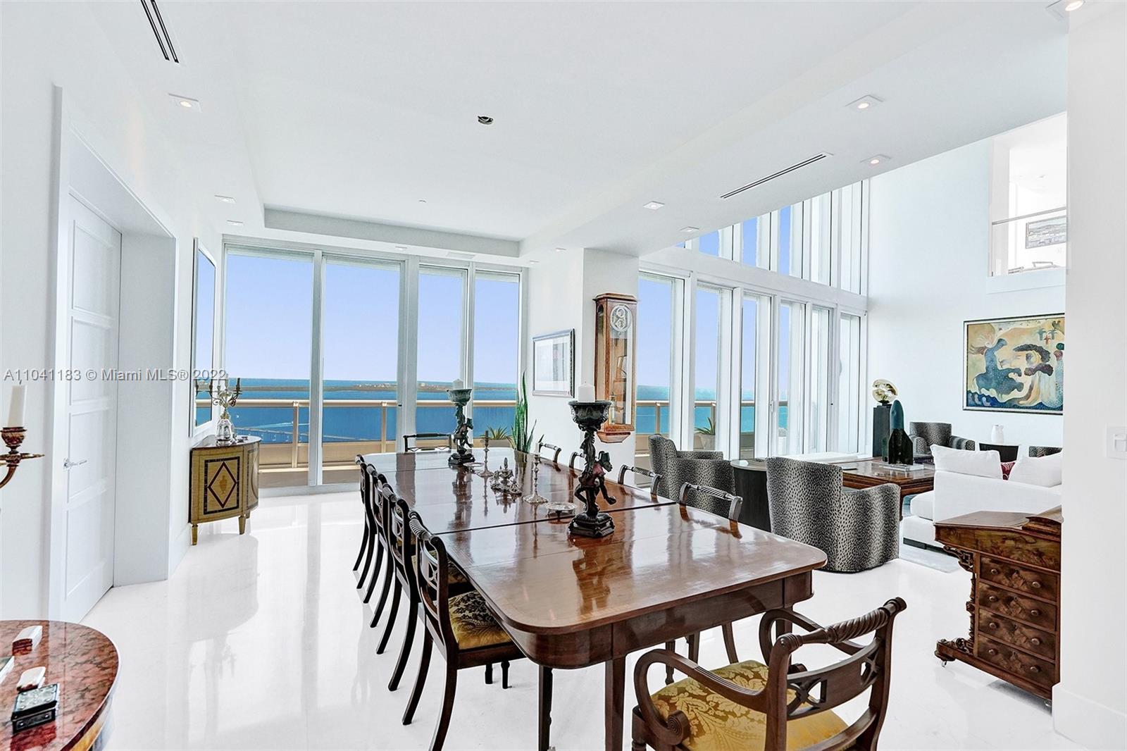 Spectacular views with Miami’s sparkling skyline at your feet! That is the best description of what one sees from this stunning two story, luxury-laden penthouse in one of Miami’s top condominium buildings! From the two-story, sun drenched living room to the sparkling waters of your private rooftop pool atop the 50th floor of the Santa Maria, no detail has been overlooked to provide luxurious, convenient living at its best. The 2020 kitchen is supported with a full walk- in storage pantry, as well as an adjacent butler’s pantry and wine room. Additionally, one will find a spacious entertainment area adjacent to the pool, a large family room, 6 bedrooms 8 baths, a library/office, formal dining room and private foyer entry. Also included are 4 parking spaces.