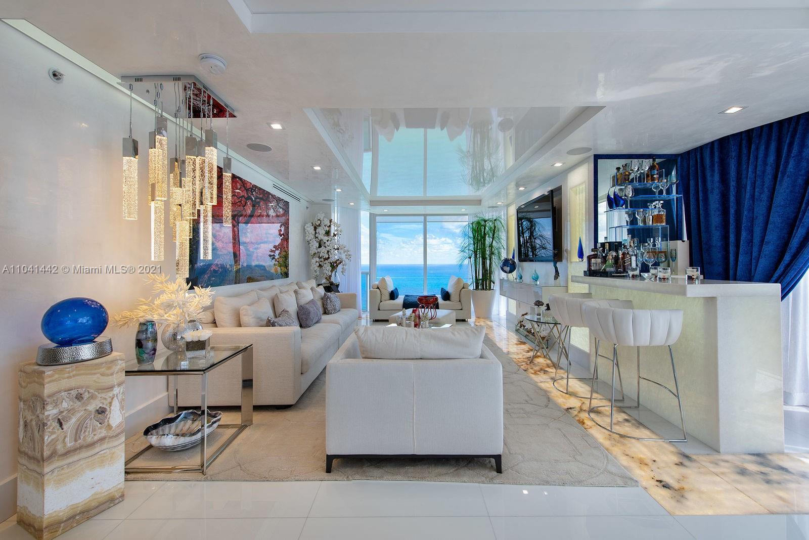 Huge PRIVATE ROOFTOP SUN DECK with 360 degree views from the Ocean to Downtown Miami to the Intracoastal to Fort Lauderdale. Spectacular oceanfront condo, completely remodeled & furnished with 2,274 FT2 Living Area* . Top floor with panoramic views from every room; Many upgrades including Savant Home Automation, Backlit Onyx features, Sub-Zero and Wolf appliances. Full service 5-star building offers tennis court, beach & pool service, security, valet, gym, sauna, steam room, social room. Low maintenance fees and includes cable and high-speed internet. Ready to move in. Very private floor, with only 2 units per floor. 2 side-by-side parking spaces and 1 storage are included also. Only $1,690 per month in maintenance fees. Multiple amenities. Over 4 acres of land with 400 feet of oceanfront