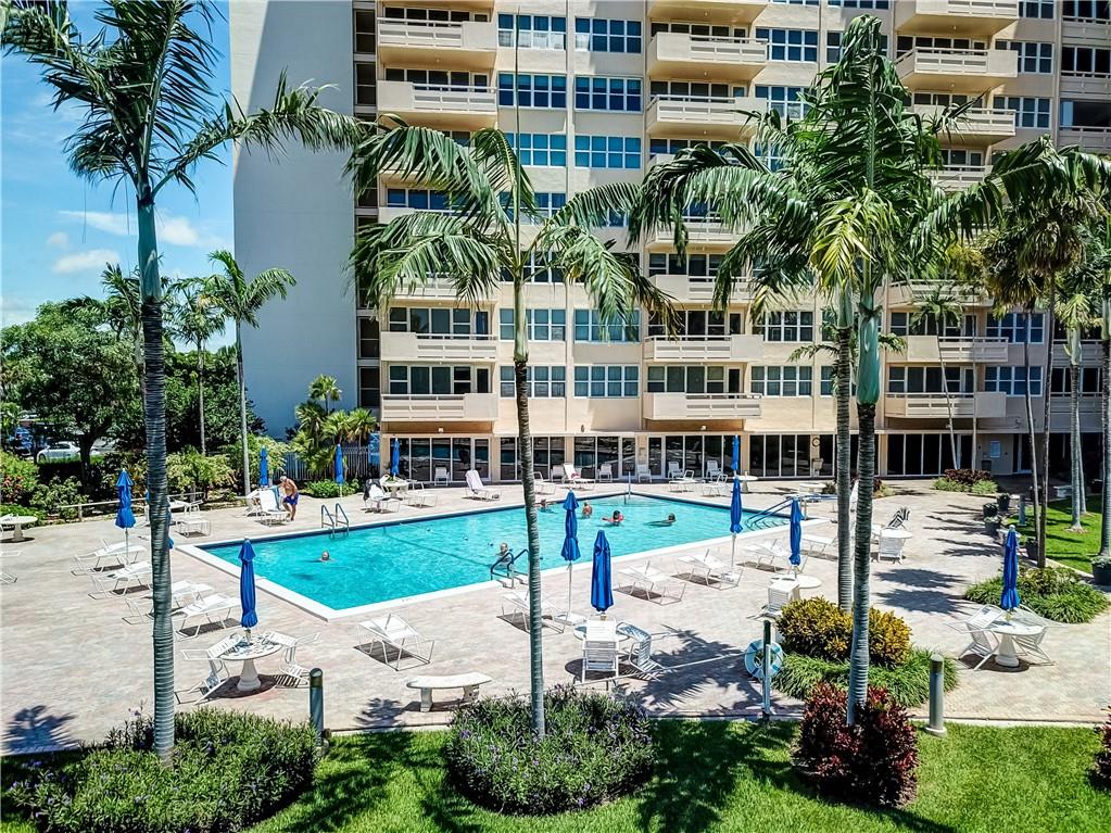 CLEAN. Move in Ready! Across the street from the beach. Nicely updated kitchen, beautiful engineered bamboo flooring throughout living & bedroom areas. A/C is only three years old! Building upgrading: removing the old balconies and putting in new Glass balconies, painting exterior white with blue trim. Seller to pay the entire assessment at closing. Huge heated pool is open until 10 pm. Resort like living with tons of amenities: Gym, Bocce Ball, Shuffleboard, 24 hour guards, secure package delivery room, bicycle storage room, on site management. Building owns a clubhouse with floor to ceiling windows directly on the intracoastal. No renting, Cash only, $494 maint includes fiber optic cable & wifi. Min 700 credit score, age 55+, income $47,424. Walk to restaurants, shops, beach...