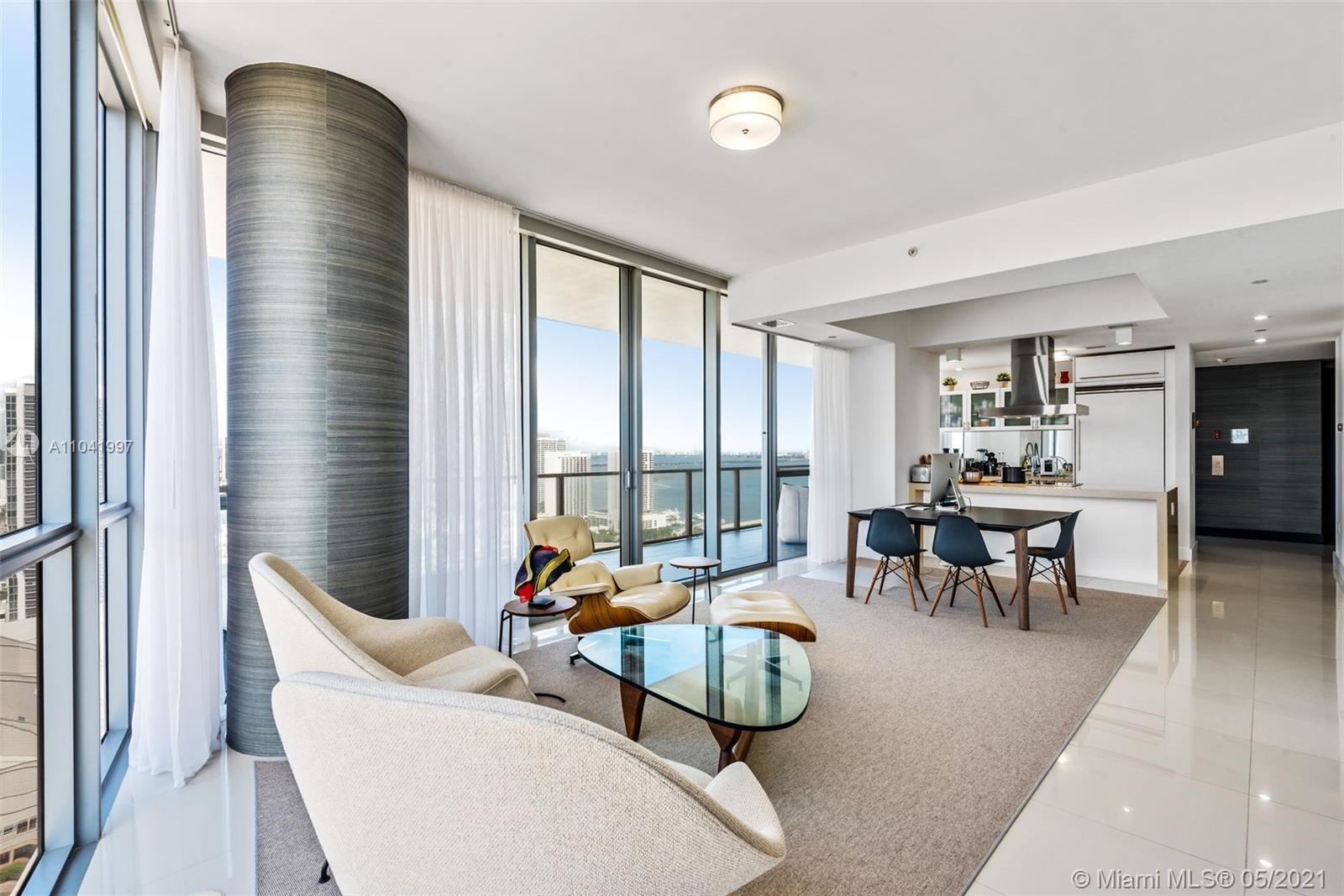 One of a kind spacious 2 bedroom/2.5 bath floorplan but was customized to be a 1 bedroom residence that has amazing unobstructed views of both the bay and the city. This unit was custom made and designed to turn the second bedroom into an open office/den area which can be easily converted back. The home features your own private elevator with a private foyer leading to your apartment, open kitchen, living, and dining area ready to entertain guests, an upgraded sound system, a wrap-around balcony with views of the whole city, designer window treatments with blackout shades, designer wallpaper and designer furniture can be negotiated. See virtual tour in the listing.