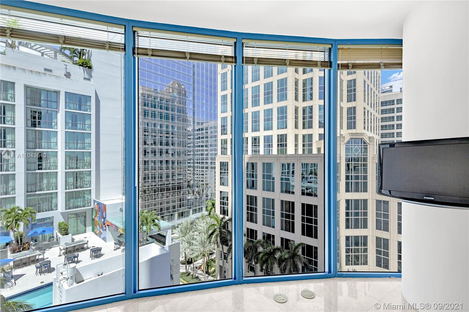 Unique Soho condo in iconic Las Olas River House. This 1161 sq ft condo was built out as a large one bedroom so it has an oversized living space with round radius floor to ceiling glass over looking the Hyatt Hotel pool deck and gardens. The condo features two full bathrooms so it can easily convert to a second sleeping area with murphy bed or pull out sofa as needed. Lowest priced condo in the magnificent tower with a 4 Million Dollar Steven G renovation underway which is funded with a line of credit. NO ASSESSMENT! Building offers 5 star lifestyle with huge lobby featuring Koi ponds, world class fitness center, amazing tropical pool deck & function rooms. Brand new Greenwise Grocery store, Hyatt Hotel with Eddie V's Restaurant right outside the front doors on famous Las Olas Blvd!!!