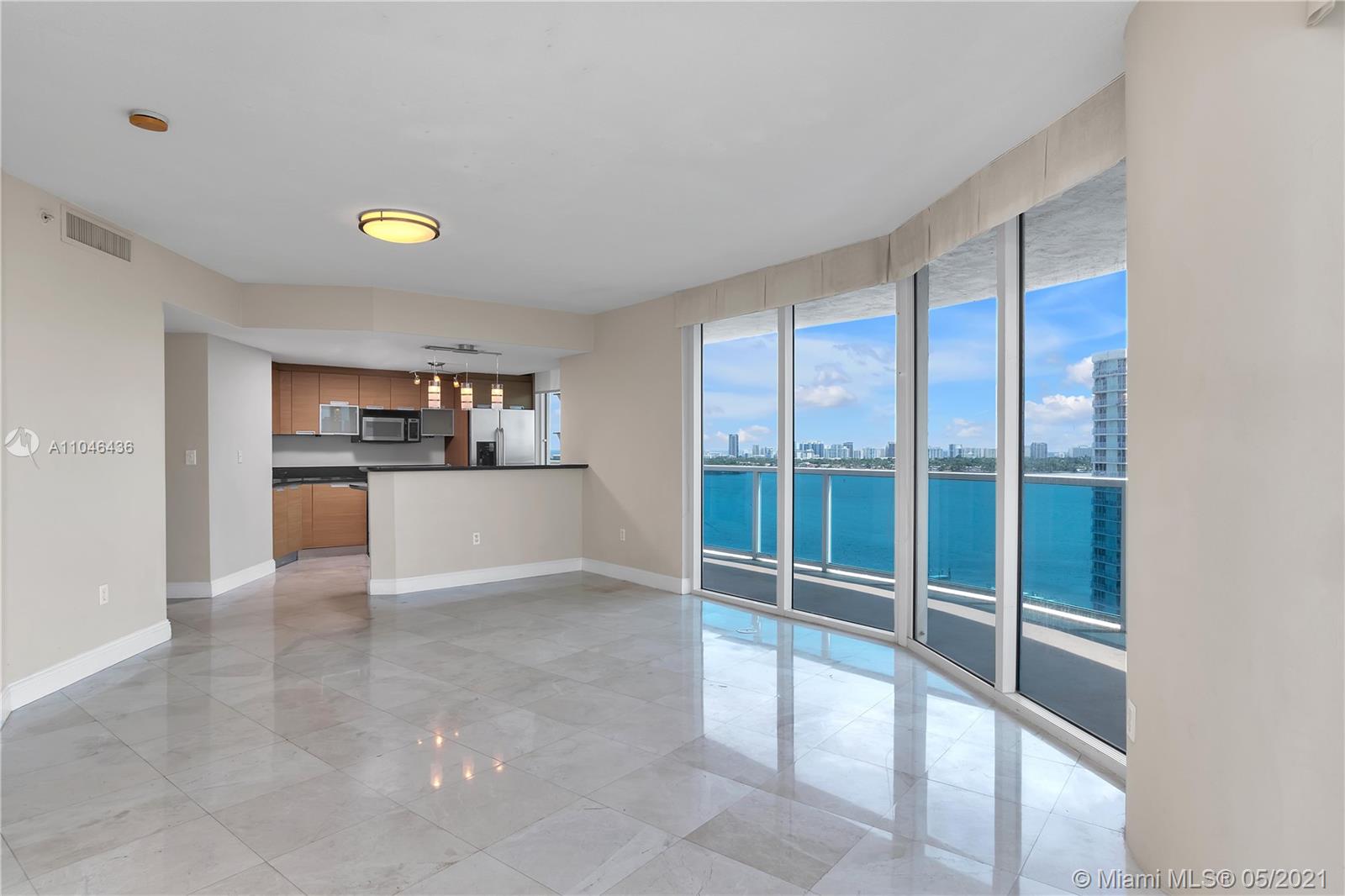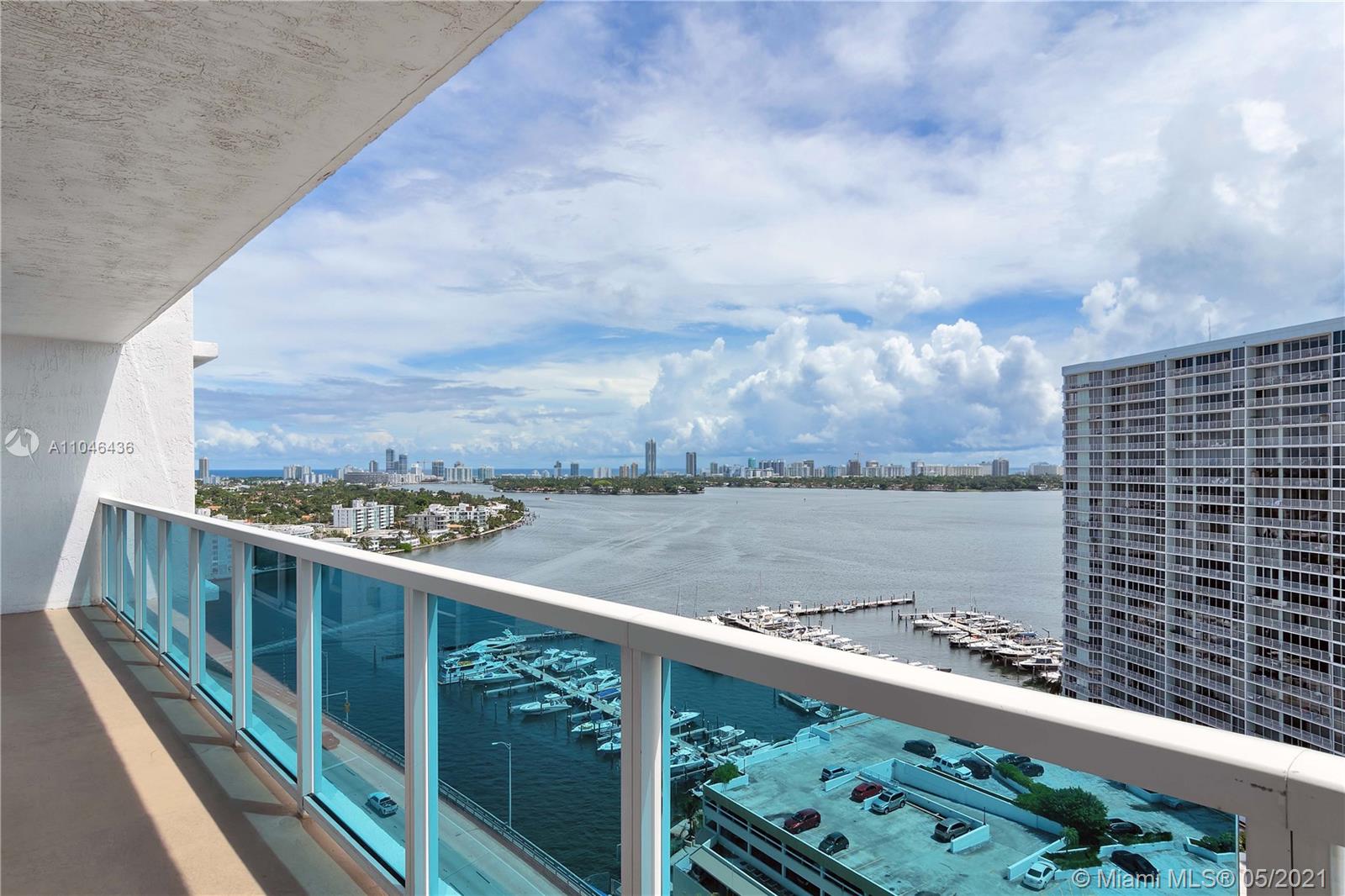 One of a kind waterfront corner unit with magnificent 180-degree panoramic views of downtown, bay and beaches. Biggest wraparound balcony in the building over 400 sqf. Ceiling to floor glass windows in all areas. Minutes away from beaches, airport and shopping. Newly decorated with modern up to date fixtures including California walk-in closets and drawers. Priced well below the average of comparable units located on lower floors with obstructed views . Cable TV and wifi included and TWO assigned parking spots 337&338 . Building amenities include, newly renovated pool, gym and lobby area, clubhouse and plenty of guest parking! Please note, $197.81 special assessment fee has been added to monthly maintenance until May 2024. Current lease ending 8/31/2021 Must see to truly appreciate.
