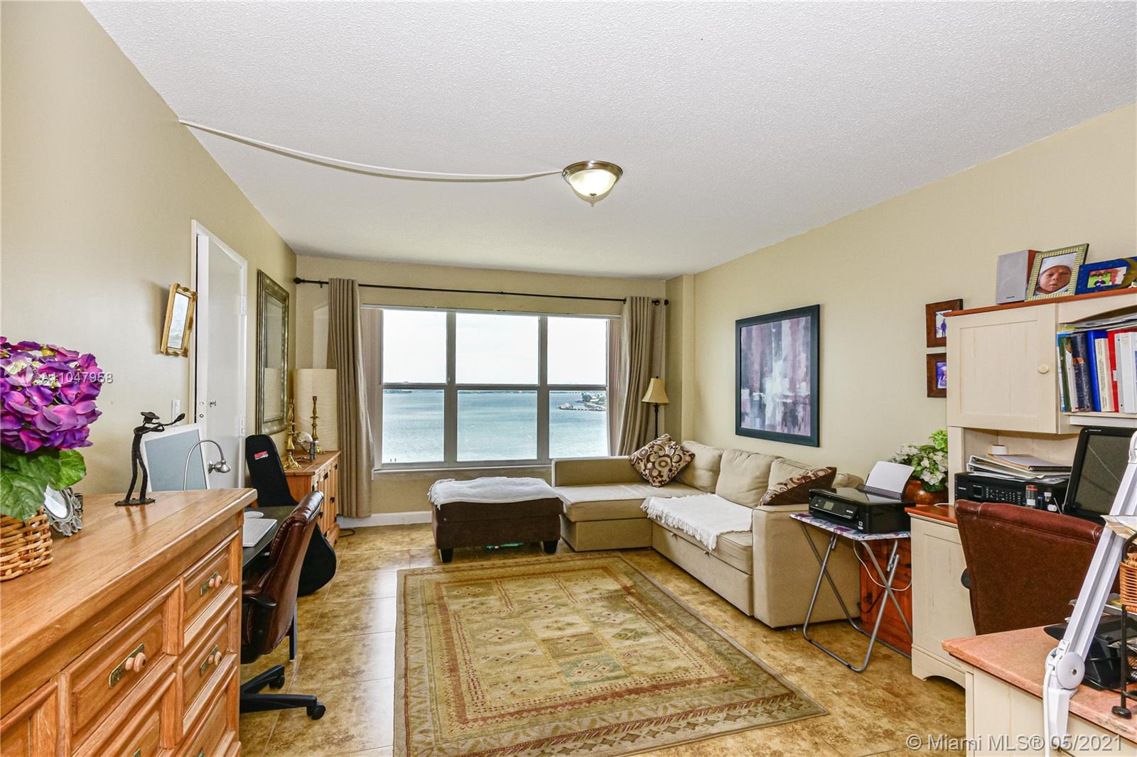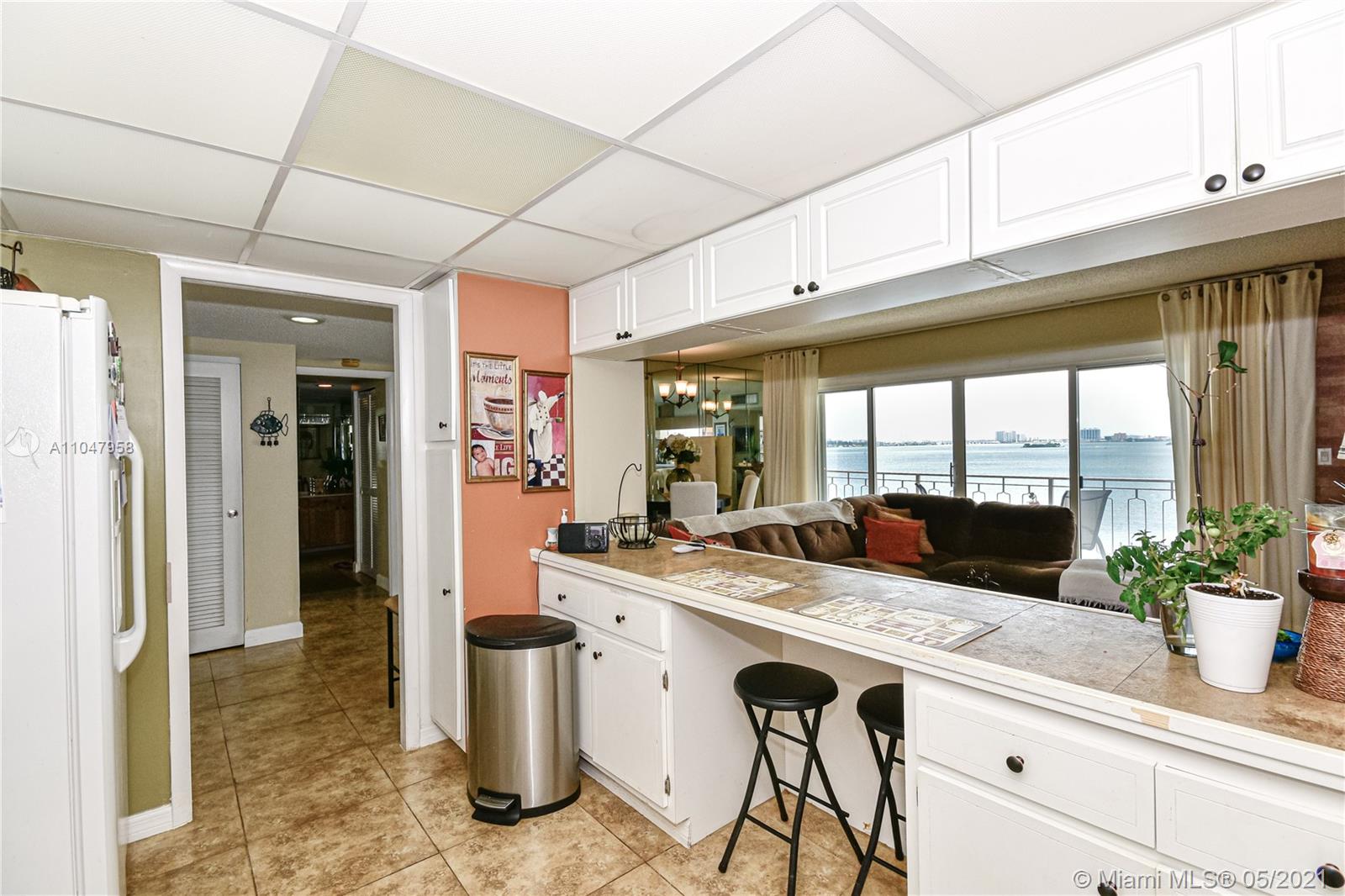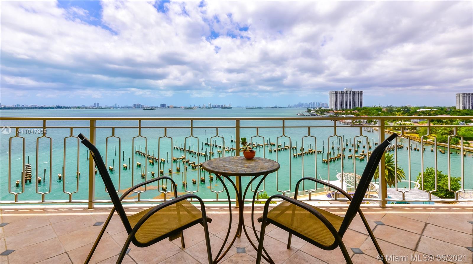 With amazing views of Biscayne bay and the entire Miami water skyline ,this 2 beds 2 baths apartment right next to the elevator , unit has a huge storage next to the back door . The building is centrally located with easy access to the beach and airport ,have a private marina and 4 tennis court