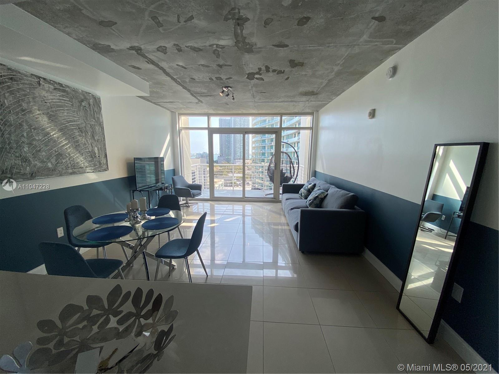 Enjoy Midtown living in this luxury property with spectacular amenities. This 1/1 unit is on the 11th floor which is the last floor of the building with a great open city view! 10ft ceilings with exposed concrete and private balcony. Washer & dryer inside the unit; modern kitchen with stone countertops and stainless steel appliances; 24 hr security and concierge, 1 private storage space and 1 parking lot; Free wifi in the lobby, rooftop swimming pool areas with BBQ and mini golf, fitness center, key card access controlled elevators. Daily and short term rental allowed with no restrictions. Pet friendly building. The area is surrounded by restaurants and shops with easy access to Miami Beach, Brickell, and all major highways