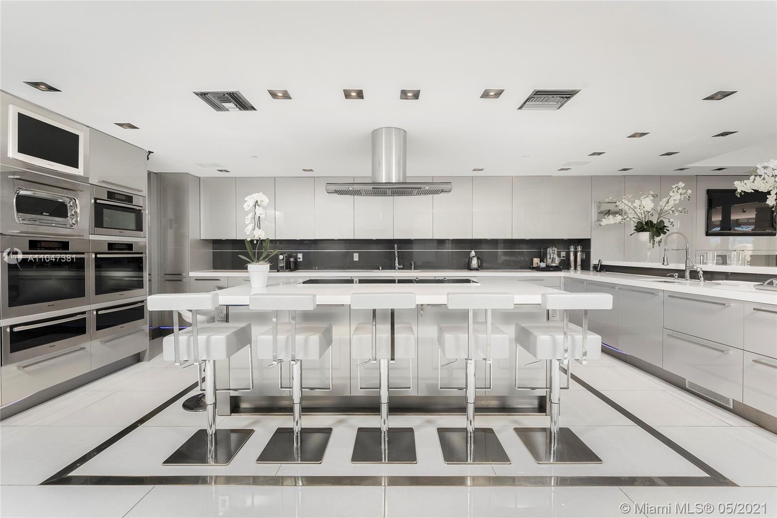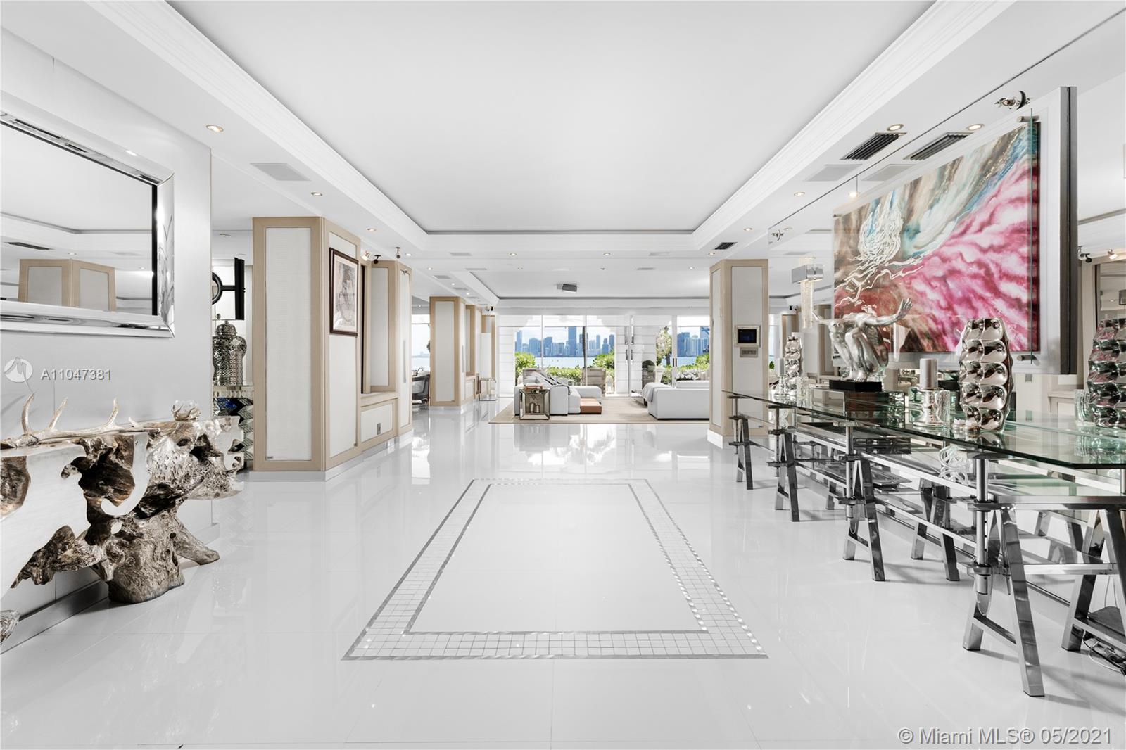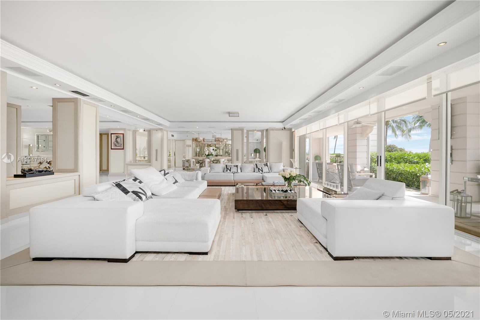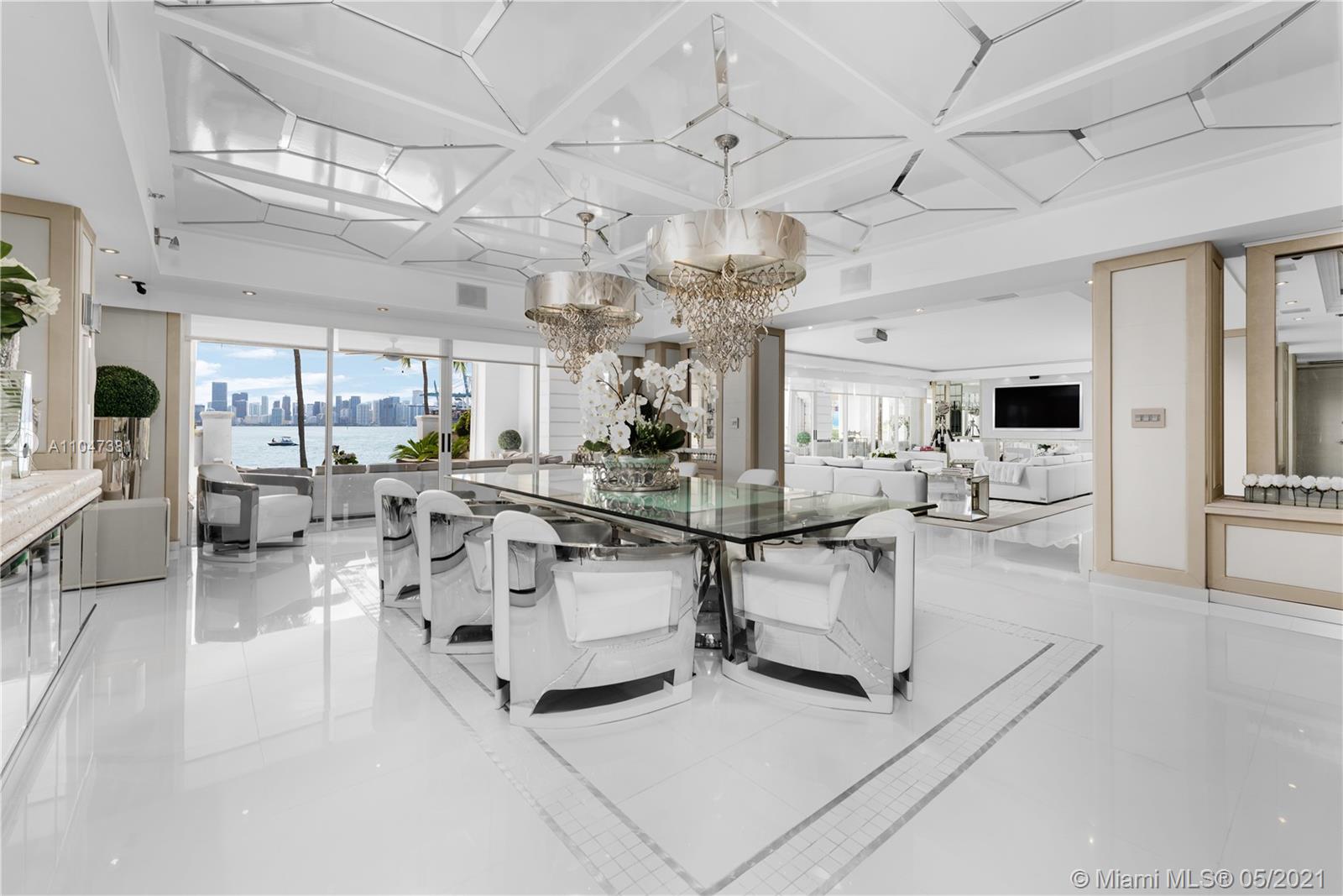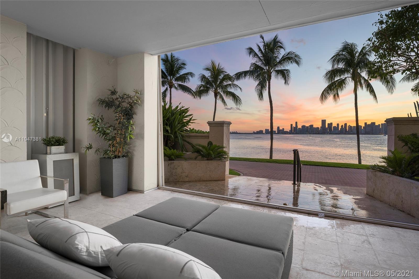 This coveted ground floor Bayview unit offers the best of Fisher Island with unobstructed views to Biscayne Bay & Downtown Miami Skyline, plus amazing sunset views. The 5BR/5+2 BA unit features 6,260 SF, exquisite white porcelain floors, FENDI designed wallpaper & doors plus a built-in surround sound system. Spacious open living room w/wet bar & dining room both w/direct bay views. Amazing Chef’s kitchen sports top-of-the-line Miele & Sub-Zero appliances, eat-in center island, butler’s pantry & breakfast area. Private bayside principal suite offers tan oak floors & bathroom w/dual walk-in closets, glass rainshower & a sunken spa tub. Expansive bayside terrace w/multiple seating & lounging areas, al fresco dining table & arches that frame stunning views to the bay & Downtown Miami skyline.
