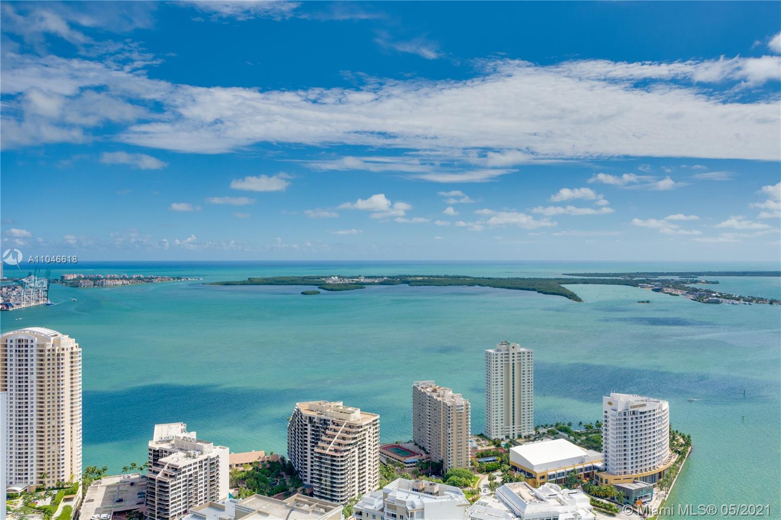 Castle in the Sky Condo w/ unobstructed views of Biscayne Bay, Ocean and Miami Skyline. Exclusive 2 Story PH residence with over 2k sqft. of living area + 1k sqft terrace garden to entertain family and friends. Custom and unique designed condo incl: 3 Beds 3 Baths glass tiled floors, Italian Kitchen cabinets, stainless steel appliances, granite countertops, upgraded modern bathrooms and SMART interior features, BBQ, Outdoor shower. The urban resort amenities incl: 300 ft pool, 50 person hot tub, 28k sqft, spa and fitness ctr., movie theatre, game room, poolside cafe, 24 hrs security, valet, and concierge and retail restaurants. Located in the heart of Brickell walking distance to City Centre, Arena, minutes to Beach and Airport. Seller is accepting Bitcoin payment.