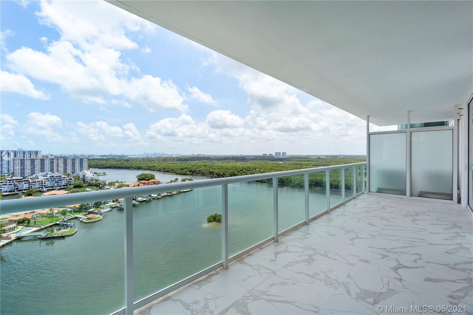 Amazing 2story home with unobstructed breathtaking water views 19th floor (East Side) at 400 Sunny Isles. Brand new unit with porcelain tile floor. 3 bedrooms, 3 full modern and elegant bathrooms. Huge covered balcony w/ direct water-Marina views (front), Ocean (East), Miami Skyline (South) Oleta National Park (West). 1,732 sq ft (161 M2) living space, includes a magnificent master bedroom on the lower level, spacious walking closet, master bath with shower and double sink. Open kitchen w/European cabinets w/top of the line appliances. Washer/Dryer. Lot's of natural light. 2 assigned parking. Class amenities, a private full service dry/wet marina, tennis court, Spa, Sauna,2 Gyms, Jacuzzi, Bar, 33 Mts ( 109 ft)pool, valet parking, 24-hour Security. Short walk to the best Sunny I.beaches.