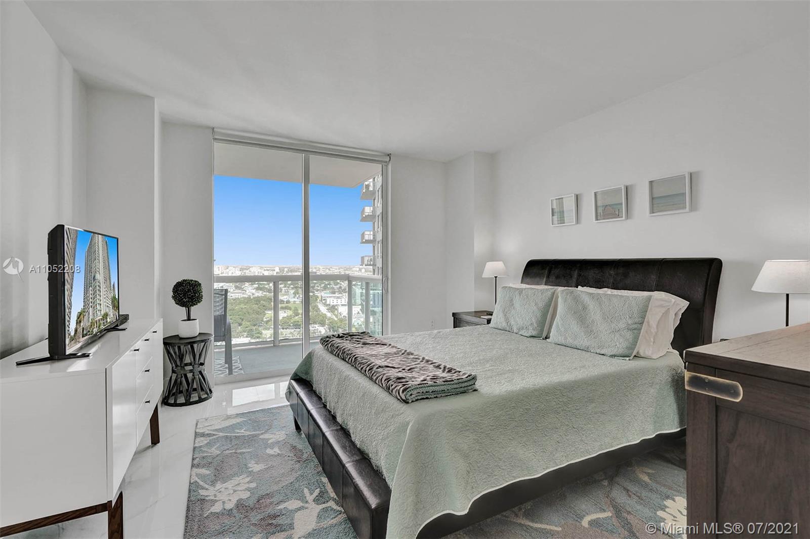 Substantially remodeled luxurious unit on the 28th floor at the 1800 Club Condo in the heart of Edgewater. This 2 bedroom and 2 bath features white porcelain floors throughout, modern kitchen, quartz counter tops, stainless steel appliances, custom master bedroom walk-in closet. No details have been spared in this unit with custom design finishes throughout. Other Upgrades include: custom kitchen with quartz countertops, custom bathroom vanities, showers, recessed lighting, Tankless Water Heater, custom doors, and more. 1 parking space deeded, large storage. Full amenities building, state of the art gym sauna $ steam room, water included in low HOA. Walk to Margaret Pace Park. 2 blocks to people Mover, 5 Minutes to Downtown Miami, The design District, Midtown, Wynwood, Miami Beach.