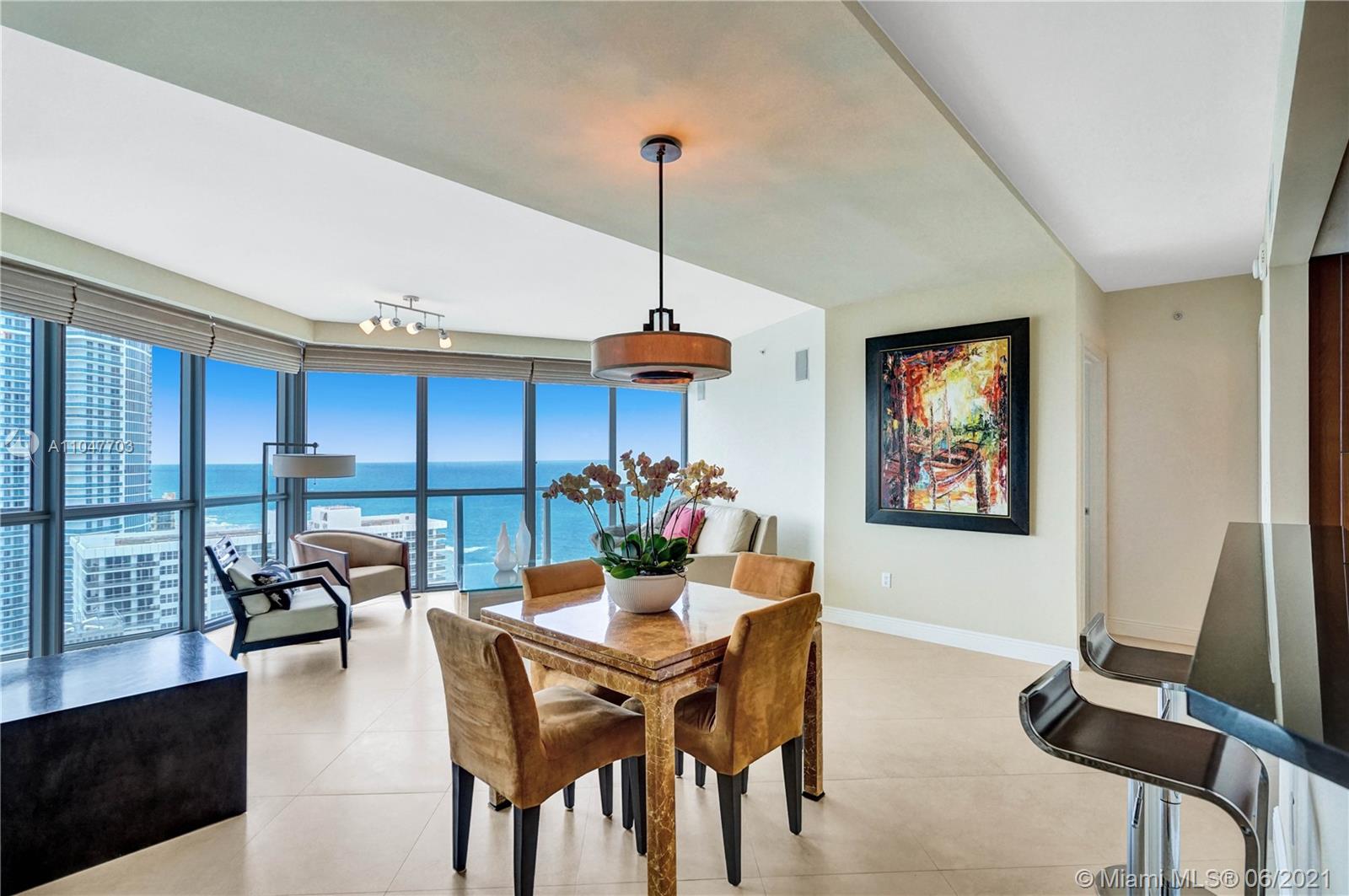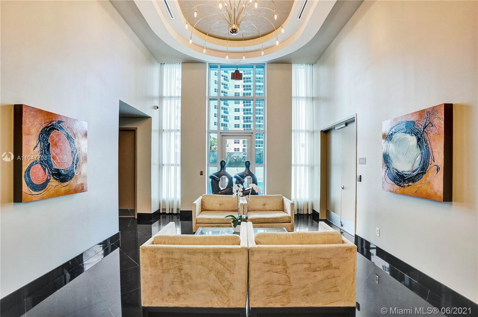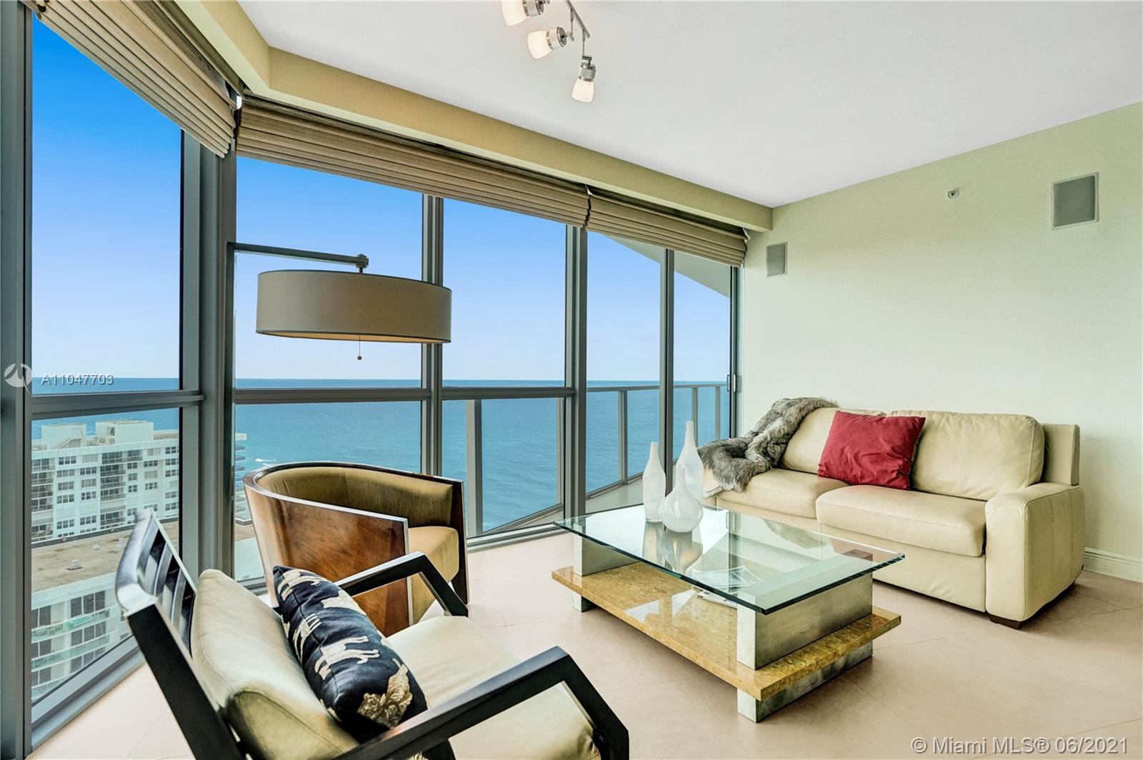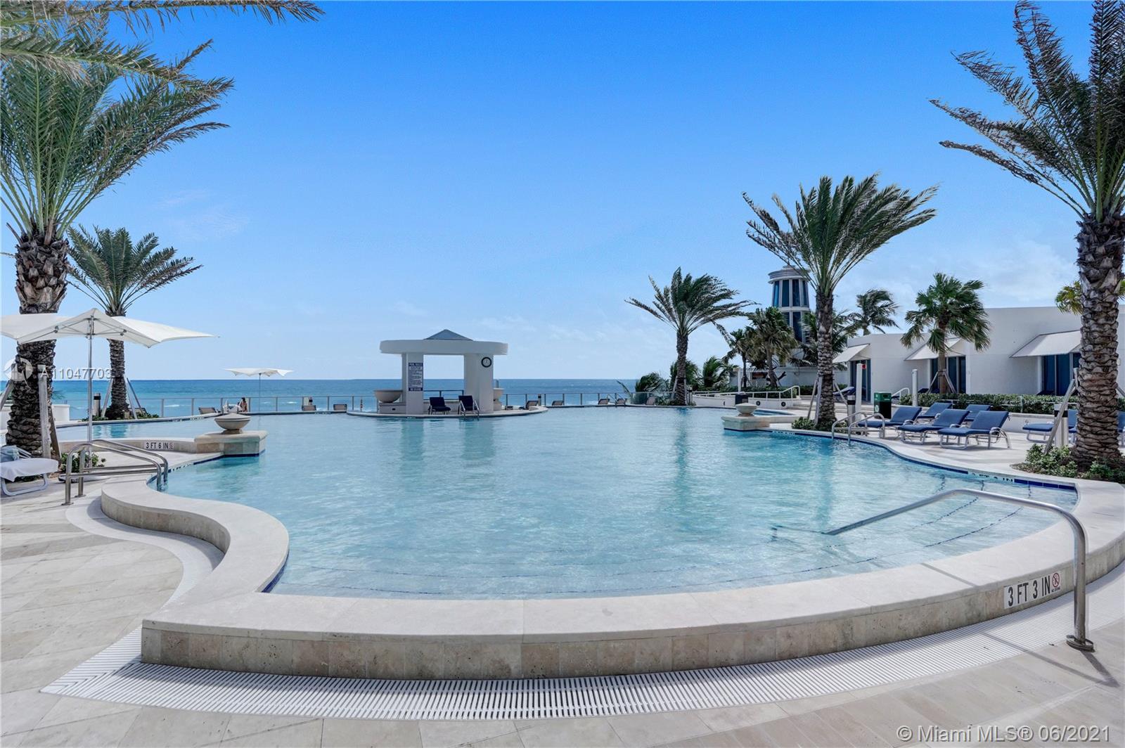 Incredible opportunity to own a luxurious villa in the sky. Panoramic ocean and Intracoastal views from every room through floor-to-ceiling glass. Designer touches by Steven G are everywhere: faux painted elevator doors, suede-covered suite doors, custom wall treatments in river stone, wood and tile. Other finishes and features include marble floors, granite counters, Italian cabinetry, high-end appliances, Jacuzzi tub, frameless glass shower, and built-in closets. Private elevator. Two parking spaces. Turnkey furnished. Ocean Palms is a majestic and modern tower located on 240 feet of beautiful Hollywood Beach. The five-star amenities include a two-story fitness center, spa with sauna and massage rooms, media room, party room, billiard room, ocean-side pool, hot tub, and tennis courts.