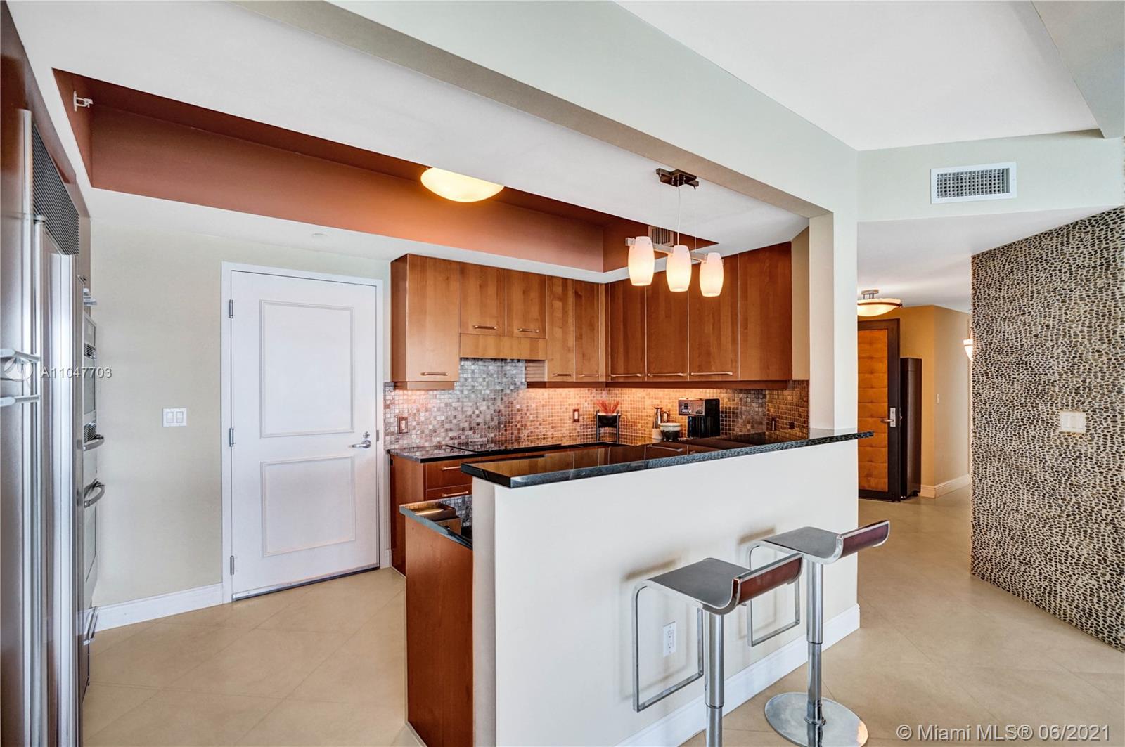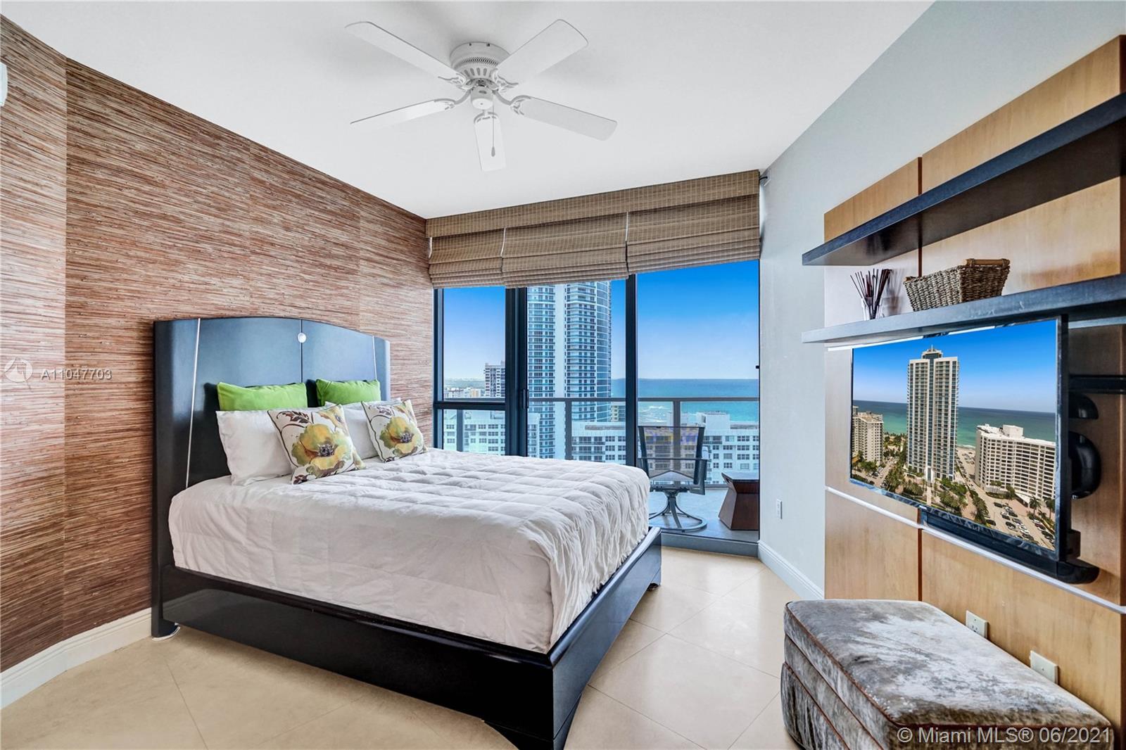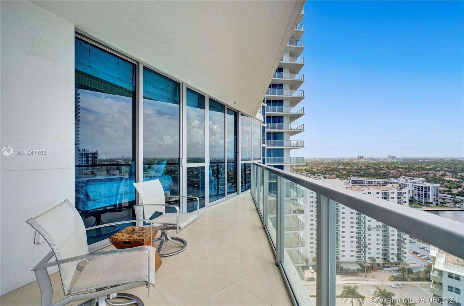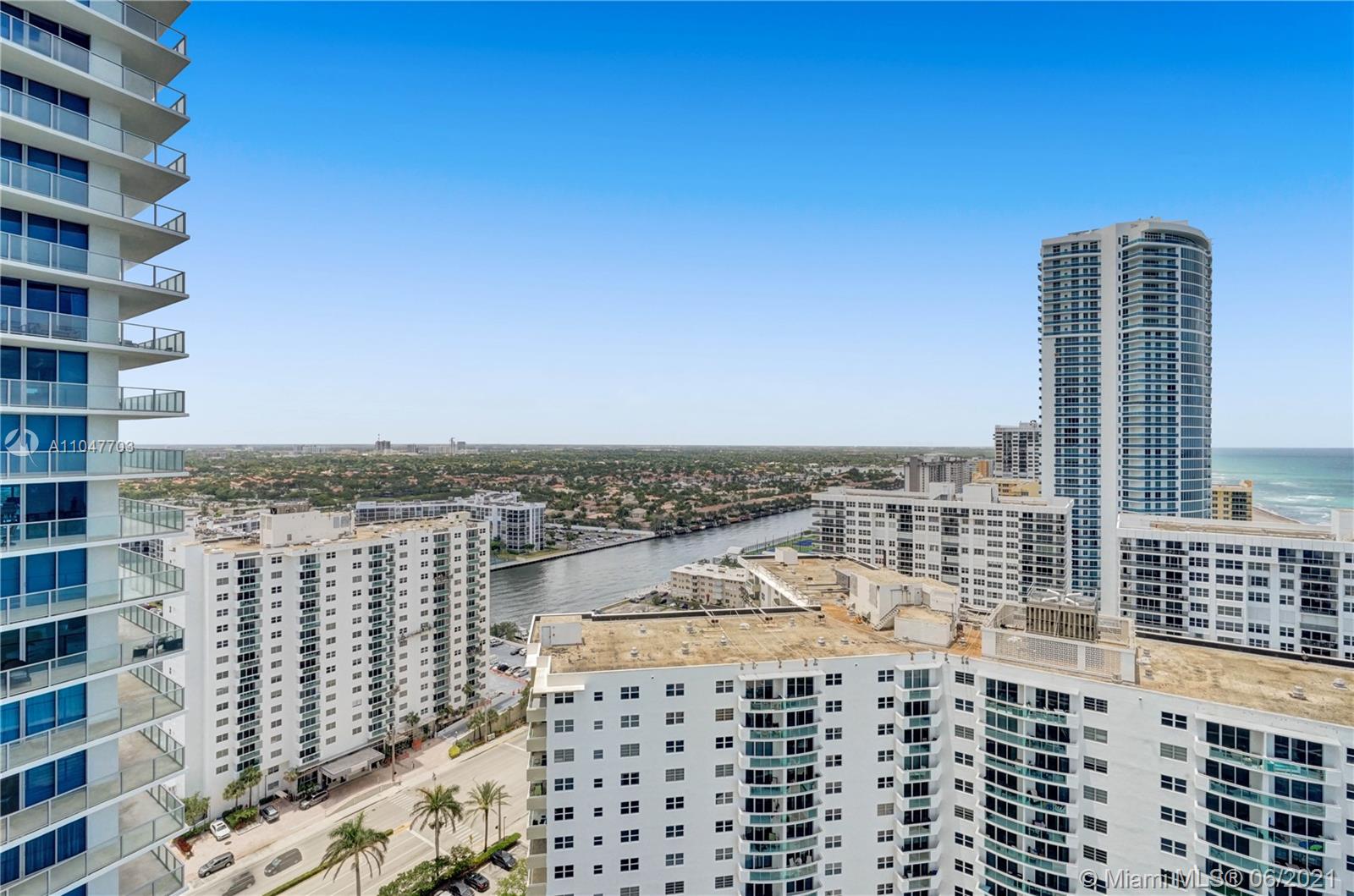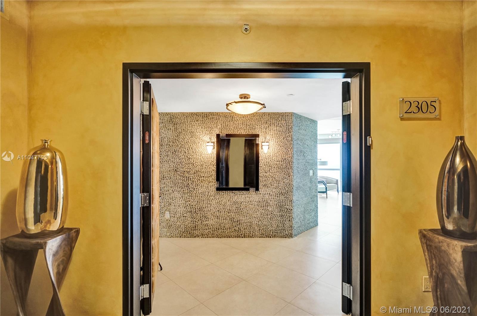 Incredible opportunity to own a luxurious villa in the sky. Panoramic ocean and Intracoastal views from every room through floor-to-ceiling glass. Designer touches by Steven G are everywhere: faux painted elevator doors, suede-covered suite doors, custom wall treatments in river stone, wood and tile. Other finishes and features include marble floors, granite counters, Italian cabinetry, high-end appliances, Jacuzzi tub, frameless glass shower, and built-in closets. Private elevator. Two parking spaces. Turnkey furnished. Ocean Palms is a majestic and modern tower located on 240 feet of beautiful Hollywood Beach. The five-star amenities include a two-story fitness center, spa with sauna and massage rooms, media room, party room, billiard room, ocean-side pool, hot tub, and tennis courts.
