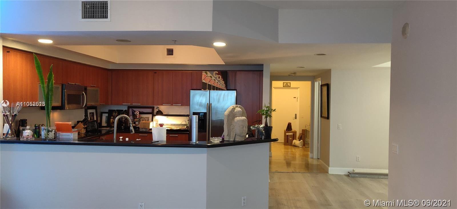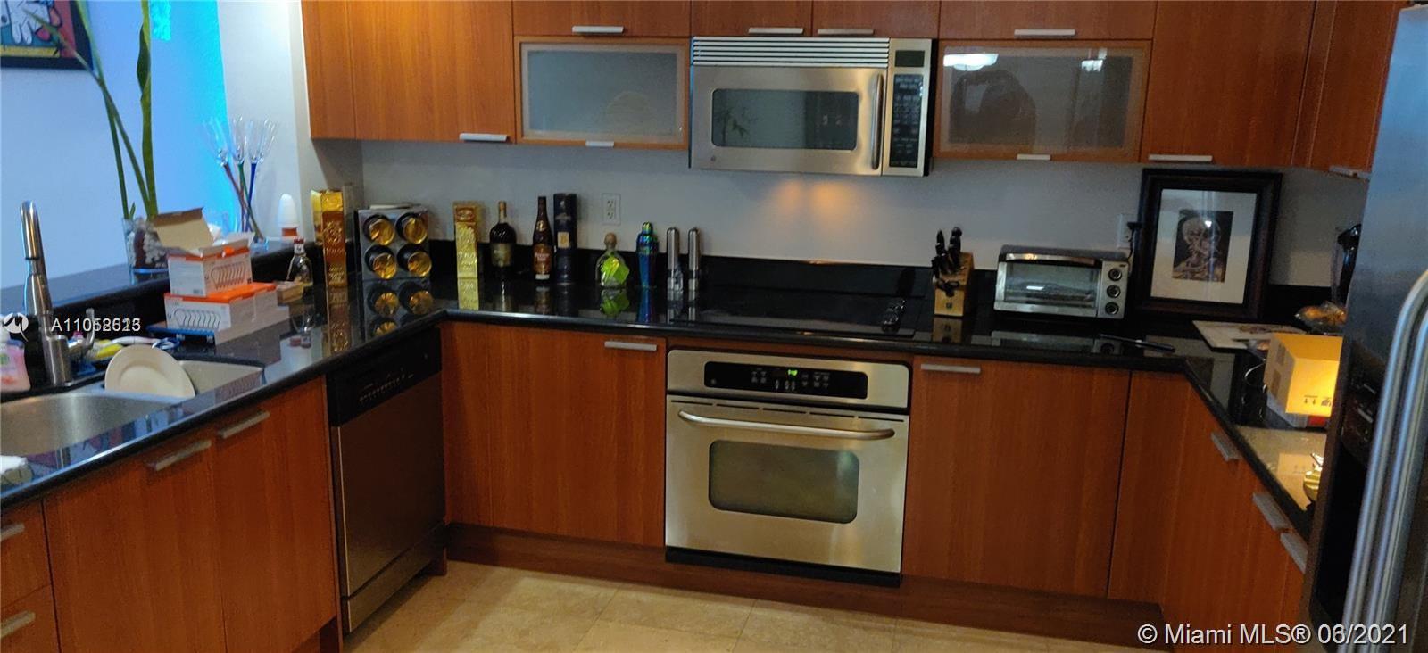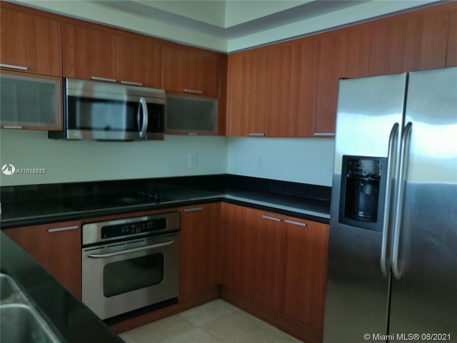 Amazing high floor with panoramic views all the way to the ocean. Huge 2/2 + DEN with over 1800 sq ft of living area. Oversized opened kitchen with granite counters & stainless steel appliances. Marble floors in kitchen, bathroom, and foyer, brand new vinyl wood-like floors in remaining areas. Large den that could be used as a guest bedroom or home office. Spa tub in master bath as well as a glass-enclosed shower. Unit has window treatments & comes with one parking space, additional spaces can be leased through the association. Maintenance includes water, cable tv, internet, and local phone. Laundry room inside the unit.**PRICE IS FIRM**