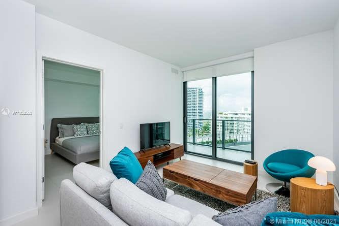 Architect’s pied a Terre, beautifully furnished and fully equipped apartment for sale 1 bedroom with 1.5 bath with shared shower. Newly installed custom walk-in closet, solar shades and blackout in bedroom. JUST BRING YOUR CLOTHES TO MOVE IN!! Unit features Porcelain floors, Italian kitchen and bathroom cabinets, quartz counters, Bosch appliances, washer/dryer, full height windows, balcony facing the bay and one parking. Paraiso Bayviews designed by Arquitectonica and Karim Rashid, includes gym, roof pools, sun decks, barbeque areas, tennis & basketball courts, spa, children playroom, teen room & billiards, tennis court. 24 HR lobby attendance, valet. Easy highway access, & walking distance to midtown.