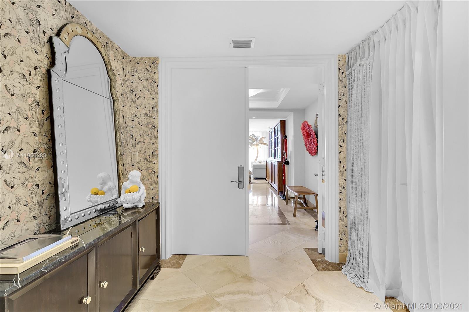Luxury Ocean-Front complex next to Ritz Carlton in Key Biscayne. Elevator open directly into private foyer leading to this spacious 2 Bed, 3 Bath residence plus Den w/access to extended terrace; immersed in a tropical setting overlooking vast gardens and central fountain. Travertine floors throughout. Open living/dining area. Kitchen w/white cabinets & granite counters; top of the line appliances. Sperate laundry room w / access to service elevator & chute. Master suite w/ 3 walk-in closets and large bathroom; 2nd BD (21.4 x 12) w/ en-suite BH & many closets. A pleasure to show!